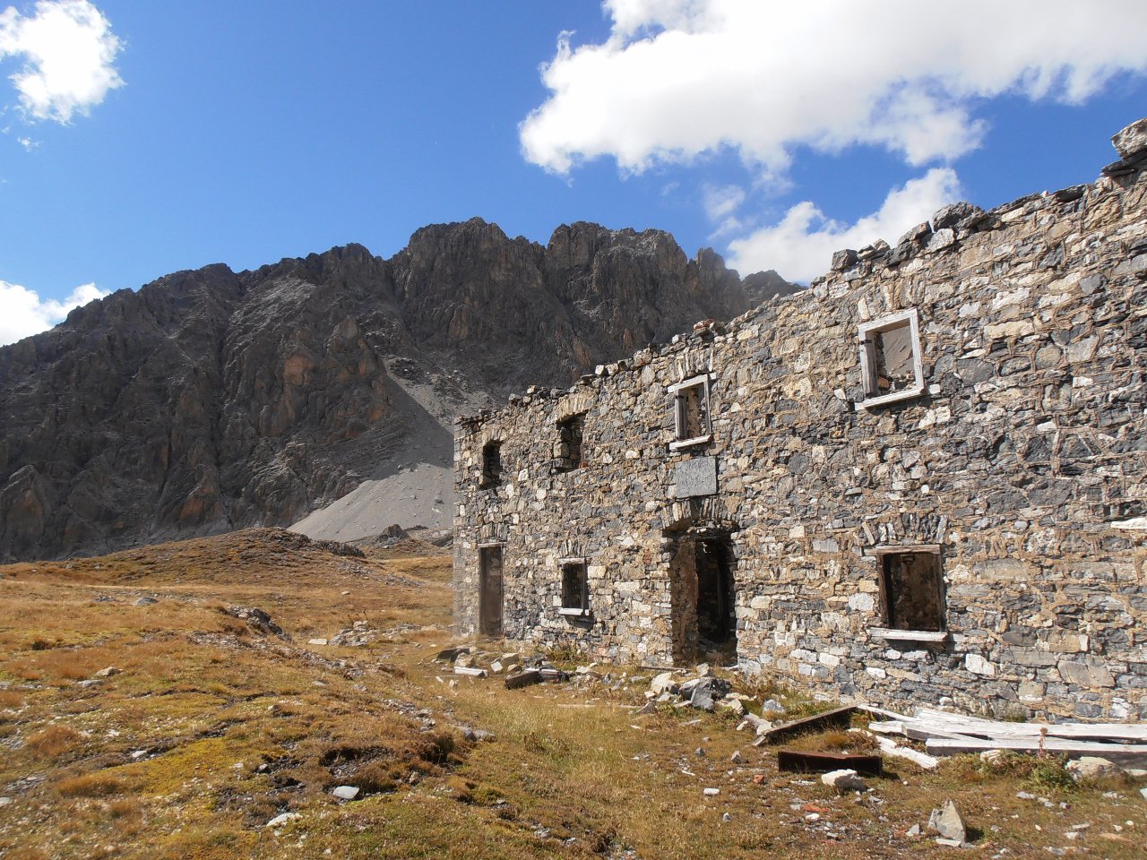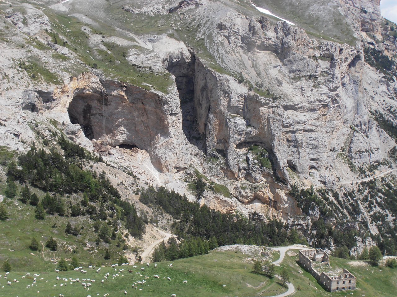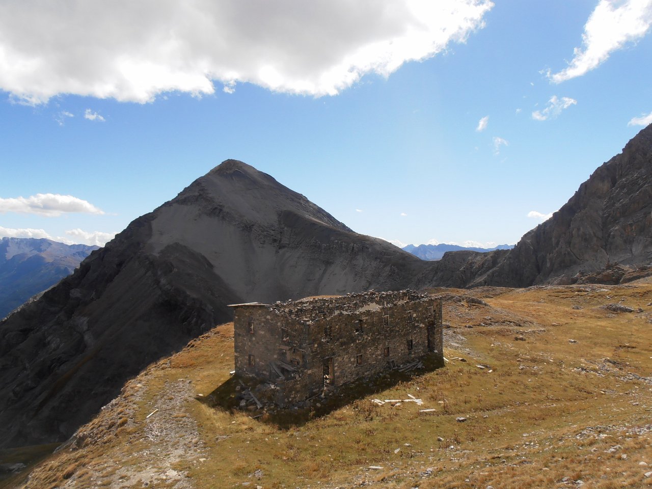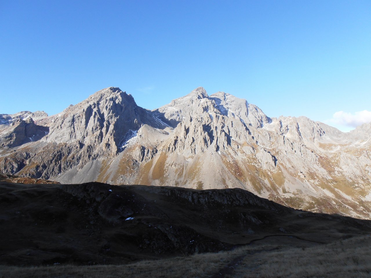 | tini | 11- ingresso italiano al Buco di Viso e Colle delle Traversette visti dal Monte Granero | tini | 01 - Croce della Chalanche Ronde | tini | 02 - la cima più aguzza delle tre cime costituenti i Rochers Charniers | tini | 03 -le notevoli pareti Est della Pointe des Trois Scies viste dalla caserma del Pian dei Morti | tini | 04 - ingresso del vallone di salita per la Chalanche Ronde, seguendo gli ometti la traccia c'è | tini | 05 - cresta tra Chalanche Ronde e Rochers Charniers, dietro lo Chaberton | tini | 06 - verso i Rochers Charniers dalla cima innominata che li separa dalla Chalanche Ronde | tini | 07 - punto di discesa verso il Pian dei Morti, dritto sotto la cima che separa Rochers Charniers e Chalanche Ronde | tini | 08 - la discesa verso il pian dei Morti è una enorme pietraia, ma in cresta si trovano ancora i segni di una antica mulattiera militare | tini | 09 - punto di discesa dalla cresta tra Rochers Charniers a sx e Chalanche ronde a dx | tini | 10 - guglia innominata che sovrasta il Pian dei Morti, direzione est | tini | 11 - caserma del Pian dei Morti e Chaberton sullo sfondo | tini | 12 - sotto la parete est della Pointe des Trois Scies | tini | 13 - la Roccia Tagliata lungo la strada dello Chaberton | tini | 01 - tutte le cime della traversata viste dalla Pointe des Lesseieres