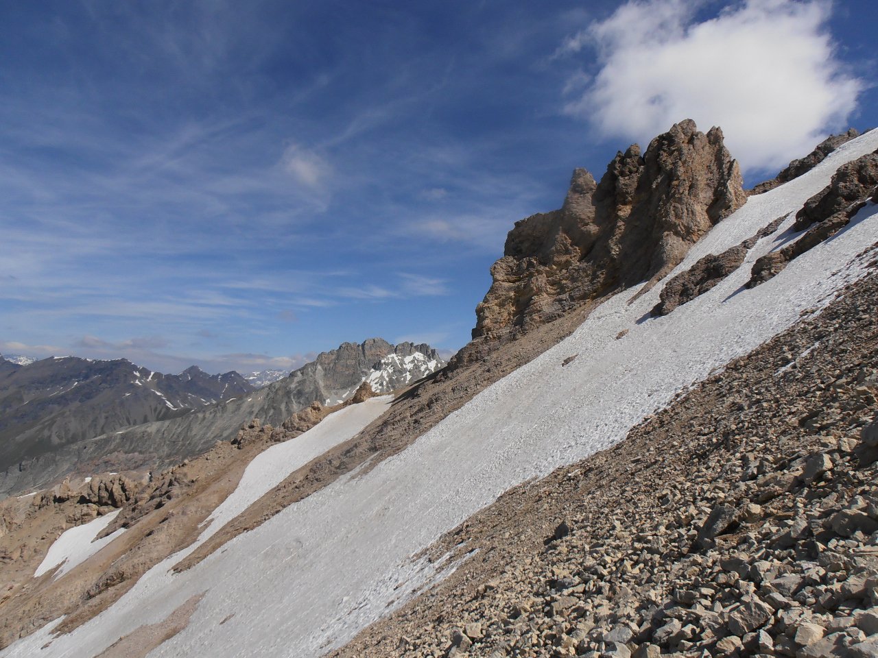 | tini | 09 - accesso alla cima per il sentiero normale... alquanto impegnativo con neve | tini | 10 - accesso alla cima dal canalone sud... ancora tanta neve | tini | 11 - belle formazioni rocciose | tini | 01 - il Giusalet dalla cima quotata 3213 | tini | 02 - vista sul lago del Moncenisio | tini | 03 - quasi in cresta salendo dal glacio-nevaio | tini | 04 - prima lingua di neve poco sopra la Capanna Vacca | tini | 05 - zona di grossi blocchi e rocce montonate dopo il primo nevaio | tini | 06 - inizio del glacio nevaio, attenzione a possibili buchi entrando vicino alle rocce | tini | 07 - sul glacio-nevaio | tini | 08 - parte alta, già sopra la Cima di Bard | tini | 09 - Max sulla cresta in discesa | tini | 10 - inizio percorso su glacio-nevaio | tini | 01 - in cima | tini | 02 - salendo, la neve l'abbiamo cercata tra verdi praterie...