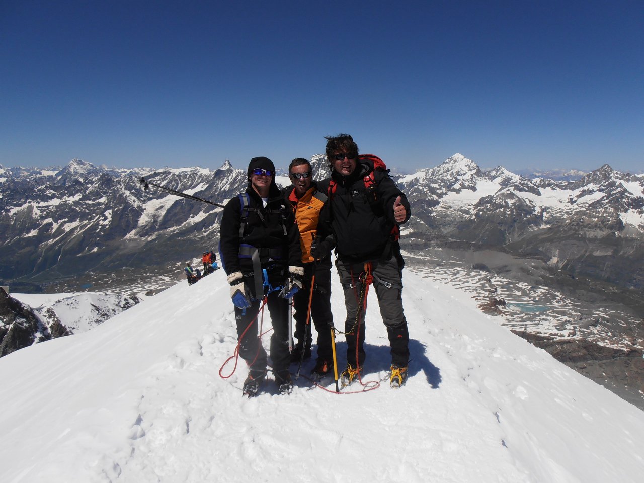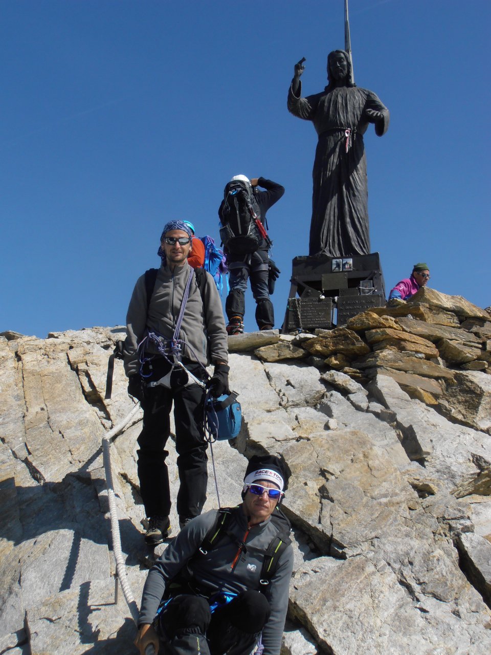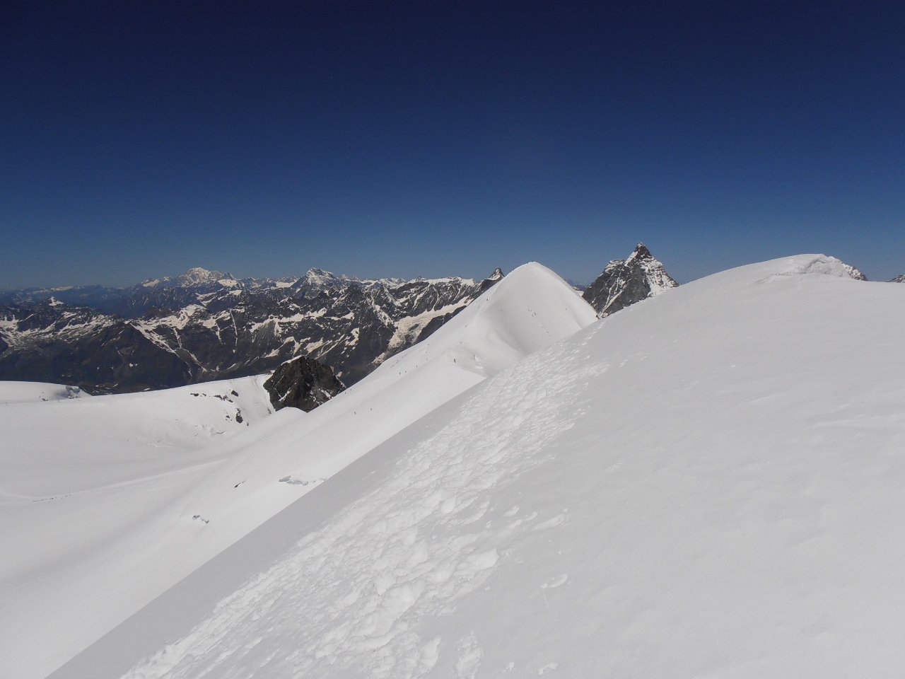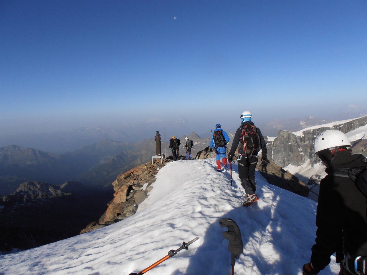 | tini | 09 - alba dalla Capanna Regina Margherita | tini | 10 - il pendio finale sotto la Punta Gnifetti | tini | 11 - Lyskamm e Cervino | tini | 01 - in cima, vista verso Roccia Nera ed i Breithorn | tini | 02 - itinerario di salita e discesa | tini | 03 - alla madonnina dell'anticima | tini | 04 - il tratto di nevaio sotto il rif. Guide d'Ayas | tini | 05 - rifugio Guide d'Ayas e Polluce sullo sfondo | tini | 06 - tramonto sul Polluce | tini | 07 - il Castore dalla cima | tini | 08 - in discesa ingorgo ai canaponi tra persone in salita ed in discesa | tini | 09 - piani di Verra, sguardo indietro | tini | 01 - in cima al Breithorn Centrale | tini | 02 - la cima del Breithorn Centrale con le sue impressionanti cornici | tini | 03 - la sottile cresta tra il Breithorn Centrale e quello Occidentale