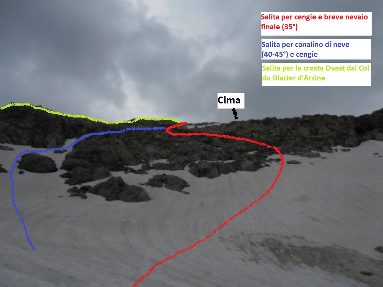 | tini | 15 - quasi sulll'anticima | tini | 16 - dall'anticima verso la cima, con l nevaio | tini | 17 - Aguilles d'Arves dal nevaio | tini | 18 - inizio del temporale in cima | tini | 19 - ci sono quasi dentro al temporale... scappa scappa... | tini | 20 - la Baraque de la Buffe è il primo punto di riparo, 1000mt sotto la cima... | tini | 21 - sguardo indietro al ritorno, acqua a catinelle | tini | 01 - in cima con la Pointe de Mean Martin sullo sfondo | tini | 02 - dalla cima discesa verso il lago | tini | 03 - la Pointe de Bezin Nord, a centro foto, vista da Le Grand Fond | tini | 04 - grande cornice di neve in cima al Peleau Blanc | tini | 01 - discesa lungo la cresta Ovest | tini | 02 - il pendio N affrontato direttamente in salita | tini | 03 - strada quasi pulita fino al Pont de la Neige | tini | 04 - salita effettuata sotto la pioggia