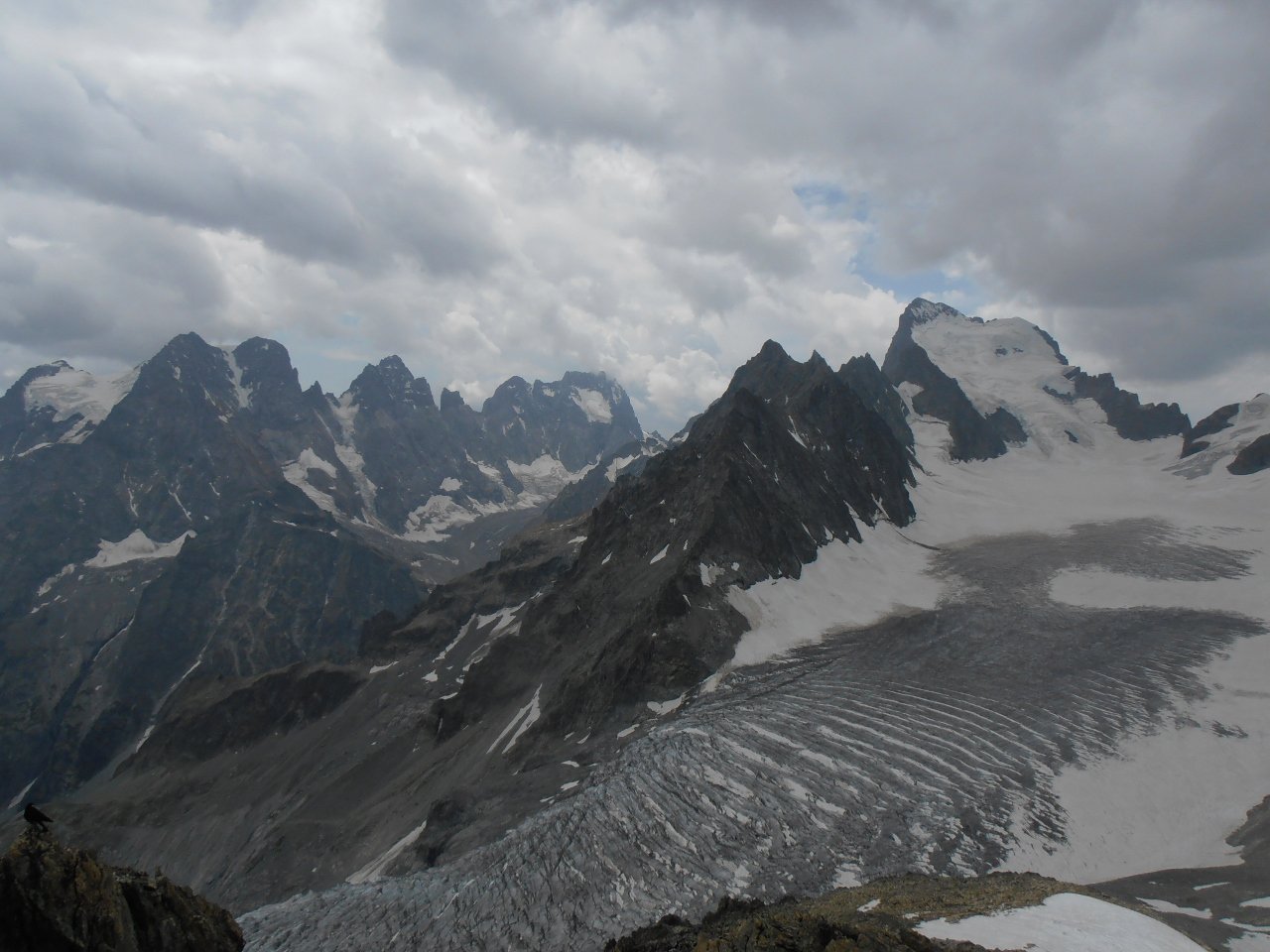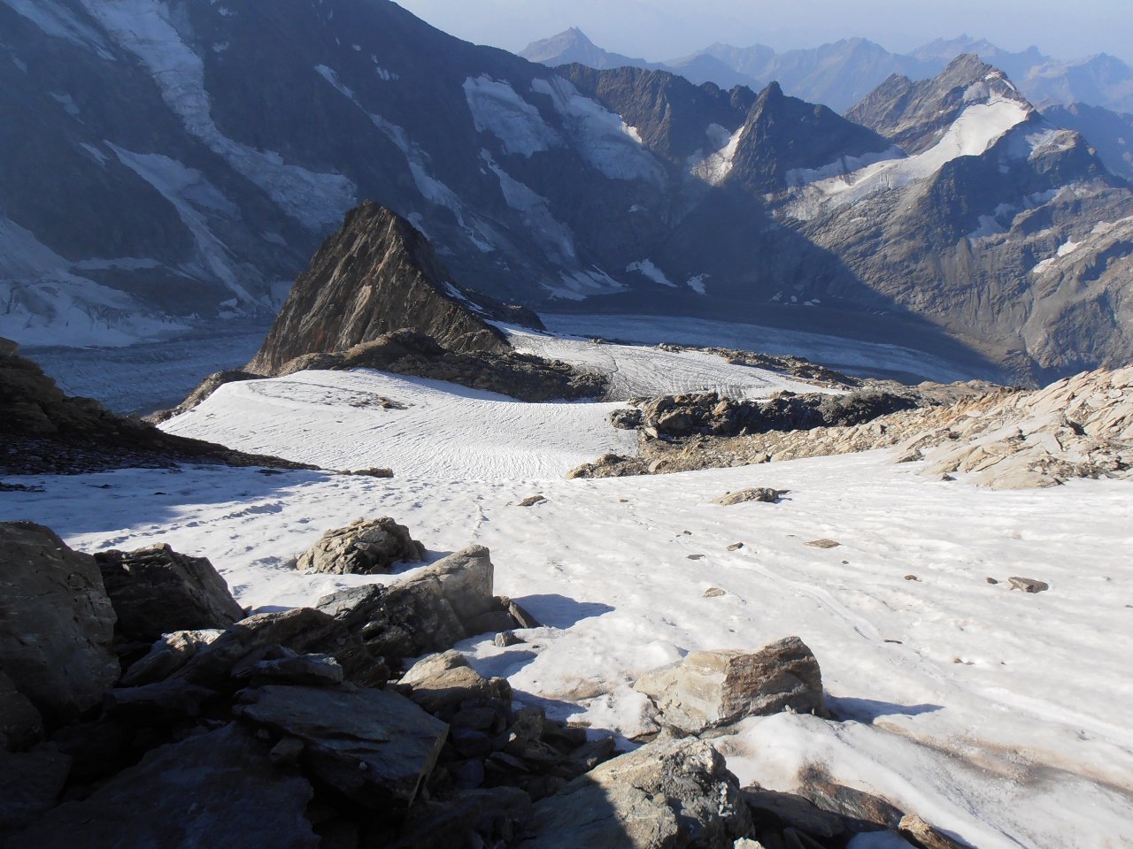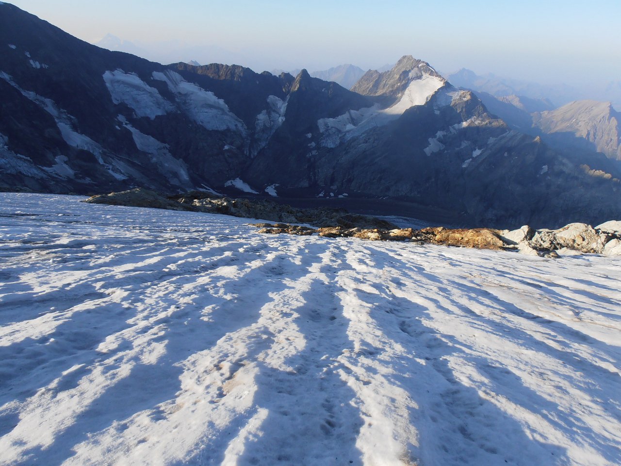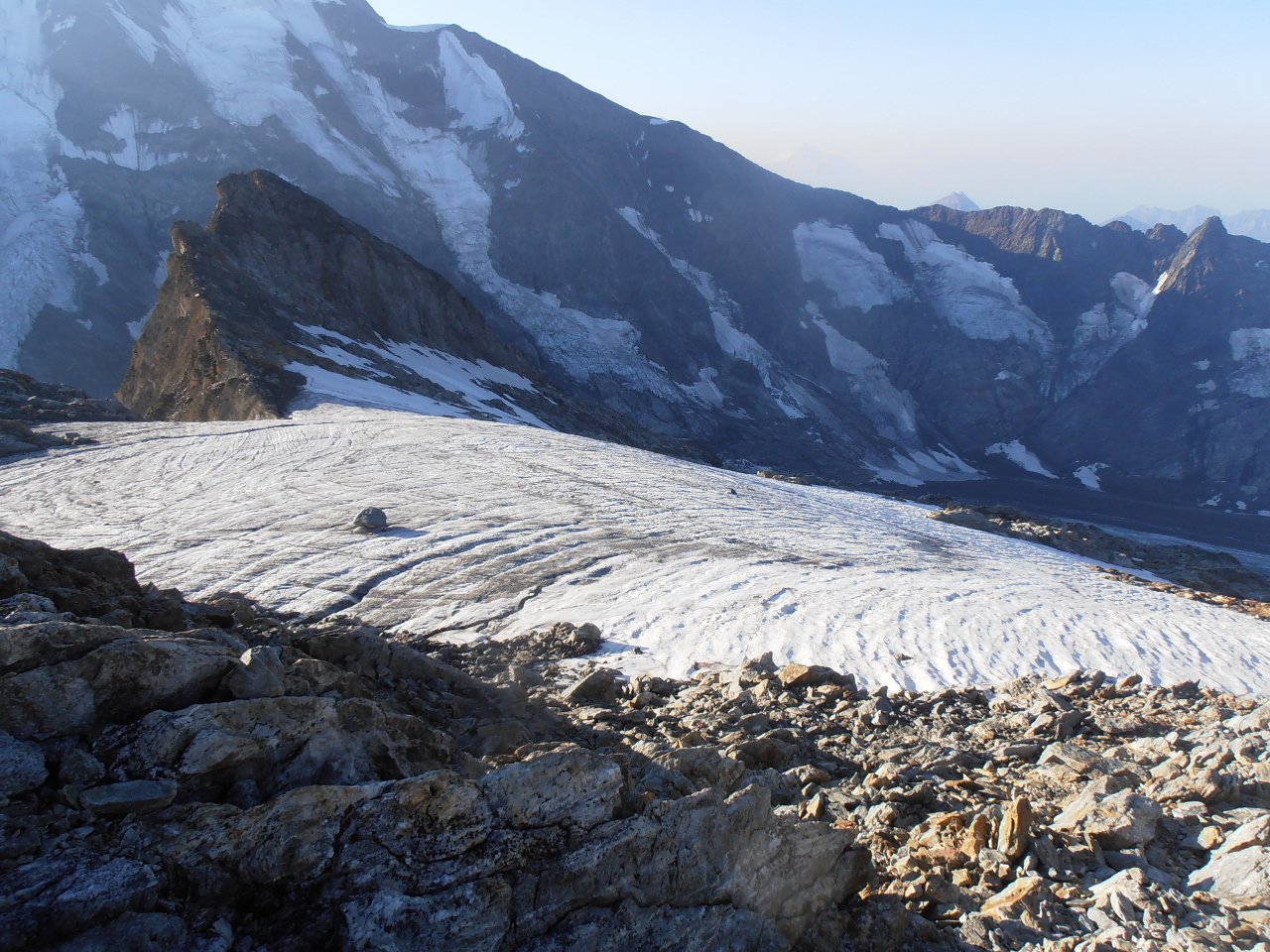 | tini | 01 - tutto il Glacier Blanc dalla cima | tini | 02 - dal colle alla cima, la cresta rocciosa | tini | 03 - punto di arrivo della salita più semplice, per cengie e breve nevaio finale | tini | 03 - salita diretta al colle dal nevaio, vista dalla discesa per più comode cengie a sud | tini | 04 - vista dalla cima, dal Pelvoux fino alla Barre | tini | 05 - seraccate del Glacier Blanc | tini | 06 - 4 coraggiose persone attraversano il ghiacciaio crepacciato | tini | 07 - sotto il colle | tini | 08 - in cresta, appena superato il passaggio sotto il roccione | tini | 09 - in cresta, nella zona del passaggio sotto la roccia | tini | 10 - dalla Cresta | tini | 11 - dalla cresta, zoom | tini | 13 - inizio del sentiero per evitare di mettere piede sul Glacier Blanc molto crepacciato | tini | 14 - crepacci