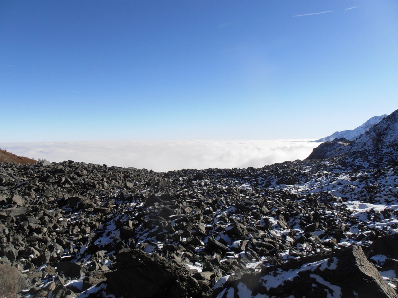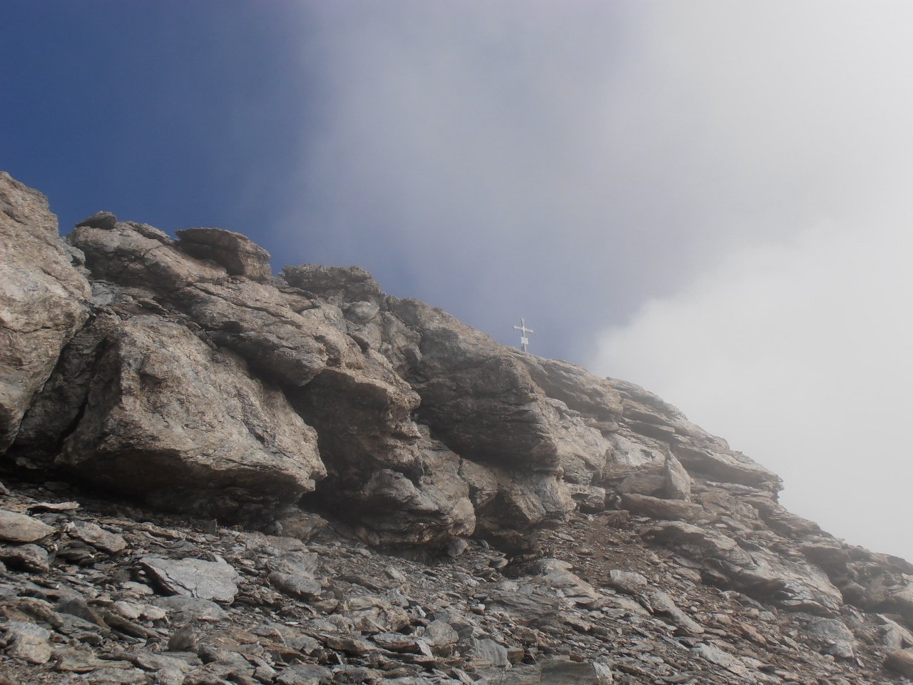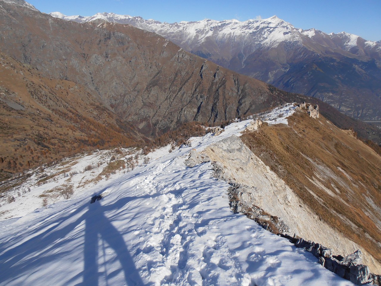 | tini | 01 - la cima del Mont de Peclet | tini | 02 - la parte finale su traccia nella pietraia | tini | 03 - cresta est vista dalla cima | tini | 04 - parte finale della salirìta dal pendio ovest | tini | 05 - notevole salto nel vuoto dalla cima sulla parete nord | tini | 06 - giornata con temperature invernali
