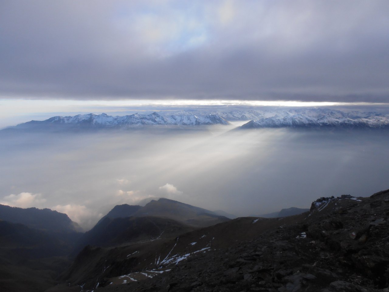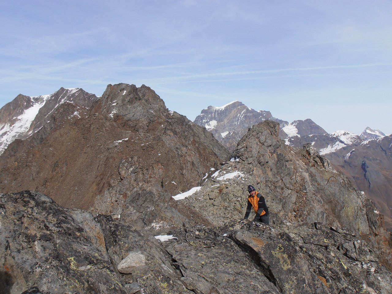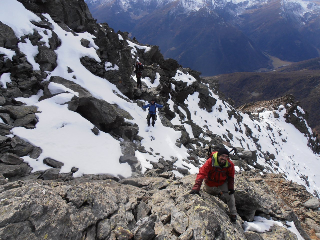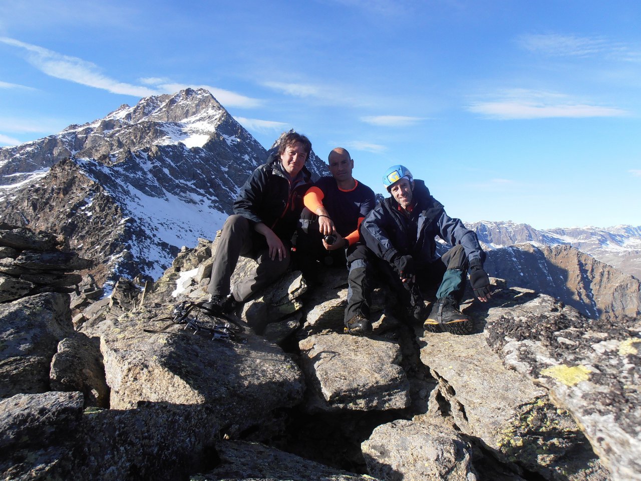 | tini | 01 - la cima del Mont de Peclet | tini | 02 - la parte finale su traccia nella pietraia | tini | 03 - cresta est vista dalla cima | tini | 04 - parte finale della salirìta dal pendio ovest | tini | 05 - notevole salto nel vuoto dalla cima sulla parete nord | tini | 06 - giornata con temperature invernali