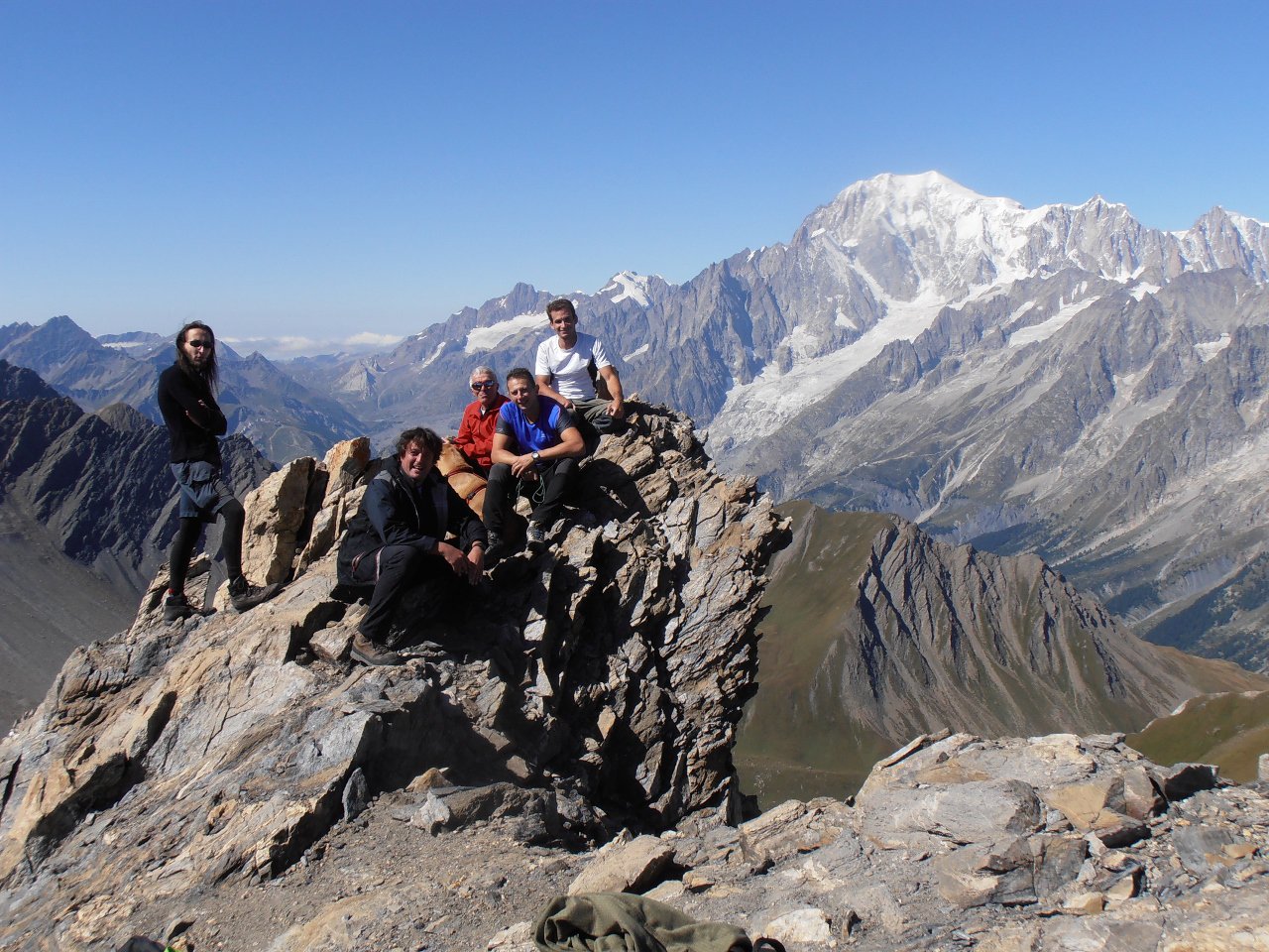 | tini | Vista sul Monte Bianco dalla cima | tini | 01 - La cresta con le due cime vista dall'anticima quota 2908 | tini | 02 - l'anticima a quota 2908 | tini | 03 - monumento a ricordo dell'aereo quì caduto durante la seconda guerra mondiale | tini | 04 - verso il Gran Queyron | tini | 05 - anticima e cresta finale | tini | 06 - inizio salita e Ramiere sempre presente a ovest | tini | | tini | Sullo sfondo la Grivola | tini | Amici e Grand Combin sullo sfondo | tini | versante ovest sotto la cima | tini | Bianco e Jorasses | tini | il passaggio più stretto se si segue la cresta - aggirabile con sentiero su versante ovest | tini | Versante ovest sotto la cima | tini | dalla cima, tra Mont Velan e Grand Combin