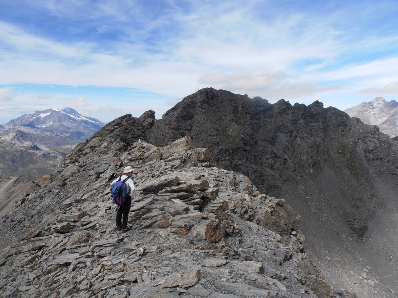 | tini | 17 - la placca dell'Ouillette, un pò di esposizione | tini | 18 - dall'Ouillette verso la Pointe des Lessieres traccia principalmente sul versante nord | tini | 19 - sulle corde fisse scendendo dalla Pointe des Lessieres verso il Col de l'Iseran | tini | 20 - sulle corde fisse scendendo dalla Lessieres verso il Col de l'Iseran | tini | il gruppo in cima con il Monte Bianco sullo sfondo | tini | 01 - dalla cima del Gran Roc guardando verso il lago di Plan d'Amont, punto di partenza | tini | 02 - il Gran Roc Salendo | tini | 03 - il pendio finale in cresta | tini | 04 - al Col de la Masse con il Rateau d'Aussois sullo sfondo | tini | 05 - quasi in cresta, percorso dal Col de la Masse | tini | 06 - dal Gran Roc la cresta che porta alla Pointe de l'Echelle | tini | 07 - il Gran Roc visto dalle rocce montonate sotto la traccia Taglio percorso) | tini | 08 - Dent Parrachée che si specchia nel lago di Plan d'Amont | tini | 01 - sulla cresta tra cima est e cima principale, sullo sfondo la Grande Casse-Grande Motte | tini | 02 - Aguille Pers vista dalla cima est