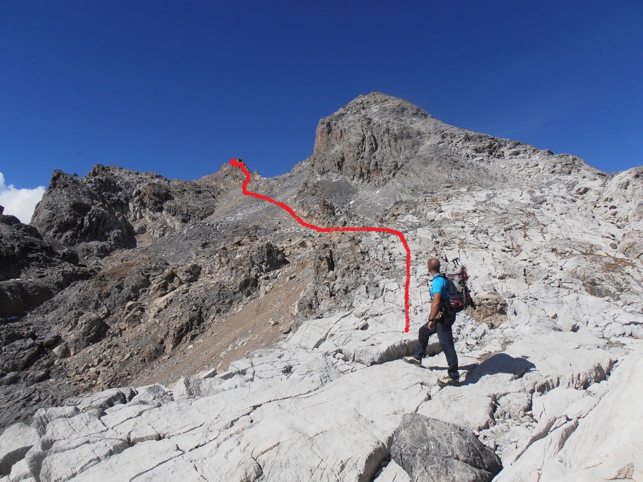 | tini | 05 - la Rognosa d'Etiache dal Sommeiller | tini | 01 - scorcio suffestivo dove il sentiero Vignale incontra la via Gervasutti tra il terzo ed il 4 torrione | tini | 02 - passaggio finale a lato del 4 torrione della via Gervasutti | tini | 03 - passaggio mediano di II, aggirabile a sx su roccette di I, oppure nel canalone a dx, partendo dalla base | tini | 04 - inizio della via-sentiero dopo il traverso, passaggi di I, esposti | tini | 05 - i passaggi iniziali, visti dall'alto. Sono aggirabili dal canale ad est della crestina | tini | 06 - arrivo alla base del 4 torrione della Gervasutti, passaggio di I - II a sx poi il camino finale a dx del torrione | tini | 07 - bel salto sotto questa breccia del 3 trorrione della Gervasutti | tini | 08 - vista dalla cresta Gervasutti verso la cresta Accademica | tini | 02 - sentiero Vignale e congiunzione su Via Gervasutti | tini | 03 - la cresta ad Est della Gervasutti, nei pressi della quale passa il sentiero Vignale e le sue varianti | tini | 04 - Cresta della via Amici, vista dal sentiero Vignale | tini | 05 - la crestina percorsa dal sentiero Vignale incontra il terzo torrione della via Gervasutti | tini | 06 - da sotto il terzo torrione della Gervasutti, attraverso cengie e passaggini facili si ritorna sul sentiero del Canalone | tini | 01 - ll mio capolinea di giornata a quota 2765