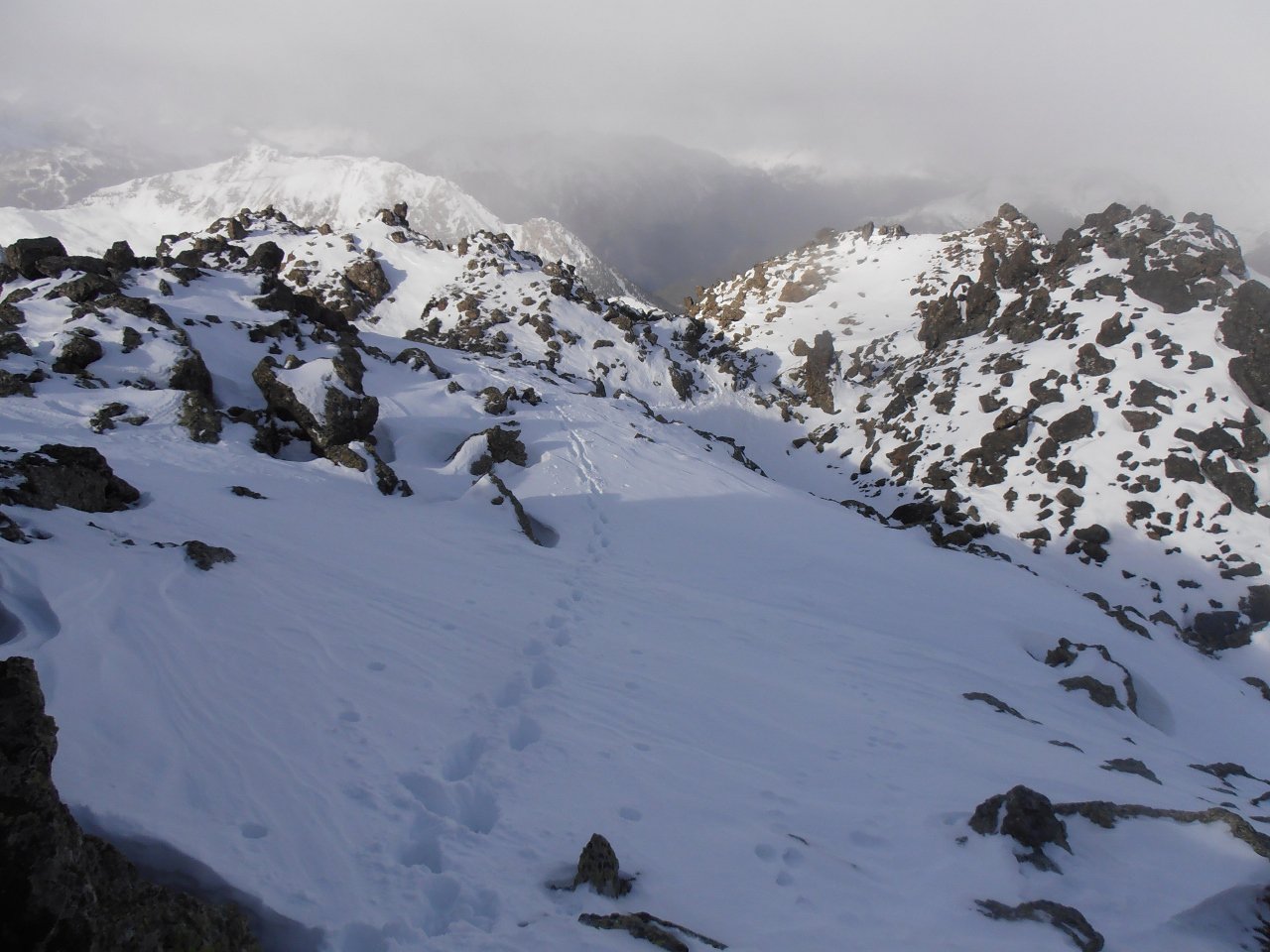 | tini | 03 - discesa per il versante ovest | tini | 04 - innevamento lungo la crsta sud di salita, parte alta | tini | 05 - prima della crestina finale della punta sud | tini | 06 - cima sud | tini | 07 - discesa dalla cima sud per la nord, in basso la discesa a valle diretta sul versante ovest | tini | 08 - ambiente magnifico | tini | 09 - Grand Roc Noir, vista magnifica da questo versante | tini | 10 - in discesa, la Dent Parrachée sullo sfondo | tini | 11 - discesa | tini | 12 - Charbonnel con ghiacciaio innevato da poco | tini | 01 - in cima con i Denti d'Ambin innevati sullo sfondo | tini | 02 - salita con tanta neve pesante da tracciare | tini | 03 - panorama dalla cima | tini | 04 - alla partenza stamattina neve da subito | tini | 05 - nonostante la buona quantità di neve non è ancora una cima sciabile
