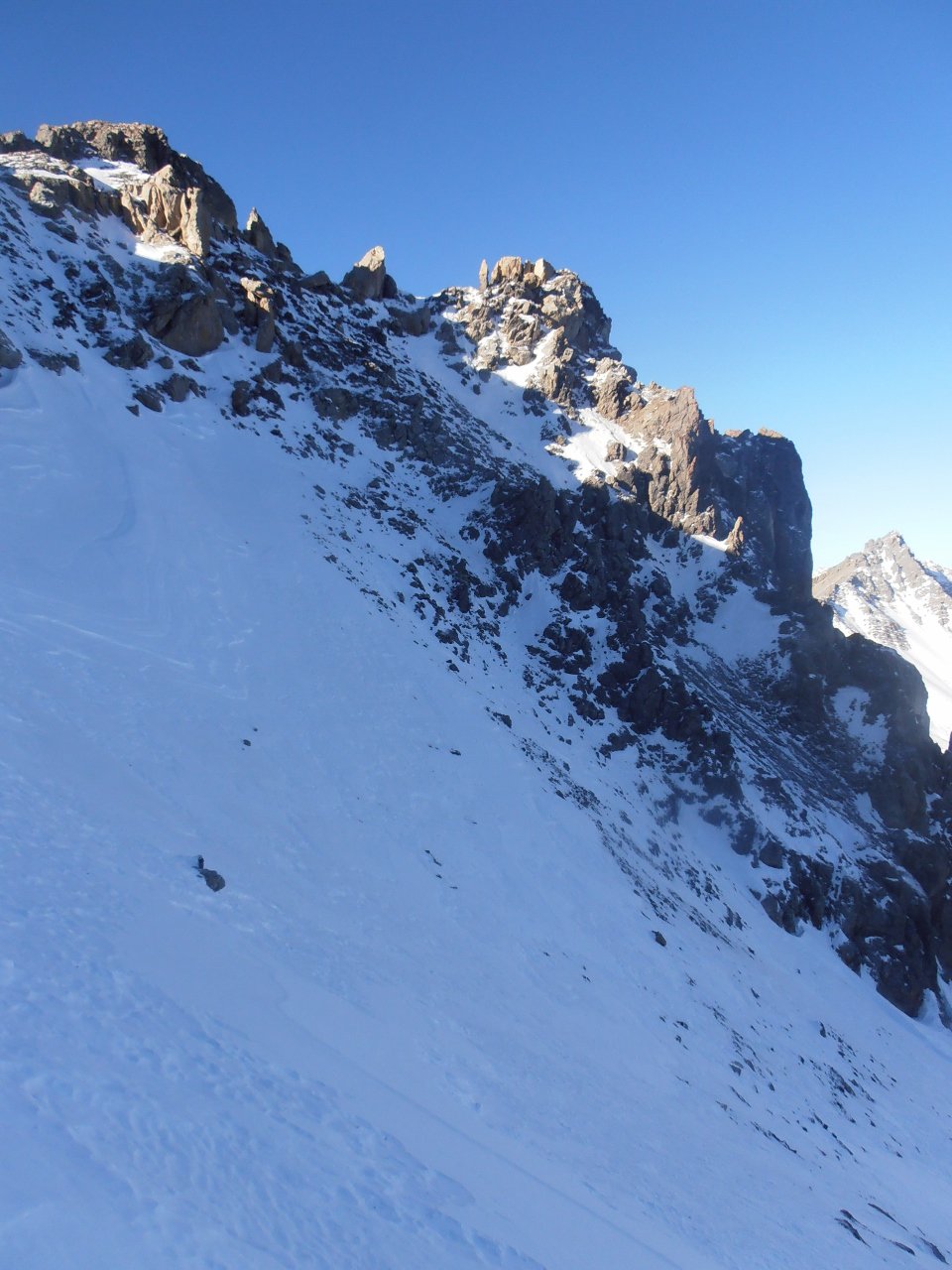 | tini | 22 - dalla base del canale verso la Crete de l'échaillon, al sole | tini | 27 - massacrante fare questa traccia - si affondava fino a sopra il ginocchio | tini | 01 - foto di vetta | tini | 02 - scendendo sotto i Tre Truc, sullo sfondo la cima | tini | 03 - parte finale ripida | tini | 04 - sulla cresta | tini | 05 - il castelletto di vetta | tini | 07 - cresta | tini | 09 - la parte finale ripida vista dalla cima | tini | 11 - scendendo dalle roccette di vetta | tini | 12 - pendio basso sui 35 gradi | tini | l'unico nevaio che si attraversa (tracciato) | tini | Arrivati in cresta è evidente lo stacco tra i due versanti | tini | Alla sera quassù sono rimasti soltanto loro | tini | Tramonto e raggi solari radenti