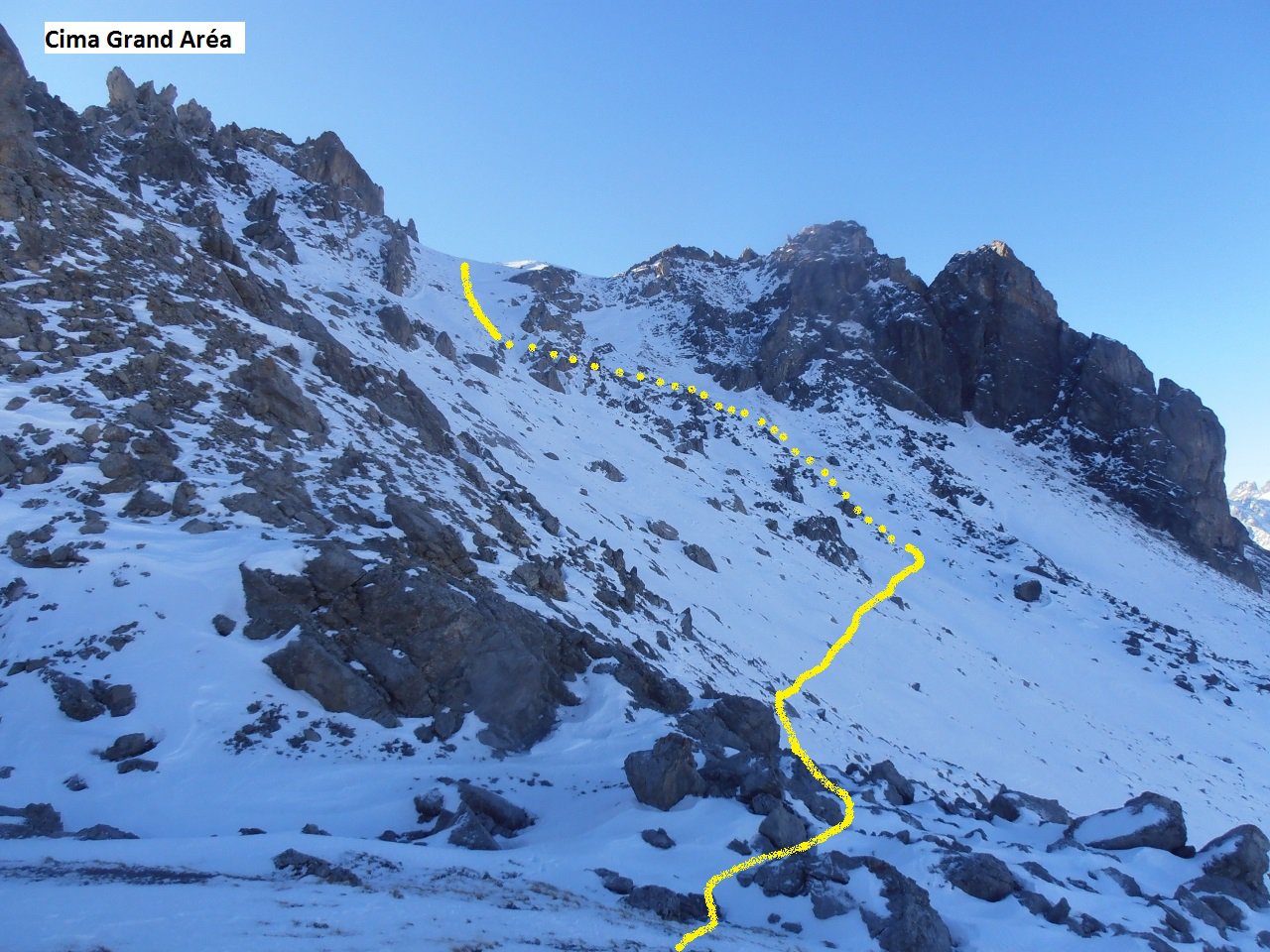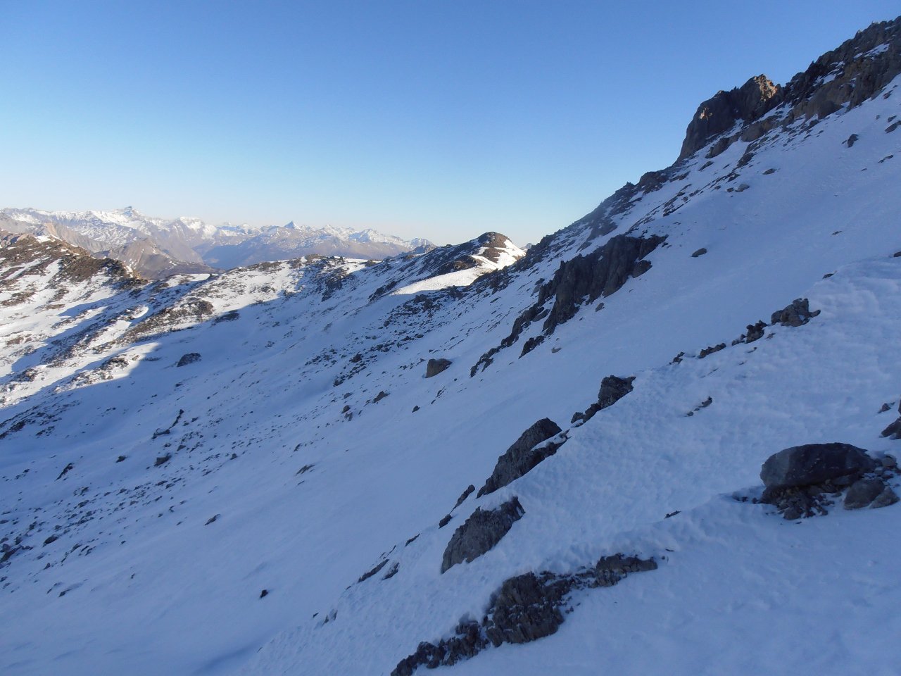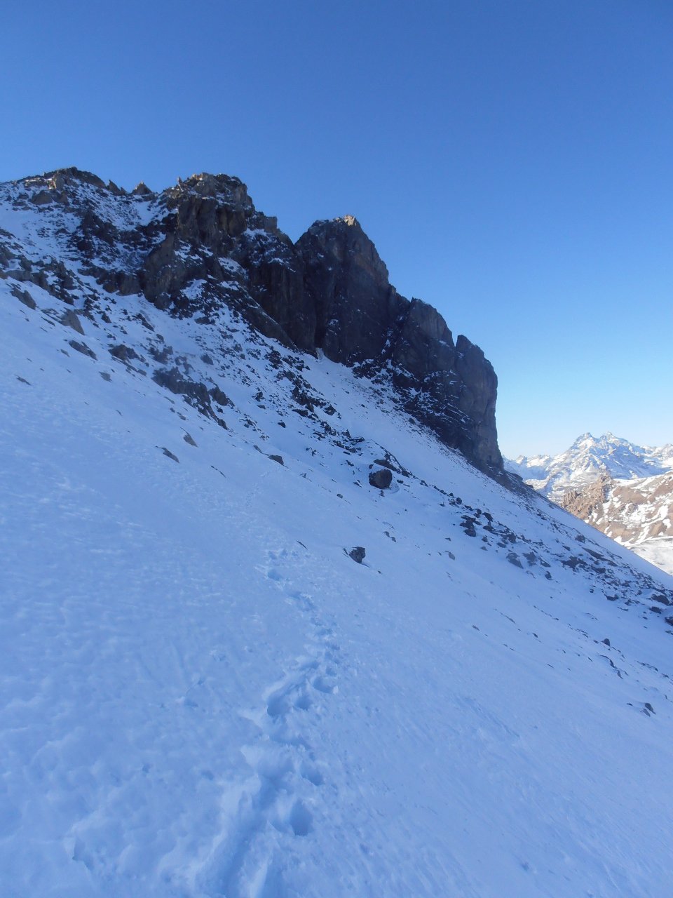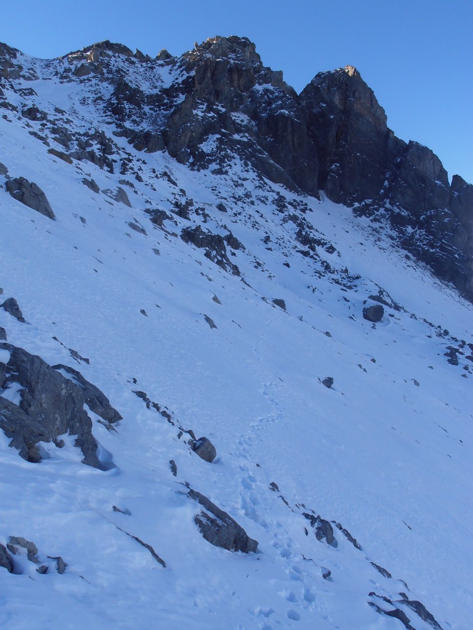 | tini | 00 - il versante Nord con il canale | tini | 01 - tutto il canale da sotto | tini | 01.1 - traccia del traverso dalla Crete de l'échaillon fino alla base del canale N | tini | 02 - utili entrambe, tratti di neve beton | tini | 03 - il sole sorge mentre salgo sul versante sud | tini | 13 - croce di vetta | tini | 14 - dalla cima | tini | 15 - il canale N visto dalla cima | tini | 17 - sguardo in discesa nel canale | tini | 18- la cresta lassù | tini | 19 - nel canale | tini | 20 - pendenze | tini | 21 - da evitare la zona della pietraia di grossi blocchi alla base del canale | tini | 22 - dalla base del canale verso la Crete de l'échaillon, al sole | tini | 27 - massacrante fare questa traccia - si affondava fino a sopra il ginocchio