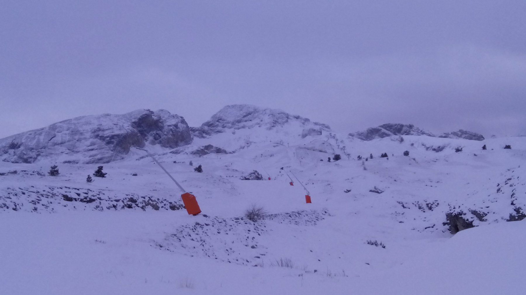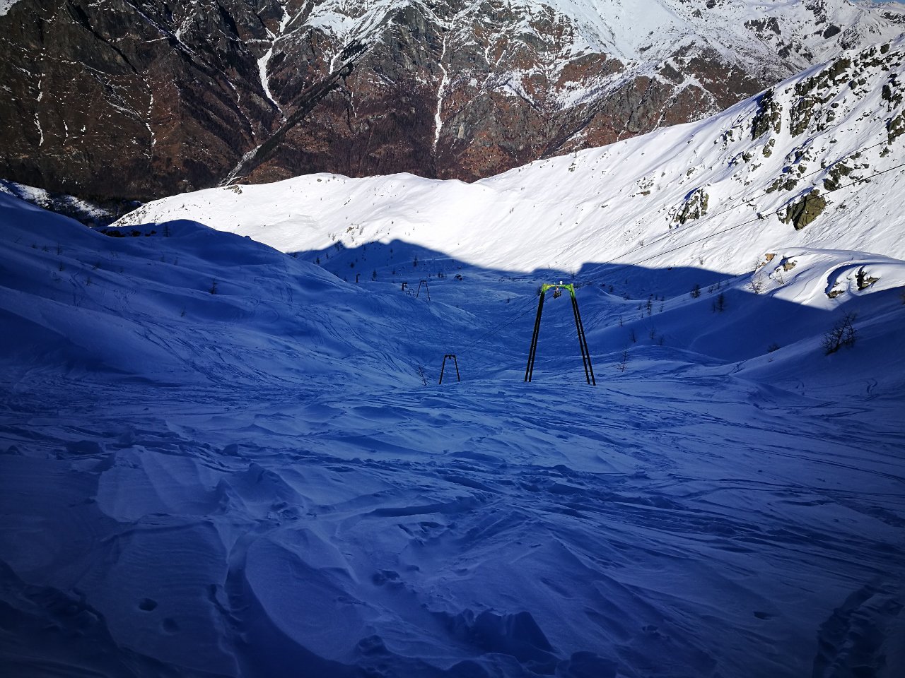 | tini | Innevamento scarso nel vallone che porta a Punta Lance e Pala Rusà | tini | L'innevamento scarso sulla pista che scende dal Tumlet sotto la seggiovia | tini | Lunella - Cruvin