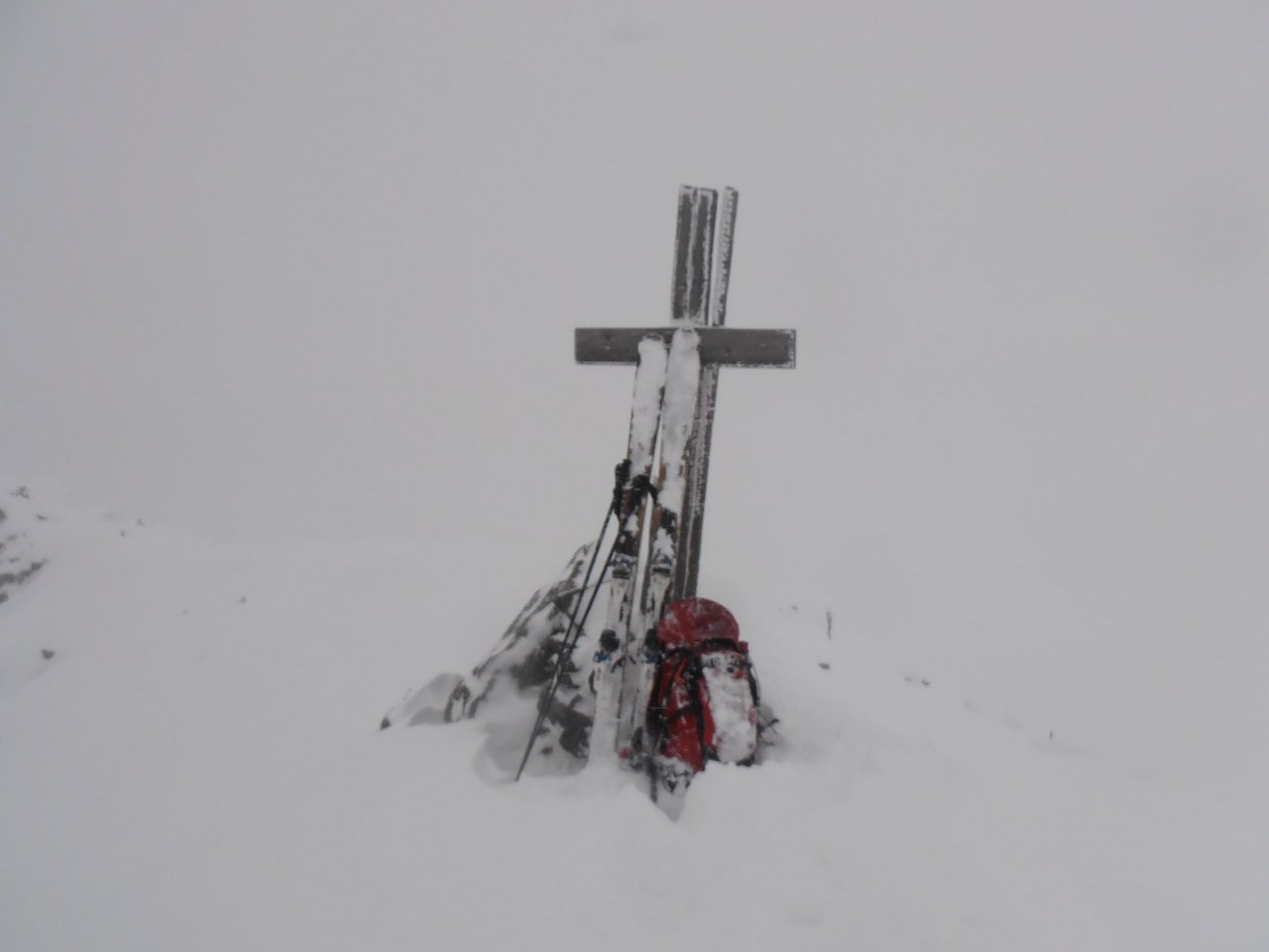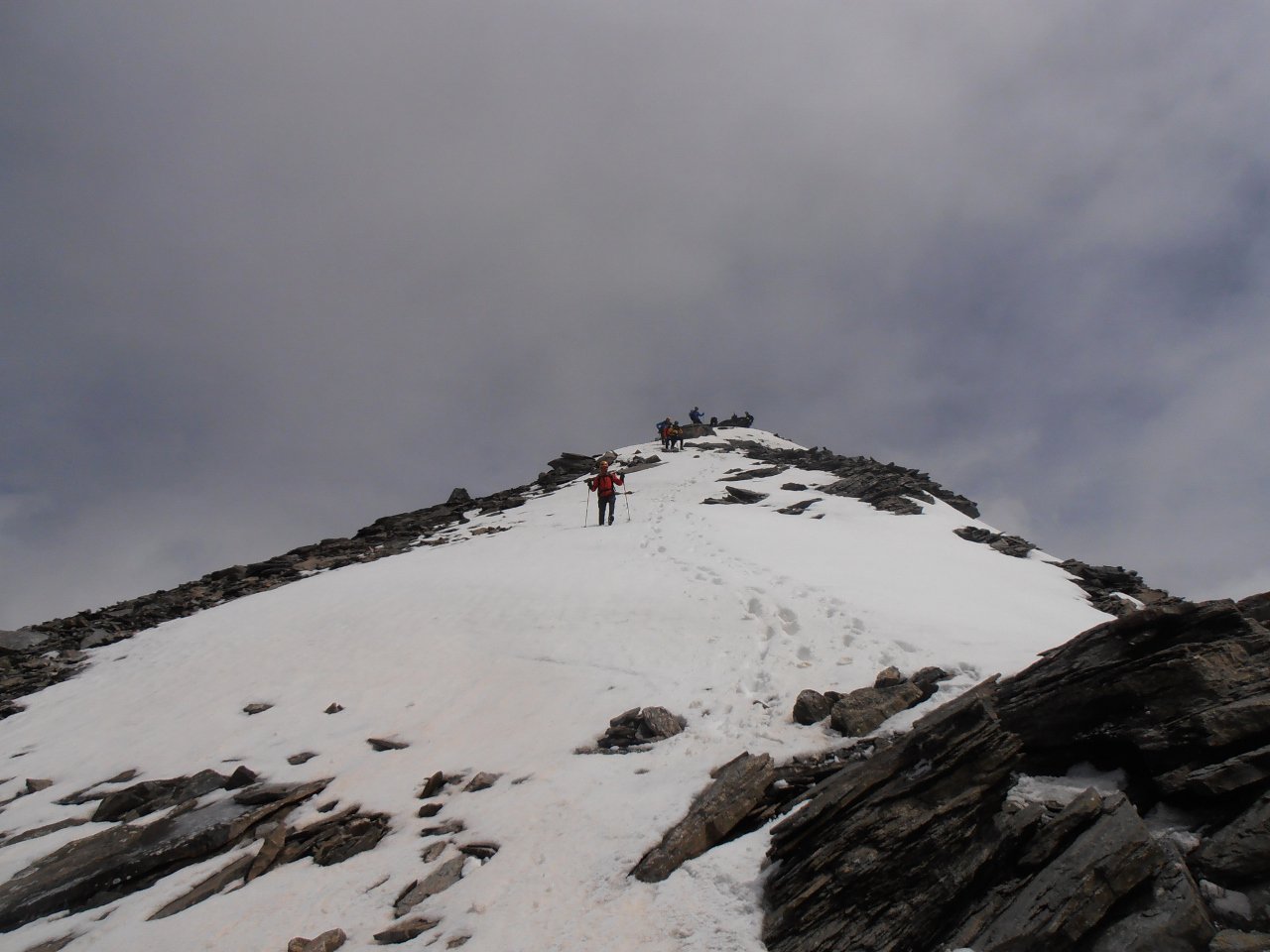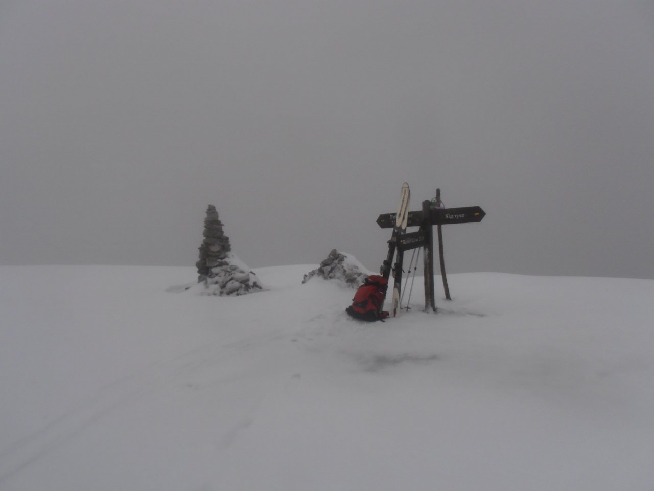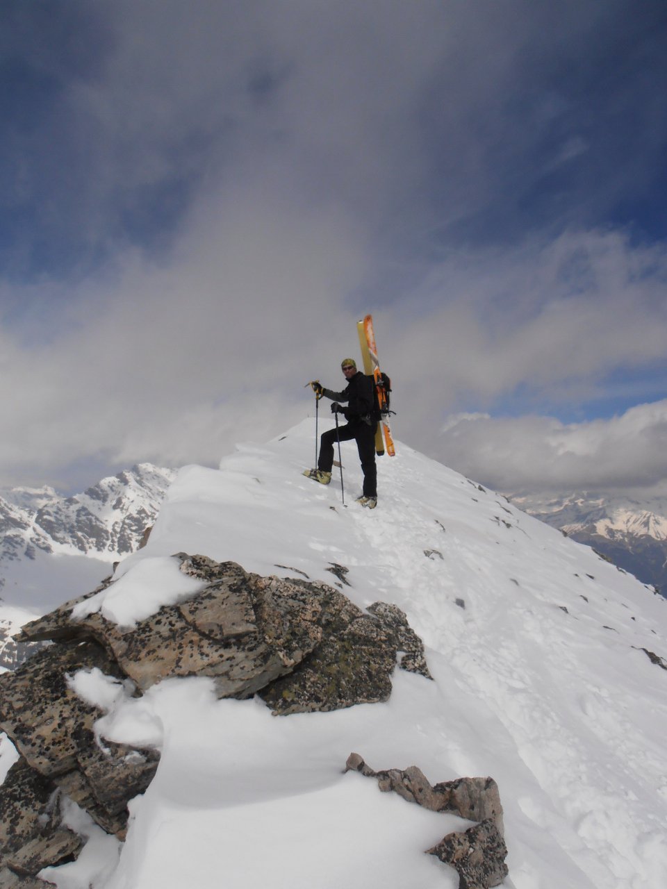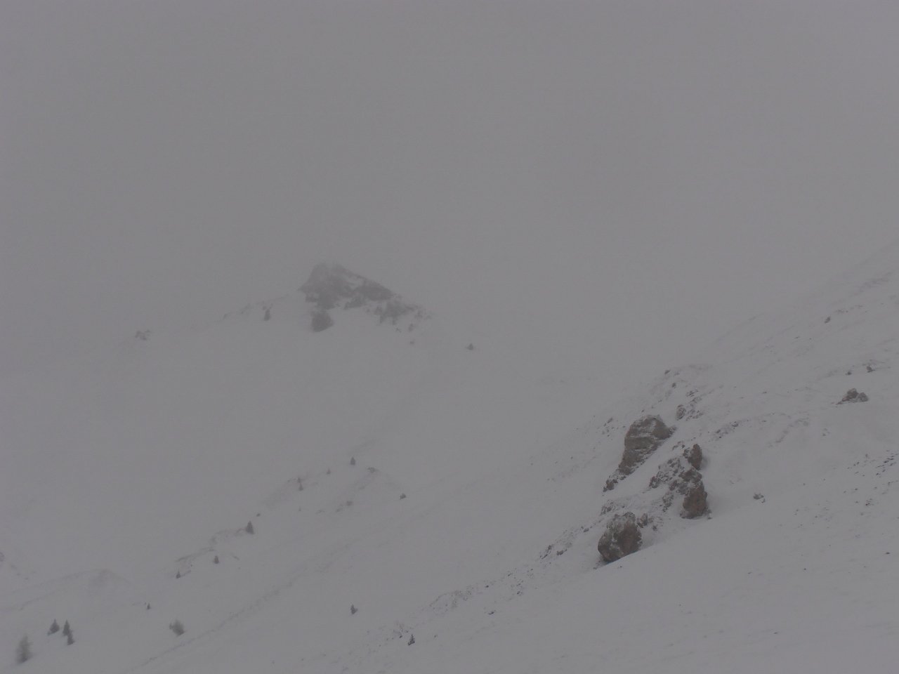 | tini | In cima, bucate le nuvole | tini | i primi 50 mt dalla cima sono consigliabili a piedi, molte rocce affioranti | tini | ci sono dei bei pendii in alto | tini | lì in mezzo si scende sci ai piedi soltanto se fortemente motivati