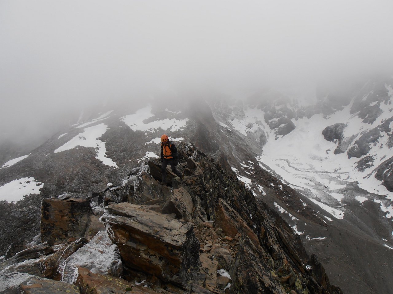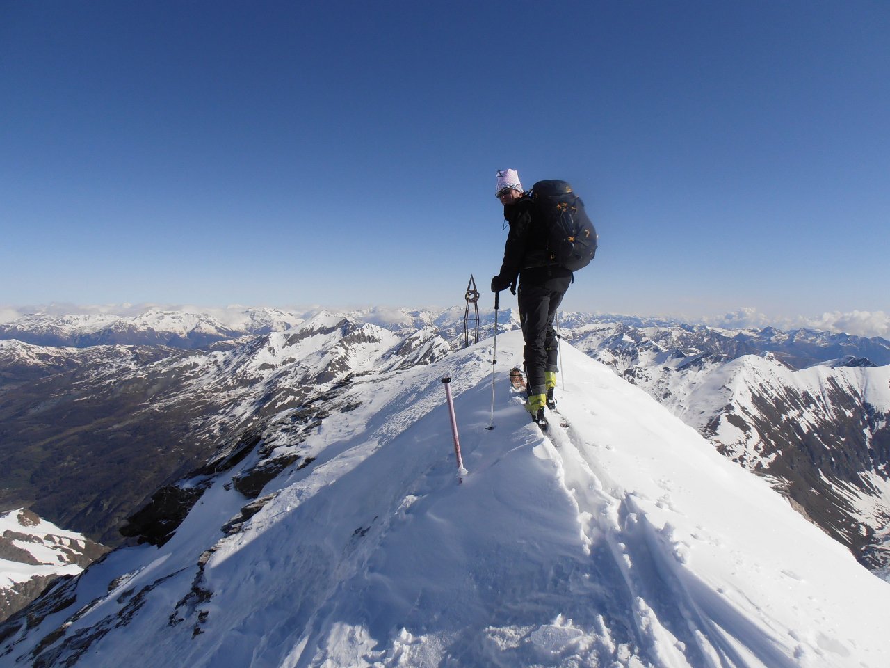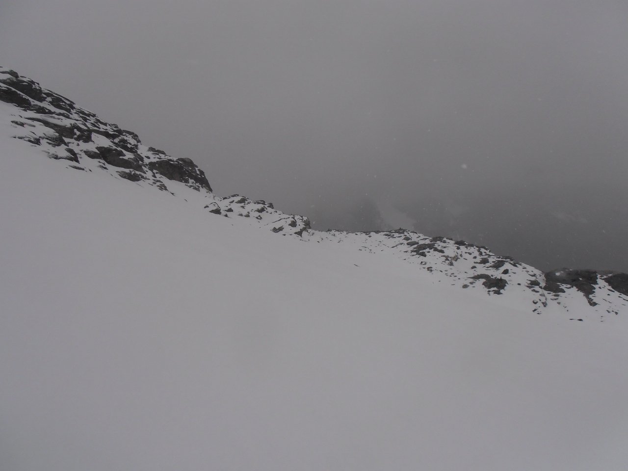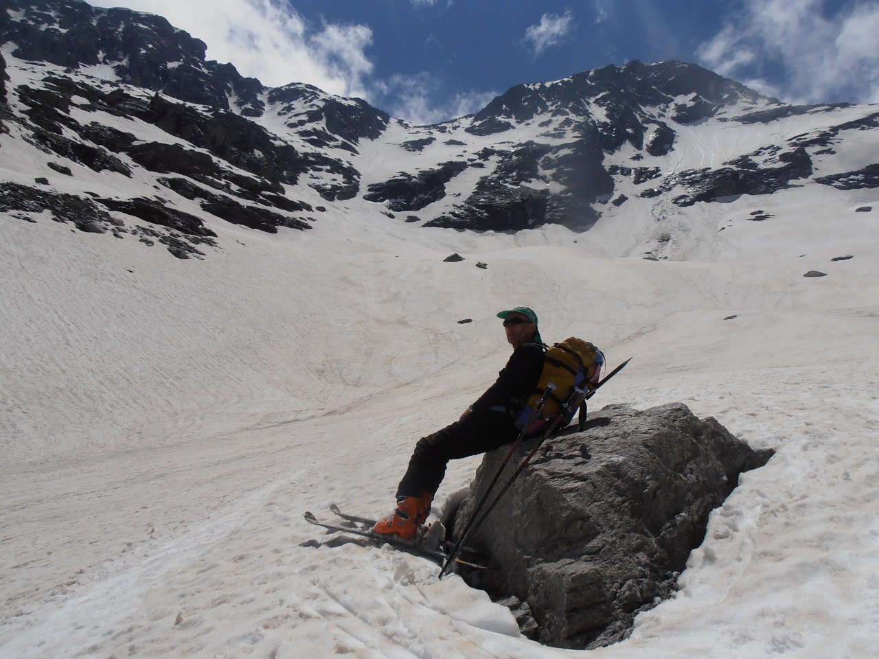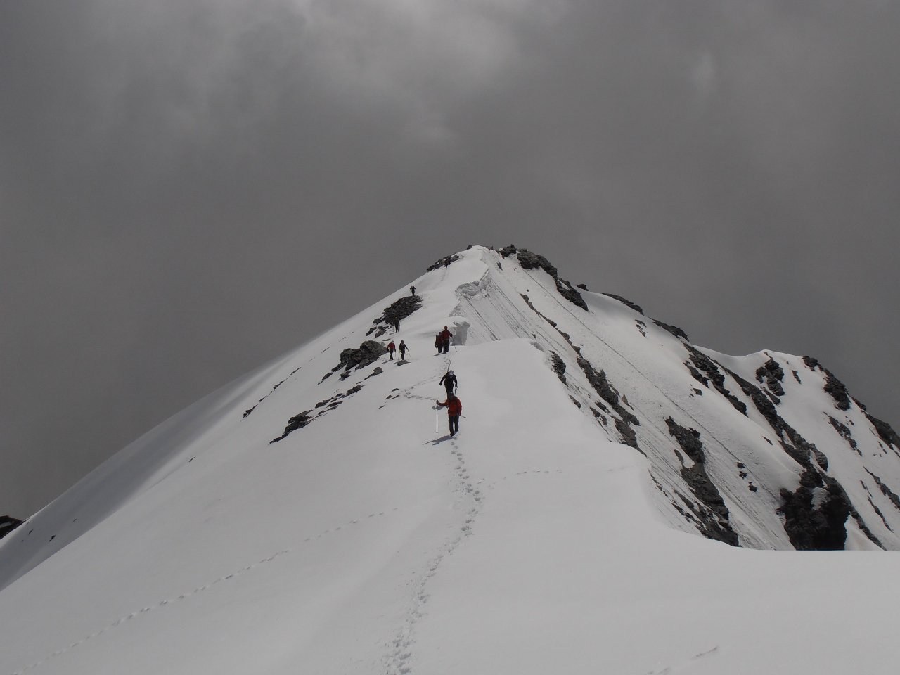 | tini | In cima, bucate le nuvole | tini | i primi 50 mt dalla cima sono consigliabili a piedi, molte rocce affioranti | tini | ci sono dei bei pendii in alto | tini | lì in mezzo si scende sci ai piedi soltanto se fortemente motivati