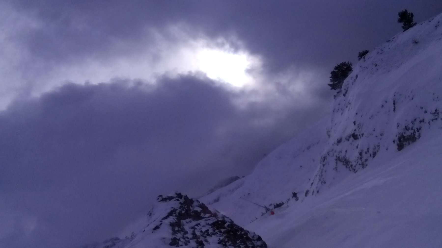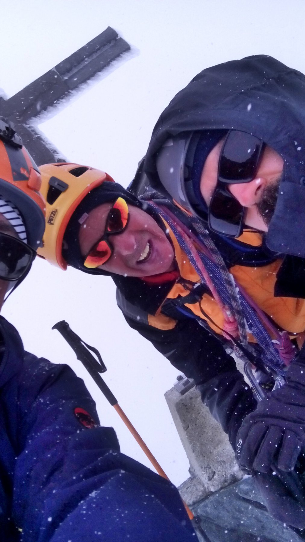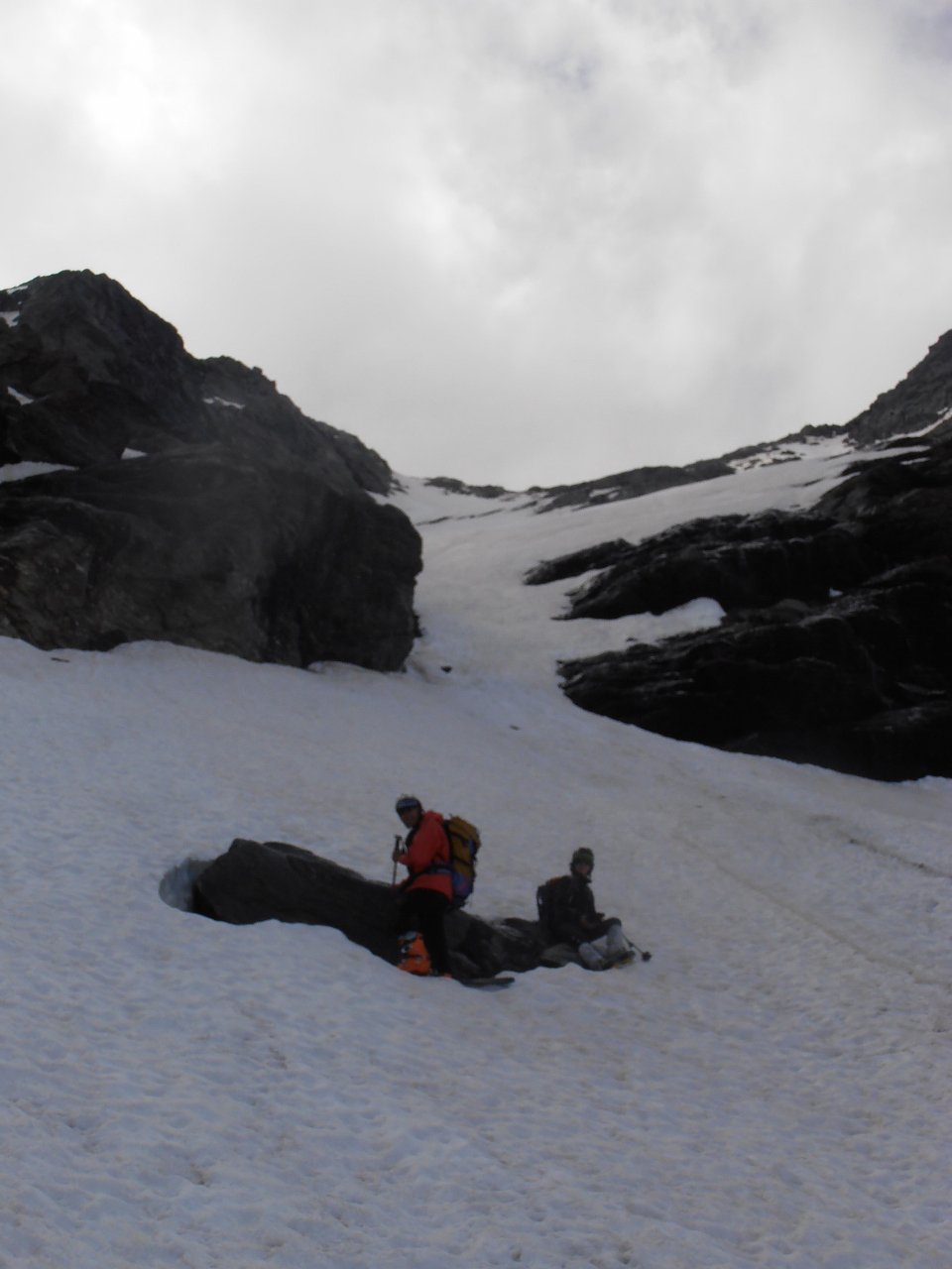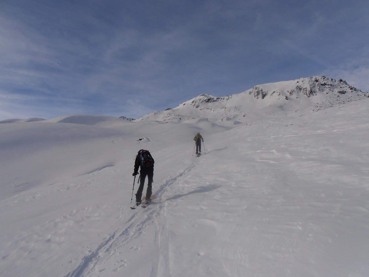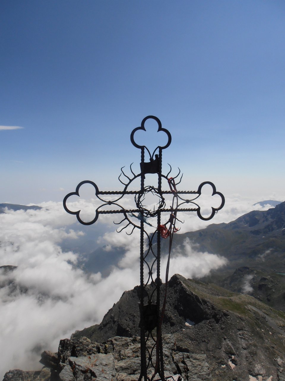 | tini | In cima, bucate le nuvole | tini | i primi 50 mt dalla cima sono consigliabili a piedi, molte rocce affioranti | tini | ci sono dei bei pendii in alto | tini | lì in mezzo si scende sci ai piedi soltanto se fortemente motivati