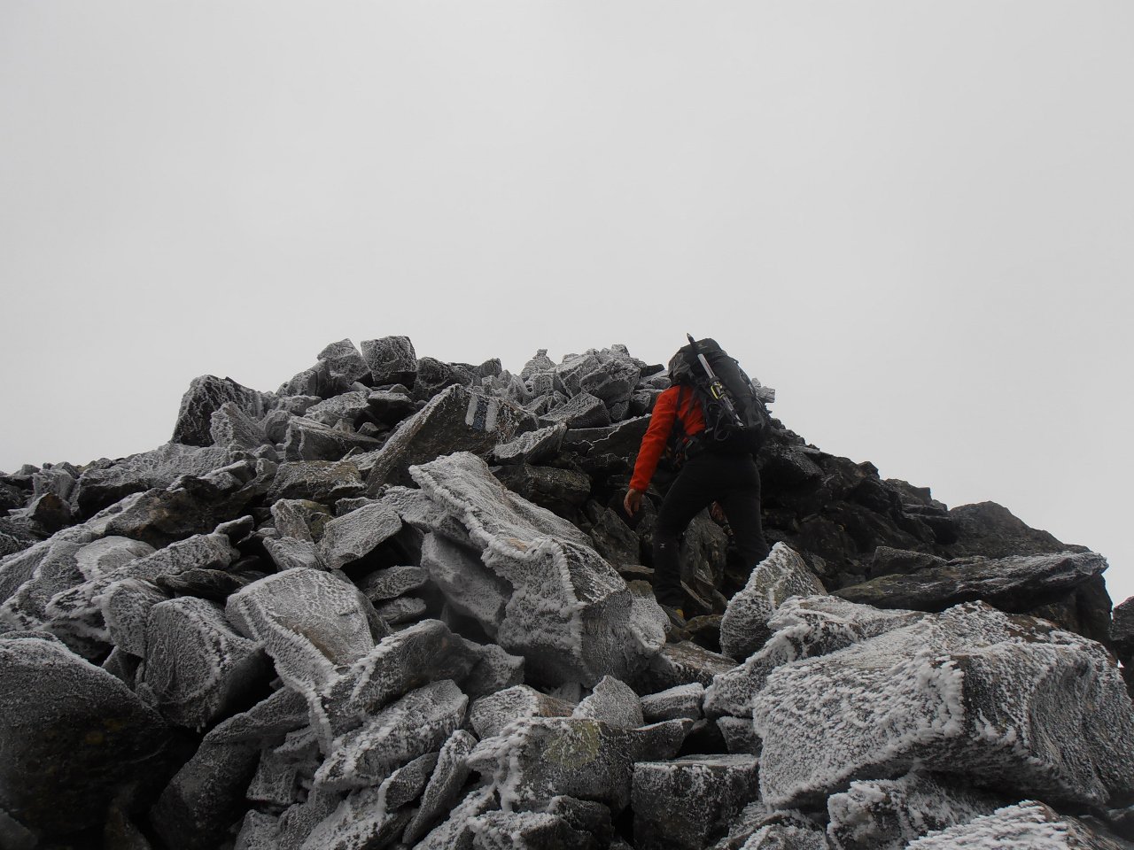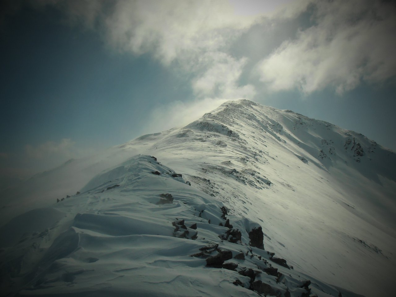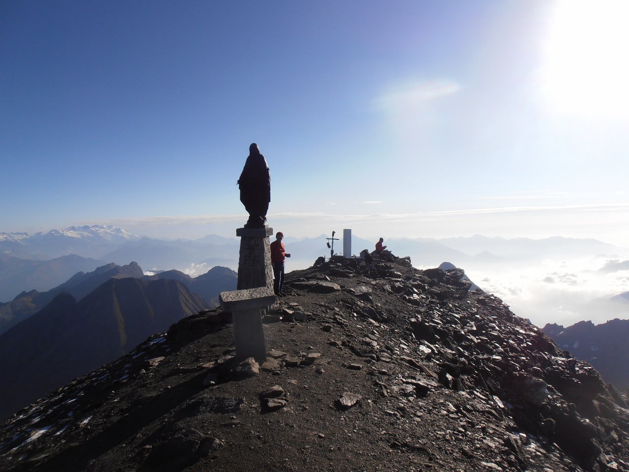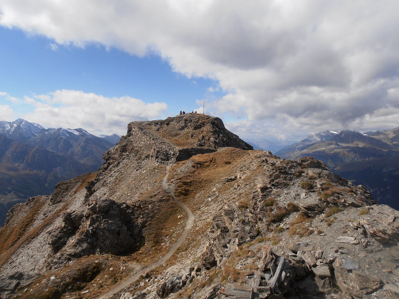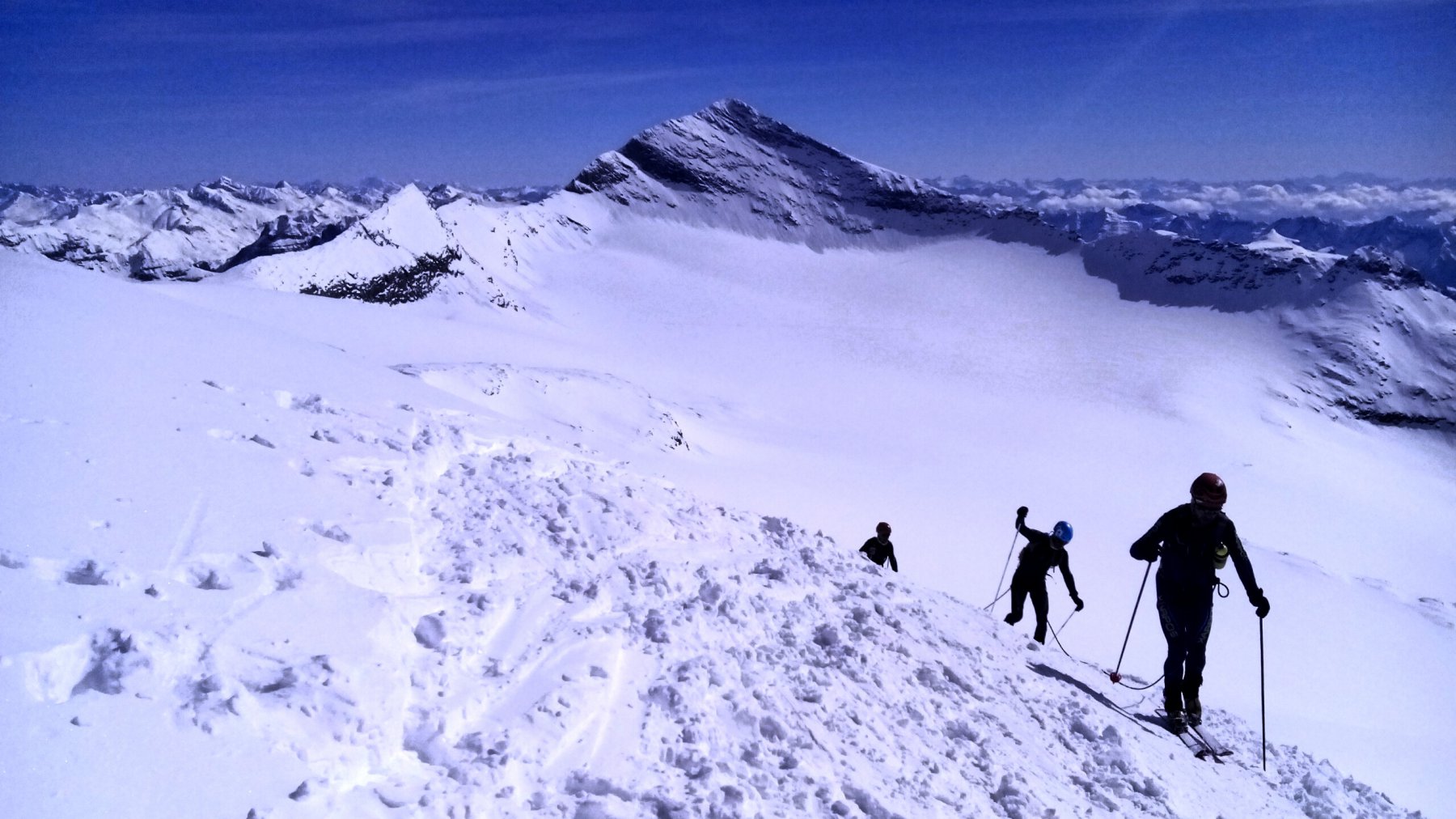 | tini | In cima, bucate le nuvole | tini | i primi 50 mt dalla cima sono consigliabili a piedi, molte rocce affioranti | tini | ci sono dei bei pendii in alto | tini | lì in mezzo si scende sci ai piedi soltanto se fortemente motivati