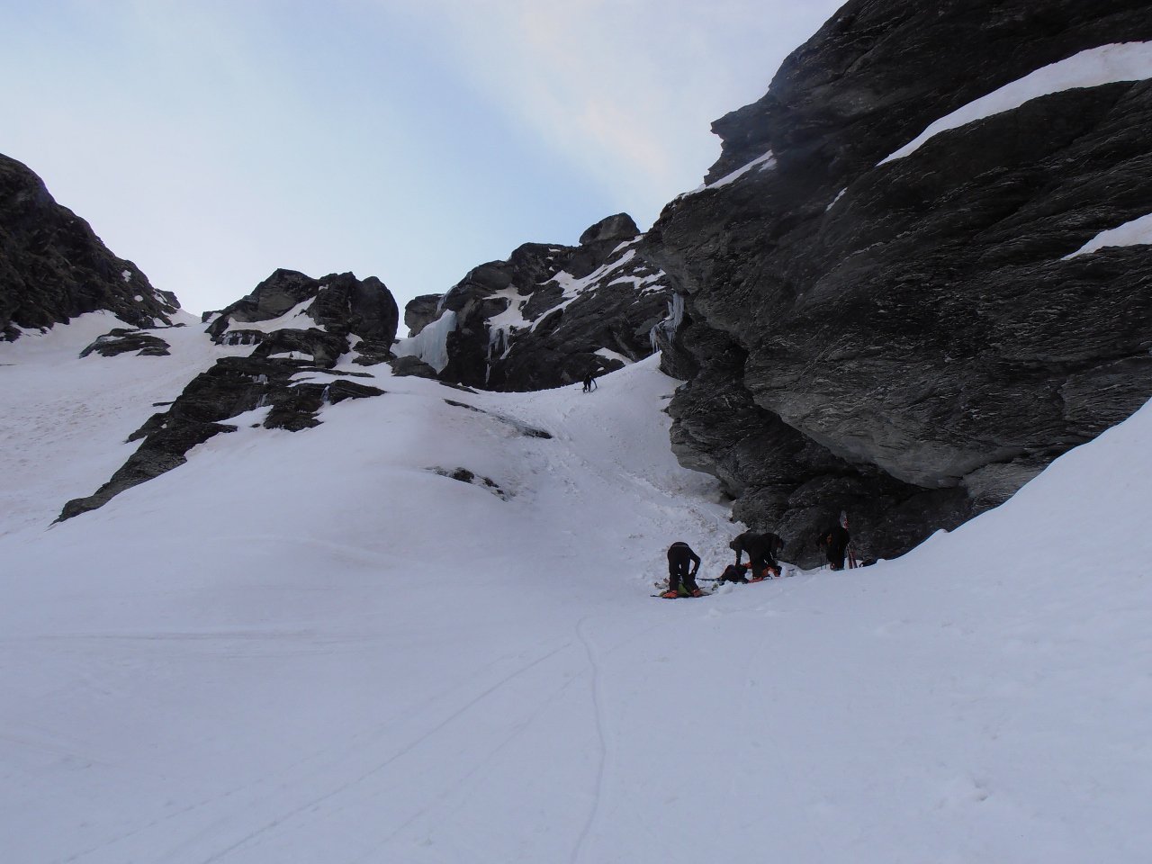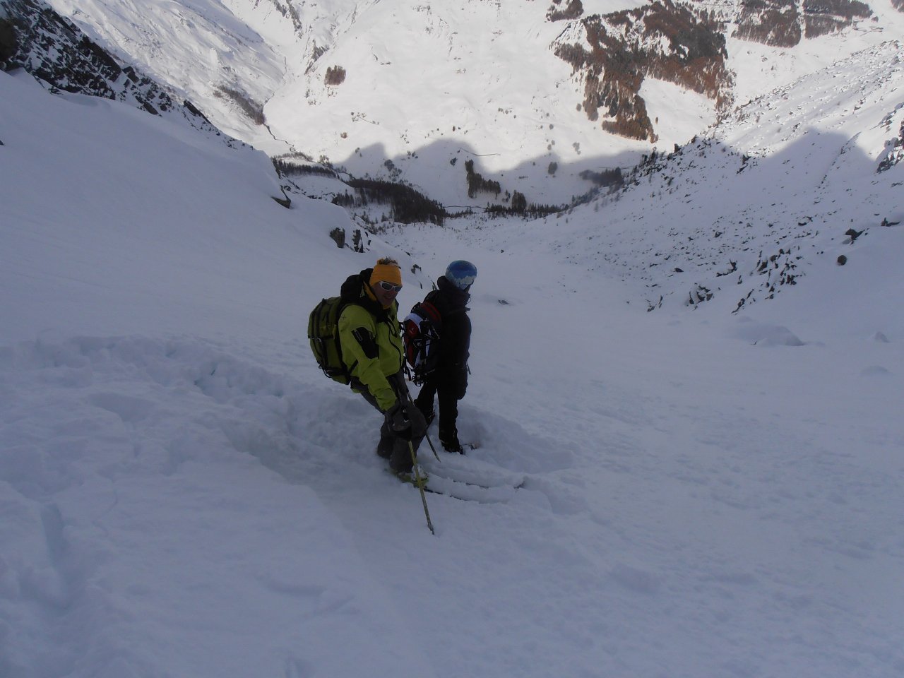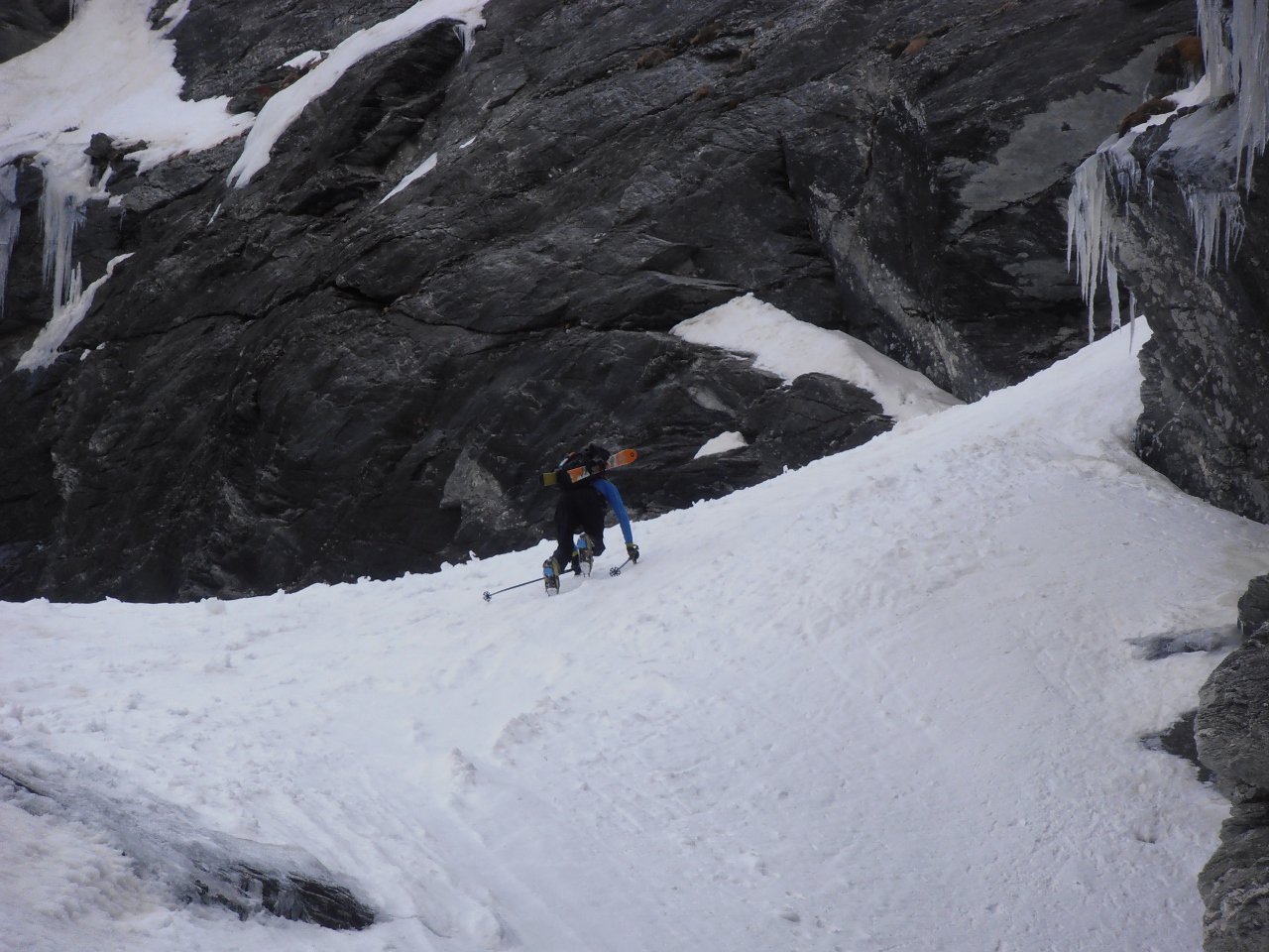 | tini | 01 - Enrico su un passaggio alpinistico esposto nella parte bassa | tini | 02 - pendio di discesa sui 40 gradi abbondanti | tini | 03 - inizio gita, luci del mattino sul fondovalle | tini | 04 - Pasquale sulla rampa finale per la cima | tini | 05 - canalino, picca e ramponi | tini | 06 - Enrico apre la via nel canalino | tini | 07 - Enrico arriva in cima | tini | 09 - Daniele e Teddy a metà ed inizio del pendio ripido | tini | 10 - neve primaverile | tini | 11 - passaggio con gli sci del traverso esposto | tini | 12 - non ci siamo fatti mancare nemmeno il canalino | tini | 13 - fine parte tecnica, abbiamo sciato lì in mezzo