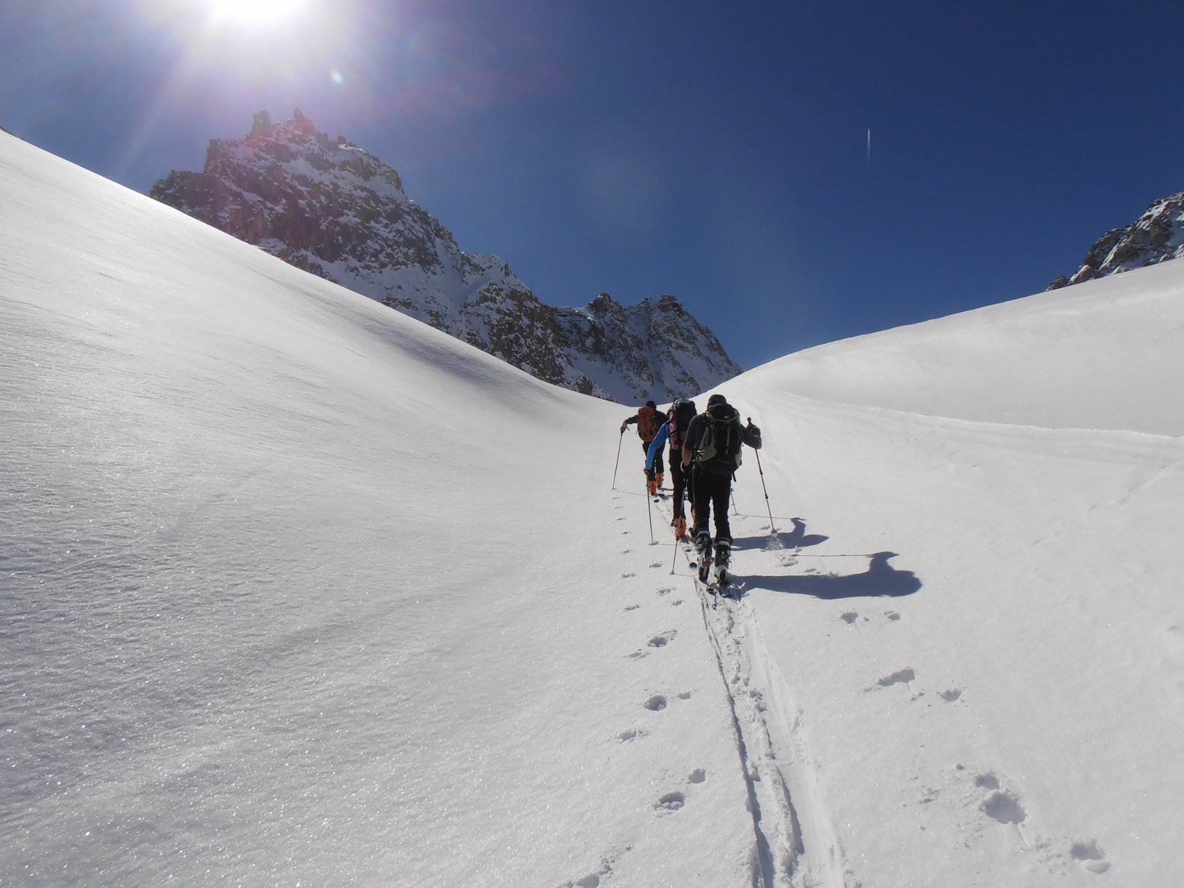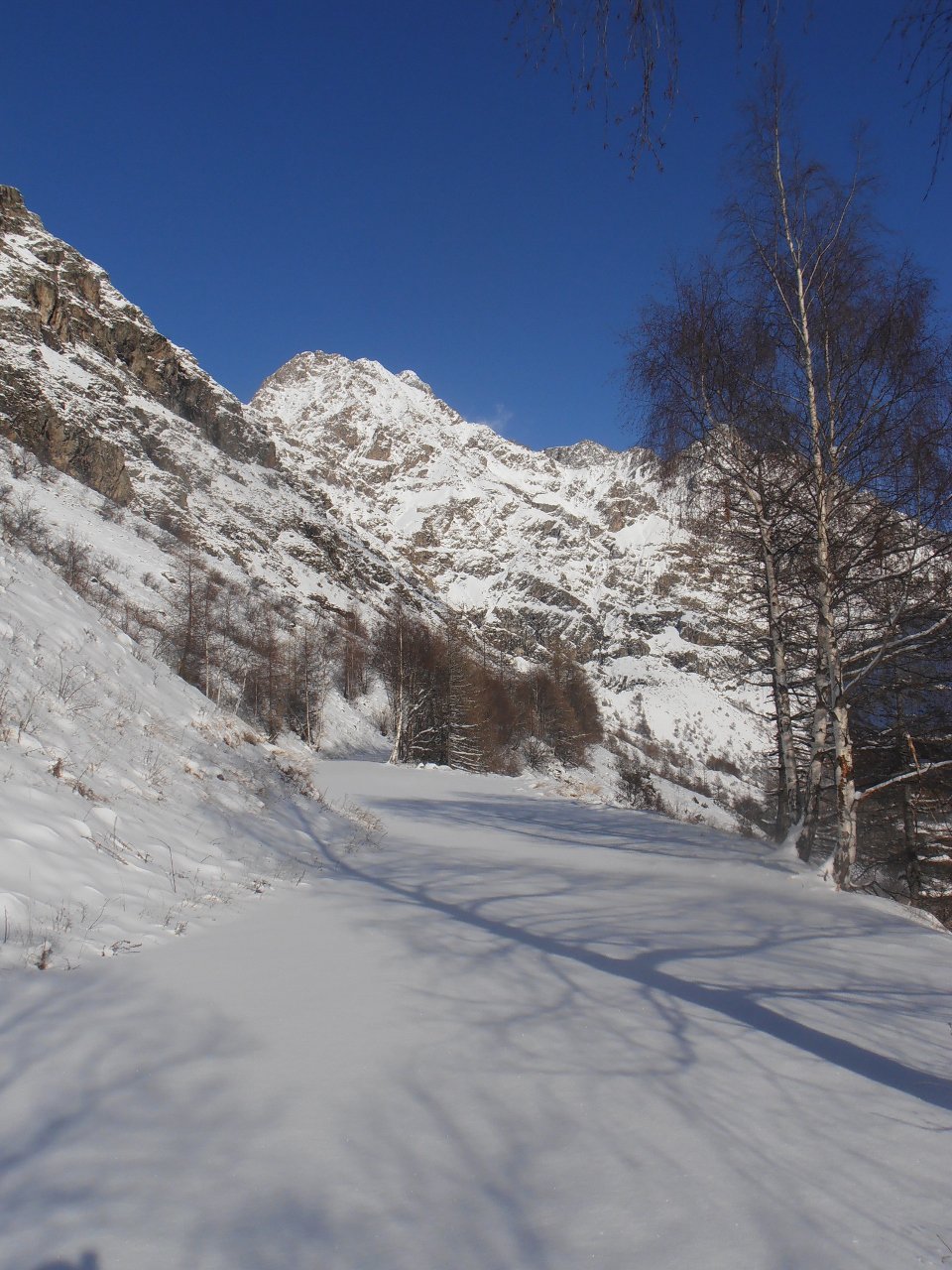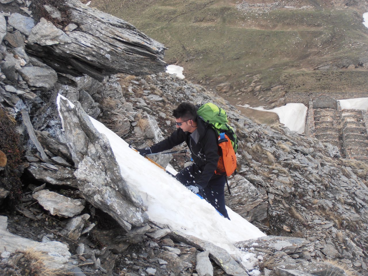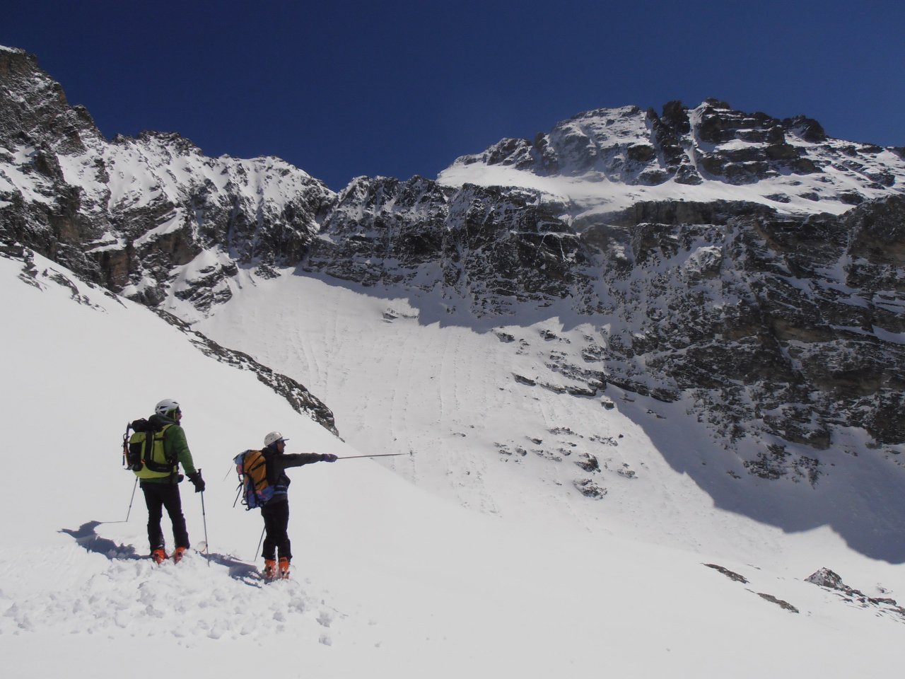 | tini | 01 - Enrico su un passaggio alpinistico esposto nella parte bassa | tini | 02 - pendio di discesa sui 40 gradi abbondanti | tini | 03 - inizio gita, luci del mattino sul fondovalle | tini | 04 - Pasquale sulla rampa finale per la cima | tini | 05 - canalino, picca e ramponi | tini | 06 - Enrico apre la via nel canalino | tini | 07 - Enrico arriva in cima | tini | 09 - Daniele e Teddy a metà ed inizio del pendio ripido | tini | 10 - neve primaverile | tini | 11 - passaggio con gli sci del traverso esposto | tini | 12 - non ci siamo fatti mancare nemmeno il canalino | tini | 13 - fine parte tecnica, abbiamo sciato lì in mezzo