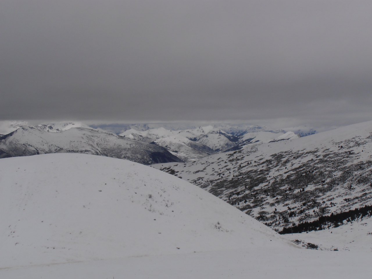 | tini | 01 - panorama sul Devoluy guardando indietro durante la risalita | tini | 02 - vista verso la Tete du Collier | tini | 03 - arrivo all'altisurface | tini | 04 - fuga a valle nella bufera...