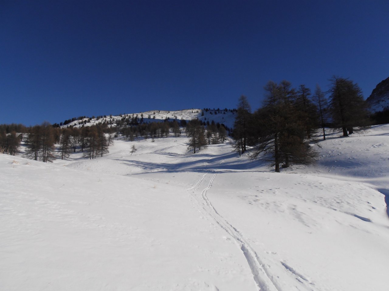 | tini | 01 - prime curve sotto la cima | tini | 02 - vista della zona dalla partenza | tini | 03 - scorci di panorama verso il fondovalle dello Champsaur | tini | 04 - laghetto a quota 1450 | tini | 05 - traccia in neve profonda | tini | 06 - curve in 40-50cm di fresca | tini | 07 - curve in 40-50cm di fresca