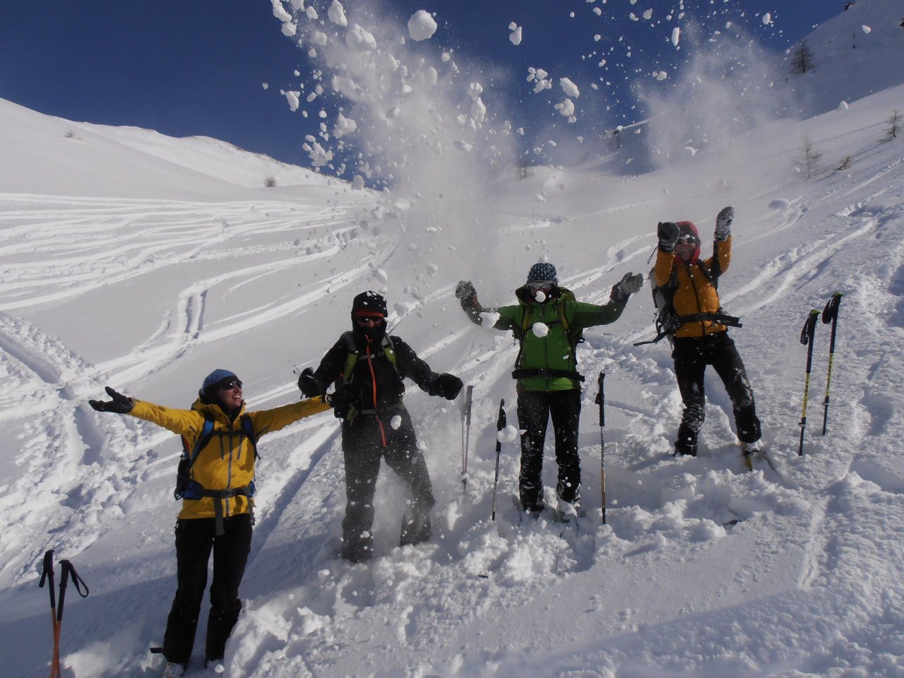 | tini | 01 - sotto il Courbioun da quota 2000 circa | tini | 02 - neve farinosa anche con esposizione sud | tini | 03 - si fanno delle belle curve, ma si tocca sotto | tini | 04 - Heliski, punto di ritrovo alla chiesetta di Grange Chabaud | tini | 05 - vallone Chabaud visto scendendo da Cima del Bosco