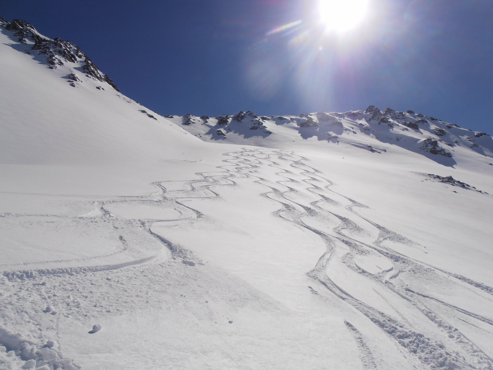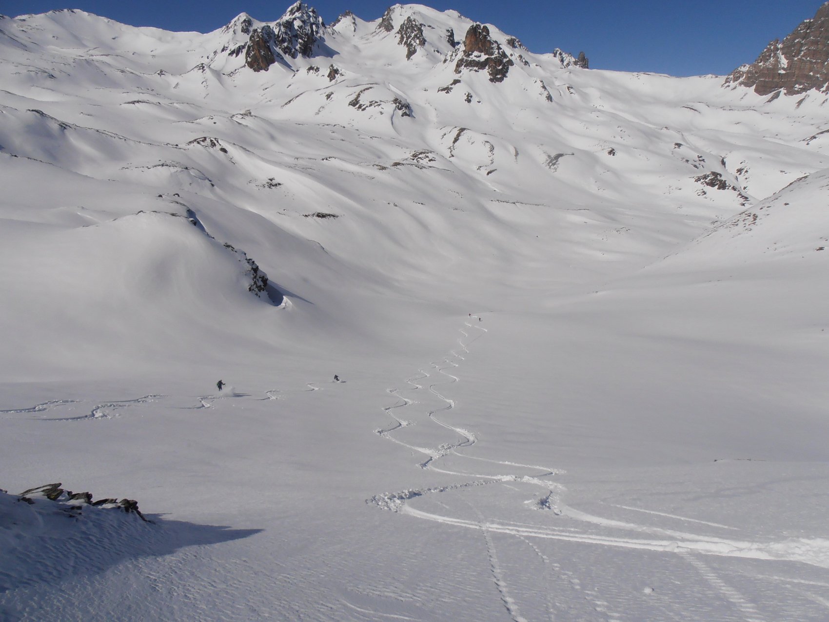 | tini | 09 - parte dell'itinerario di discesa | tini | 01 - arrivo sulla cima vergine | tini | 02 - curve da antologia | tini | 03 - a sinistra la Ramiere, a destra il bivacco Tornior | tini | 04 - inizio a piedi, non troppo lungo a dire il vero | tini | 05 - acqua di fusione in bivacco, c'è il fornellino | tini | 06 - dal bivacco verso la parte bassa della Valle di Thuras | tini | 07 - colle di Thuras dal bivacco | tini | 08 - la nostra traccia di salita | tini | 09 - i pianori sotto il Colle della Ramiere, sullo sfondo la Merciantaira | tini | 10 - dalla cima verso il Monviso | tini | Becca di Moncorvé nella bufera | tini | bivacco provvisorio a quota 3750 sulla Schiena dell'Asino | tini | 01 - arrivo in cima, max 15 metri a piedi | tini | 02 - strappo ripido alla base della Tresenta, parte più impegnativa della gita