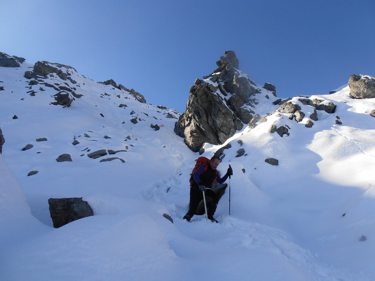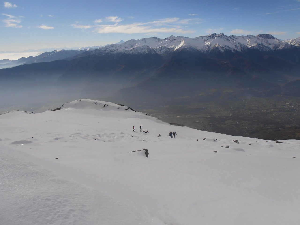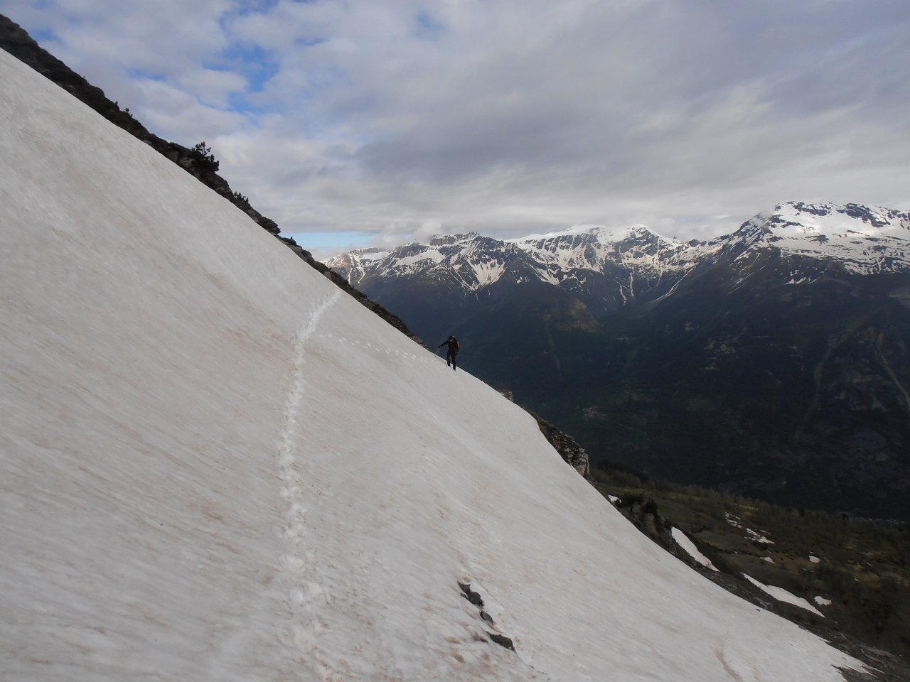 | tini | 01 - in cima | tini | 02 - la cima da raggiungere lassù | tini | 03 - cresta NE completamente priva di neve, presente invecce sulla parete N | tini | 04 - versanti scoscesi da attraversare | tini | 05 - salendo al Col du Salvé | tini | 06 - primi passaggi lungo la cresta NE | tini | 07 - cenge esposte | tini | 08 - anticima dalla cima | tini | 09 - arrivo in cima | tini | 10 - passaggi esposti in discesa | tini | 11 - in discesa verso il Colle Vessona