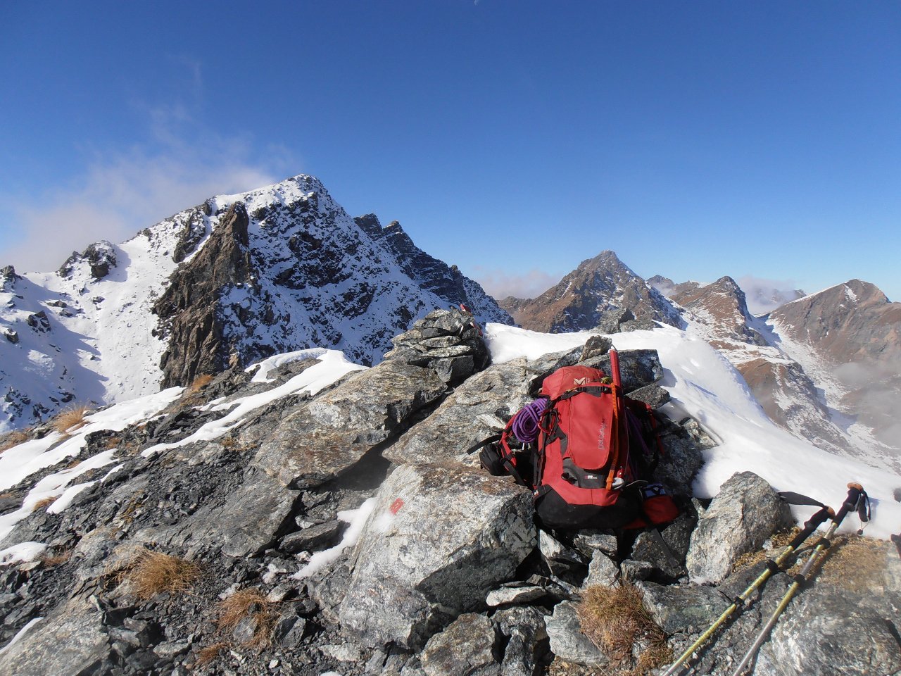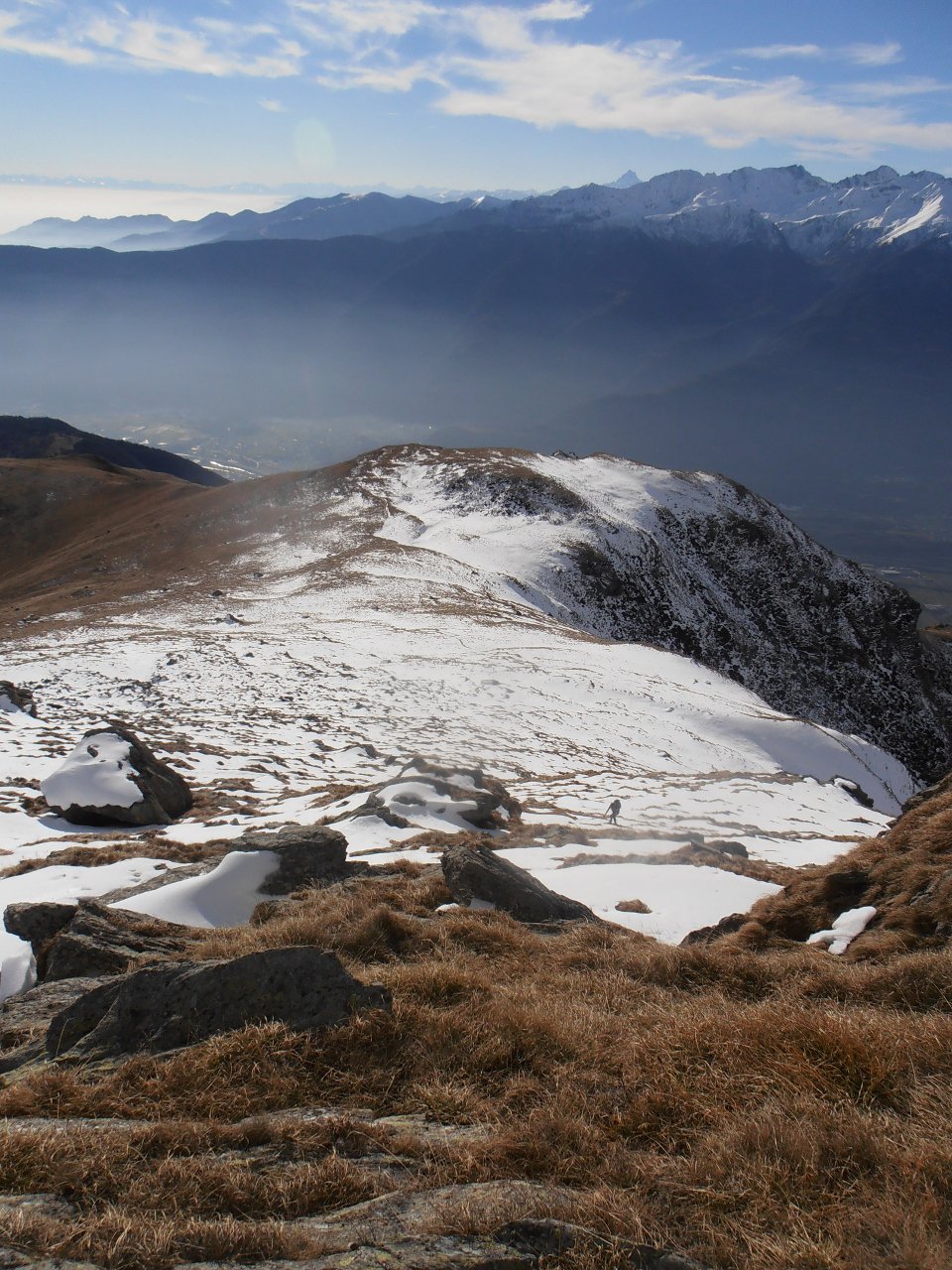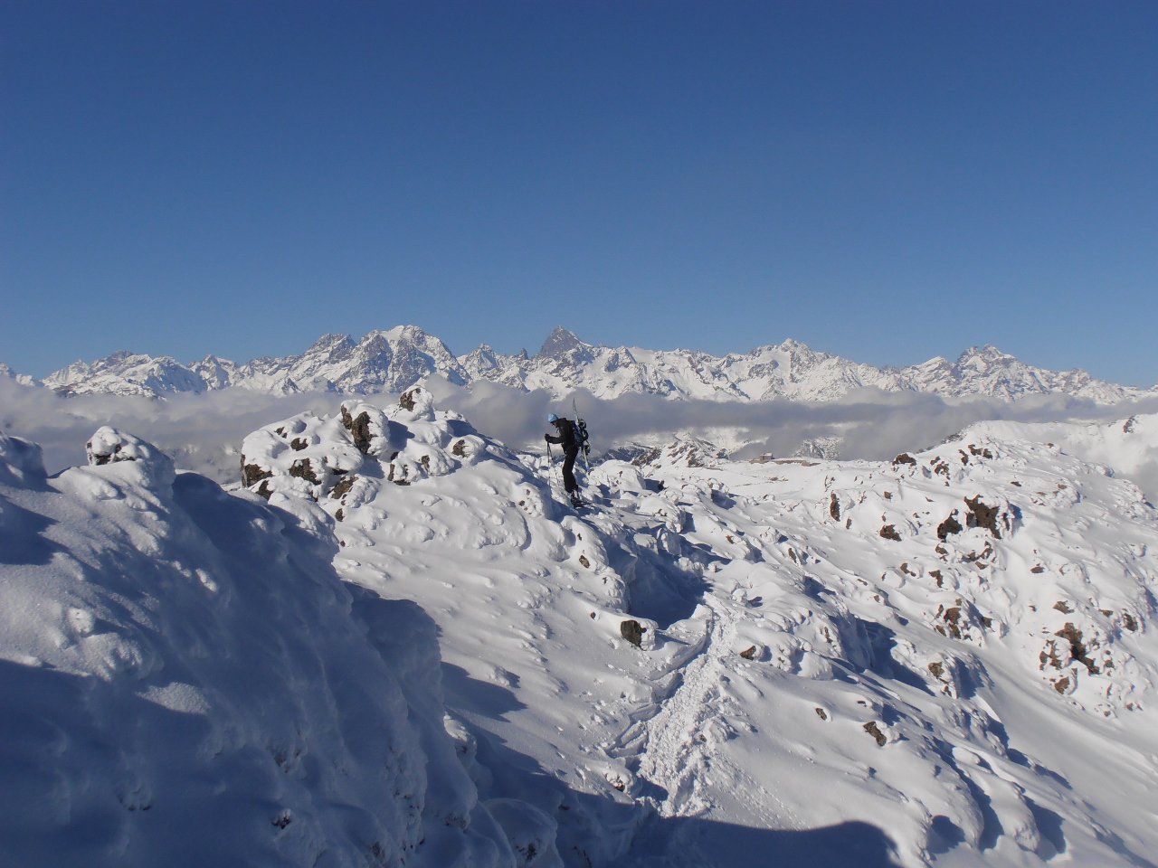 | tini | 01 - in cima | tini | 02 - la cima da raggiungere lassù | tini | 03 - cresta NE completamente priva di neve, presente invecce sulla parete N | tini | 04 - versanti scoscesi da attraversare | tini | 05 - salendo al Col du Salvé | tini | 06 - primi passaggi lungo la cresta NE | tini | 07 - cenge esposte | tini | 08 - anticima dalla cima | tini | 09 - arrivo in cima | tini | 10 - passaggi esposti in discesa | tini | 11 - in discesa verso il Colle Vessona