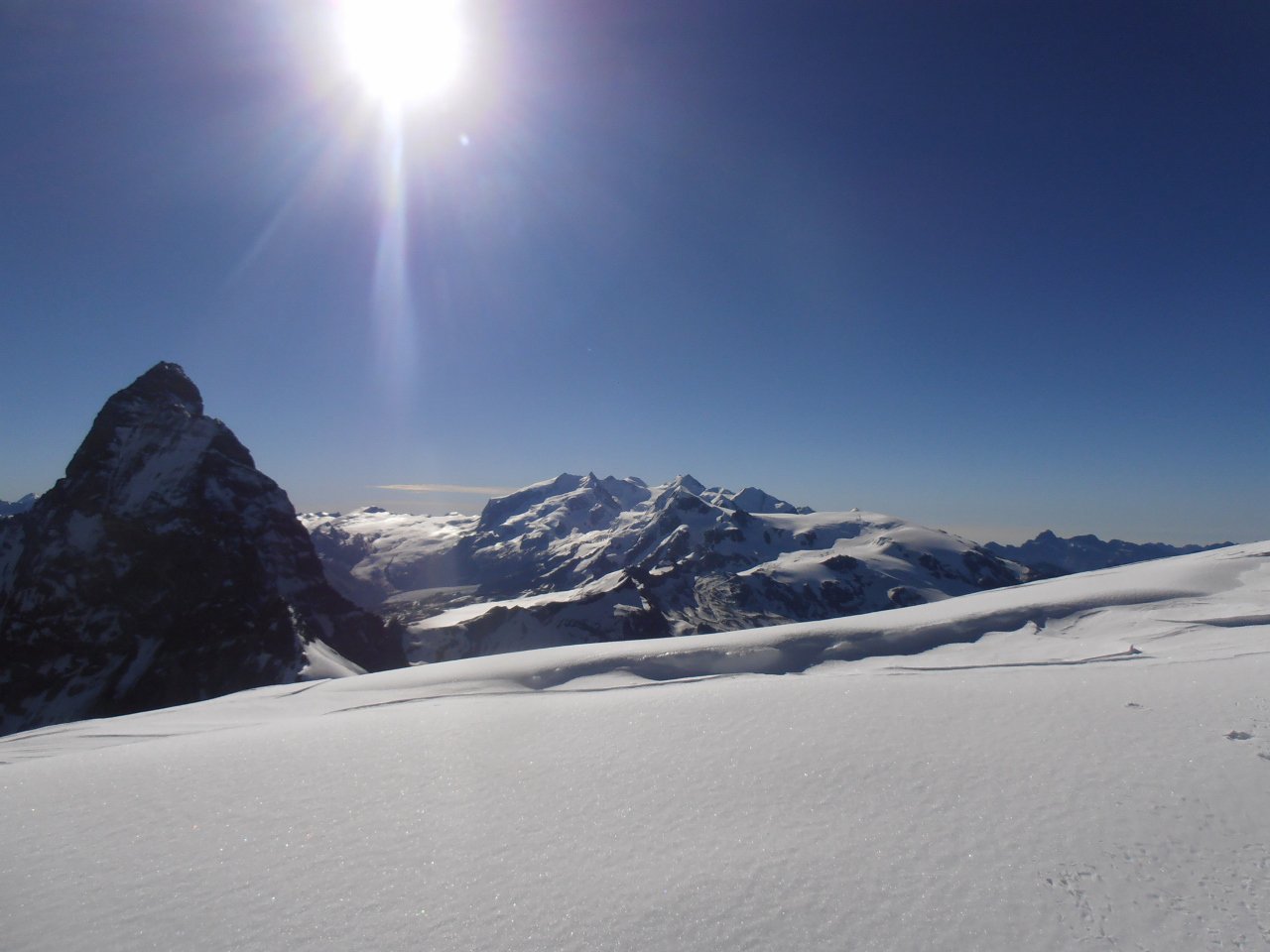 | tini | 01 - Dent d'Herens vista dalla spalla scialpinistica | tini | 02 - in discesa tra i seracchi facendo il semigiro a sud, più facile della via diretta, a centro foto | tini | 03 - in discesa, bivacco Perelli e Punta Margherita | tini | 04 - partenza da Place Moulin, la cima è l'ultima in fondo alla valle | tini | 05 - arrivo al rifugio Aosta | tini | 06 - alba sul ghiacciaio | tini | 07 - sotto le seraccate a metà percorso | tini | 08 - il plateau finale, quasi in cima | tini | 09 - dalla spalla vista su Cervino e Monte Rosa | tini | 10 - vista sull'intera Valpelline dal ghiacciaio delle Grandes Murailles | tini | 11 - la Dent d'Herens