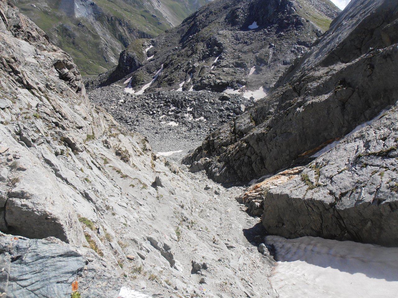 | tini | 01 - nel Couloir el Porco | tini | 02 - rifugio Giacoletti e Punta Venezia alle spalle | tini | 04 - ultimo innocuo nevaio all'inizio del Couloir del ordo | tini | 05 - Monviso | tini | 06 - nel Couloir del Porco