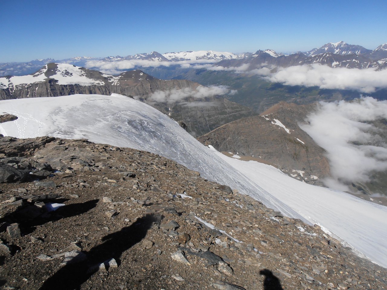 | tini | 06 - iniziano i blocchi grossi e le balze rocciose | tini | 07 - si è già dentro al canale | tini | 08 - confusione e rocce scivolose | tini | 09 - il Passo Clopaca ormai lontano, se cal ala nebbia sarà dura ritrovarlo | tini | 10 - più in alto | tini | 11 - prime chiazze di neve vecchia, sul versante sud | tini | 12 - difficile l'accesso al colle che separa Niblè e Ferrand | tini | 13 - questo canalino lungo la cresta Ovest è meno esposto. ma non banale | tini | 15 - discesa sul Glacier du Ferrand | tini | seguire la linea D per la via | tini | 01 - discesa lungo la cresta Ovest | tini | 02 - inizio cresta e salti di roccia a Nord-Est | tini | 03 - inizio cresta di salita a Nord-Est | tini | 04 - dalla Cima il versante Nord | tini | 05 - prima parte del versante nord, prima della cresta