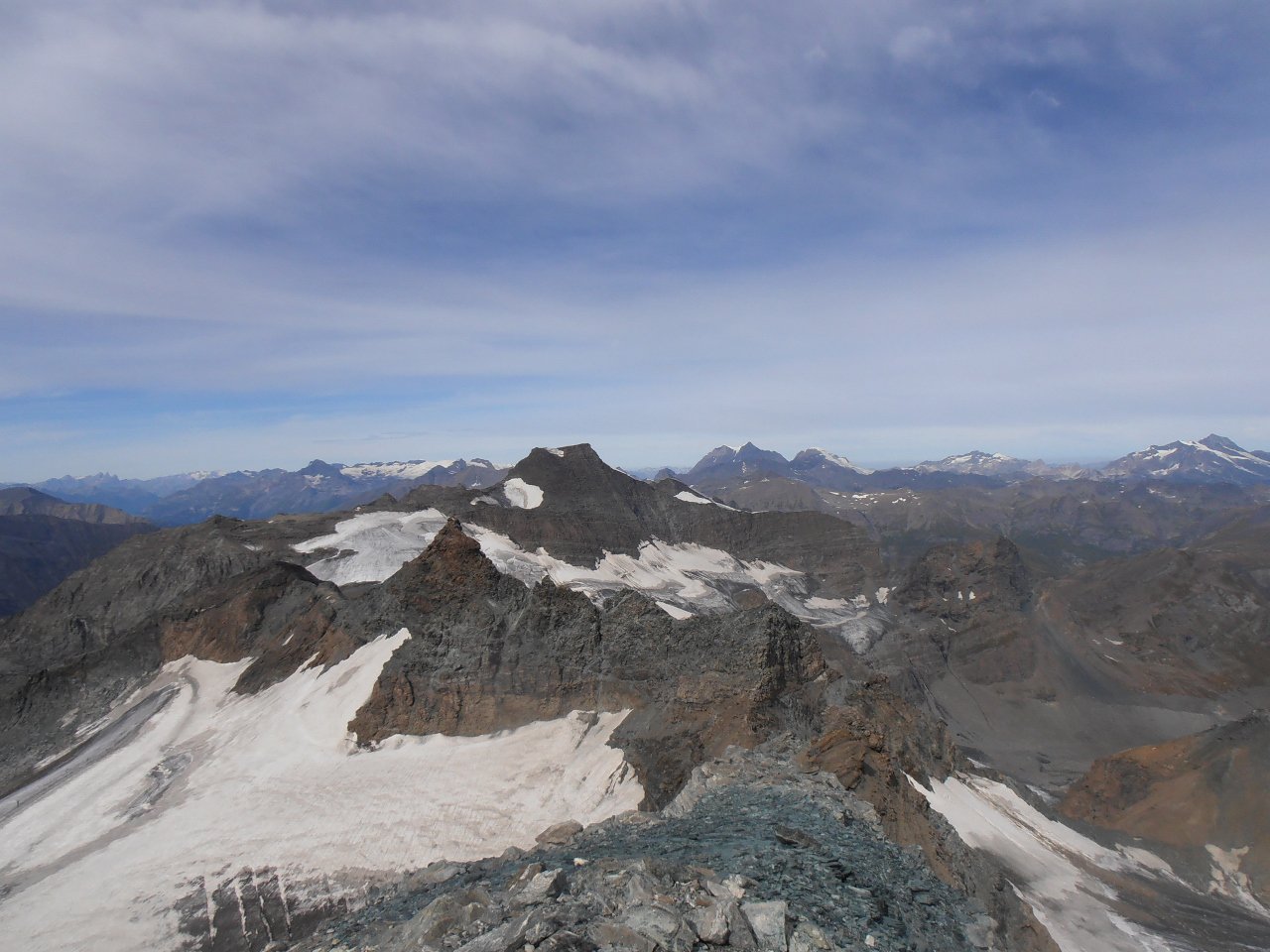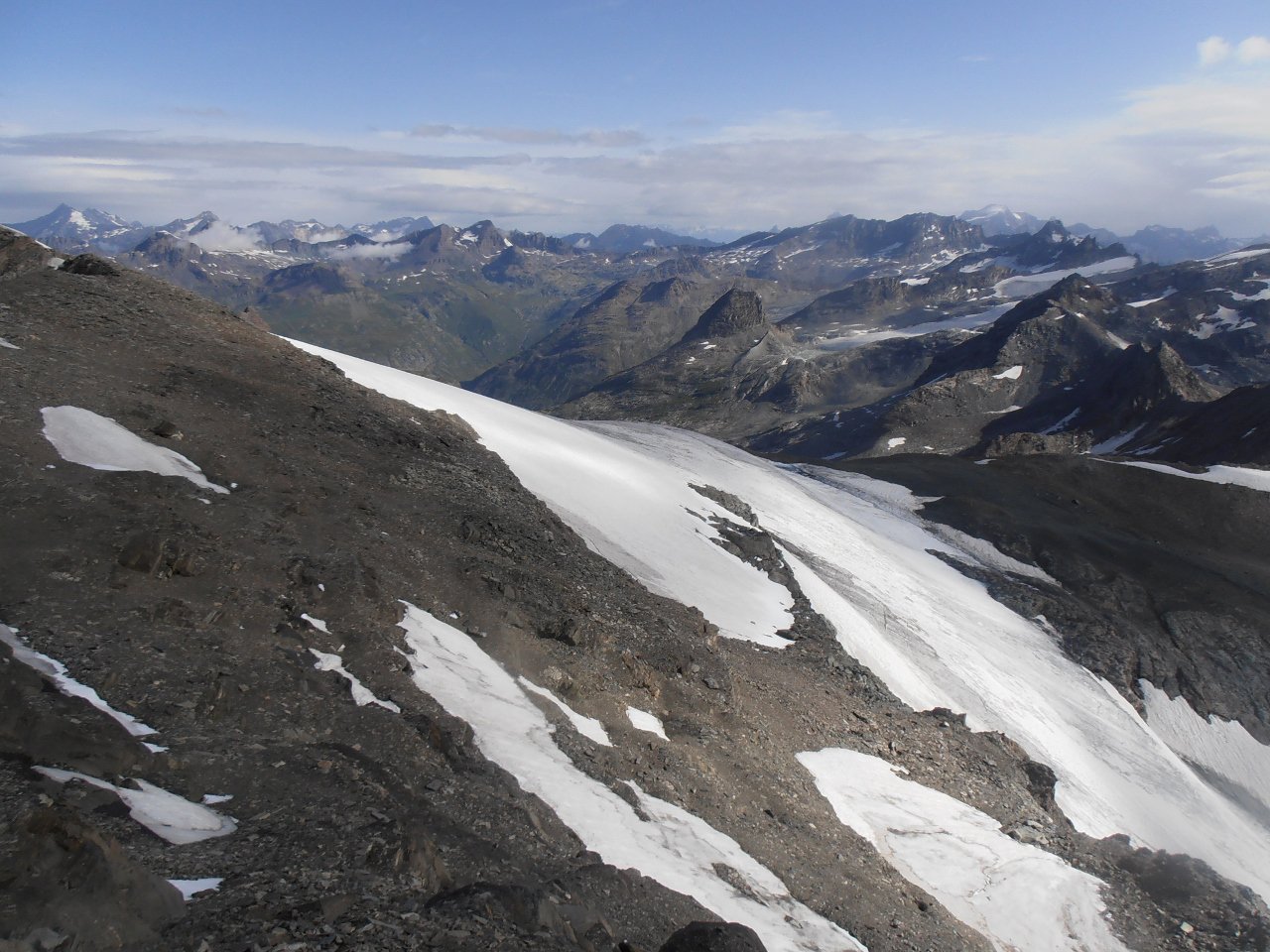 | tini | 01 - la Levanna Centrale vista dalla cima della Levanna Occindentale | tini | 02 - nevai residui sopra il Col des Pariotes | tini | 03 - la cresta finale ampia e con tracce di sentiero sul versante meridionale | tini | 04 - sopra il rifugio del Carro molte tracce, difficile individuare la migliore in controluce | tini | 05 - le pietraie sopra il Col des Pariotes | tini | 06 - parte alta del nevaio residuo | tini | 07 - panorama verso Les Sources de l'Arc | tini | 08 - parte alta del sentiero diretto verso les Sources de l'Arc