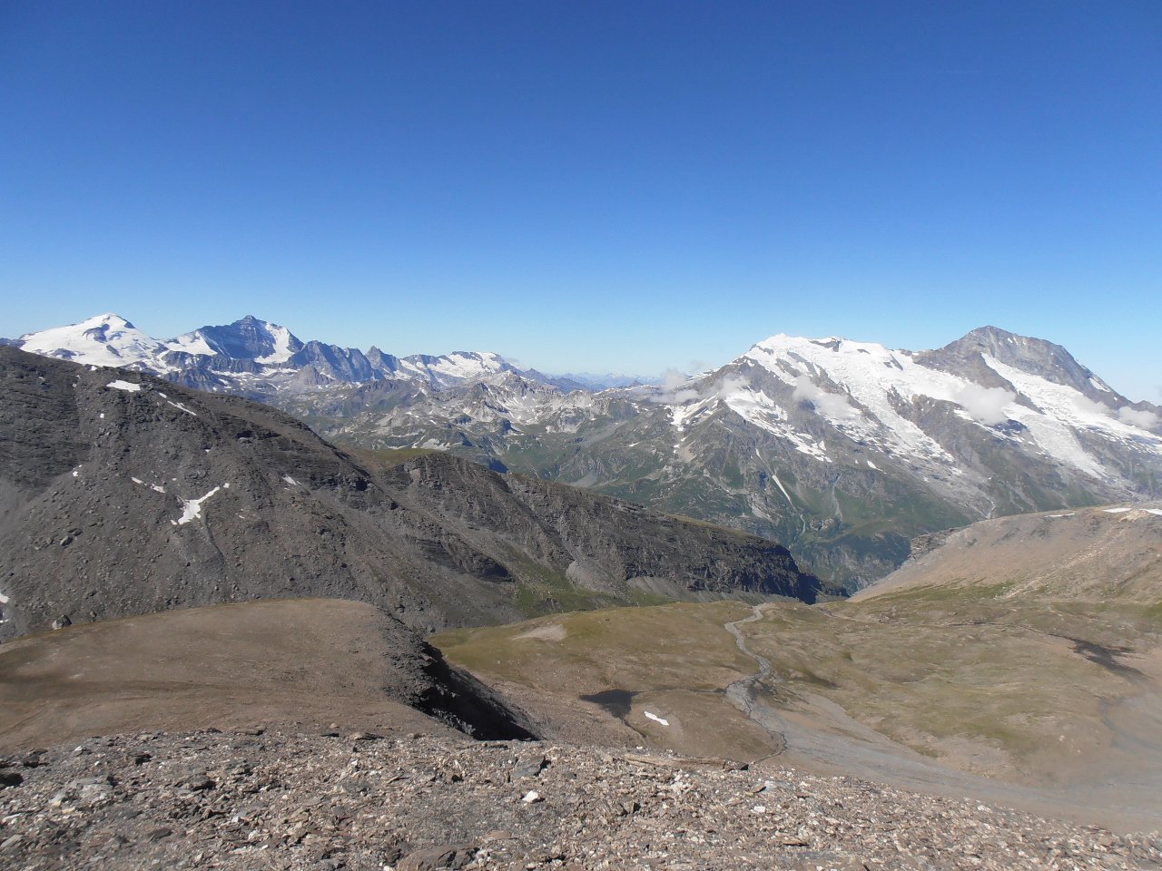 | tini | 09 - il versante ovest della Ciamarella, la traccia sopra al ghiacciaio | tini | 10 - guado del torrente al Pian Gias, gonfio al rientro | tini | Vista dal Klein Matternhorn | tini | sul Colle del Breithorn | tini | inizio della rampa finale | tini | La cresta della Ferrata con Gran Paradiso e Grivola sullo sfondo | tini | Scendendo la cresta N di punt Valletta, vista verso l'Emilius | tini | passaggio lungo il sentiero attrezzato | tini | Punta Valletta, vista dalla cresta N | tini | ampi panorami verso la Conca di Pila ed il massiccio del Monte Bianco sullo sfondo | tini | | tini | | tini | | tini | | tini |
