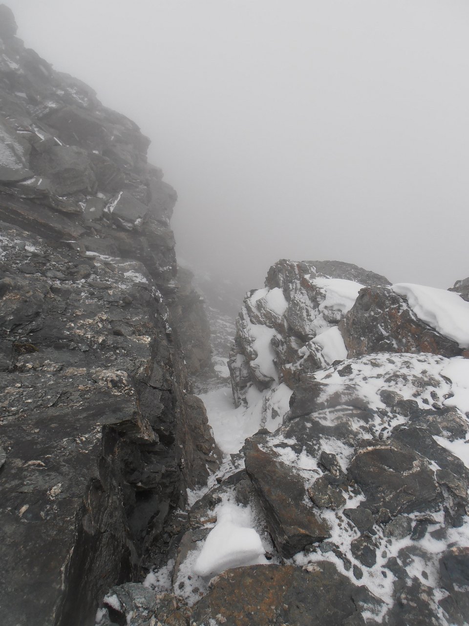 | tini | 01 - canalino finale in misto | tini | 02 - Punta Ferrand sotto la nevicata, da Nord | tini | 03 - l'intaglio nel versante cui mirare | tini | 04 - dettaglio... dove bisogna salire | tini | 05- a metà dell'enorme pietraia | tini | 06 - iniziano i blocchi grossi e le balze rocciose | tini | 07 - si è già dentro al canale | tini | 08 - confusione e rocce scivolose | tini | 09 - il Passo Clopaca ormai lontano, se cal ala nebbia sarà dura ritrovarlo | tini | 10 - più in alto | tini | 11 - prime chiazze di neve vecchia, sul versante sud | tini | 12 - difficile l'accesso al colle che separa Niblè e Ferrand | tini | 13 - questo canalino lungo la cresta Ovest è meno esposto. ma non banale | tini | 15 - discesa sul Glacier du Ferrand