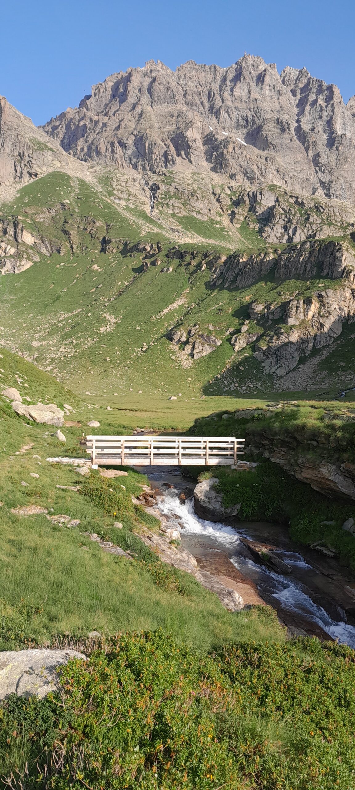 Tracciato completamente privo di neve, dove una volta bisognava guadare il torrente, adesso hanno messo un ponte in legno che facilita il passaggio