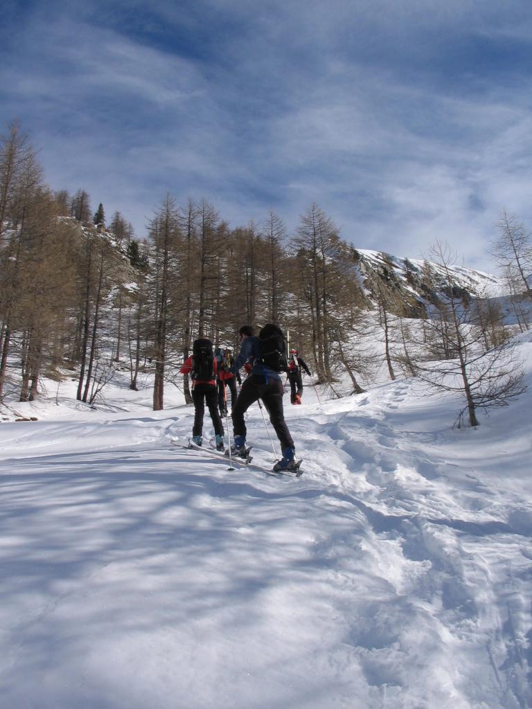 Saliti con le ciaspole, anche se non sono necessarie, giusto per fare un pò di allenamento in più.