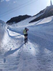 Partiti dal colle Piccolo San Bernardo, il versante verso Fourclaz si percorre sulla pista, fuori poca neve e prati. Siamo saliti fino alBelvedere. Discesa percorrendo la pista…