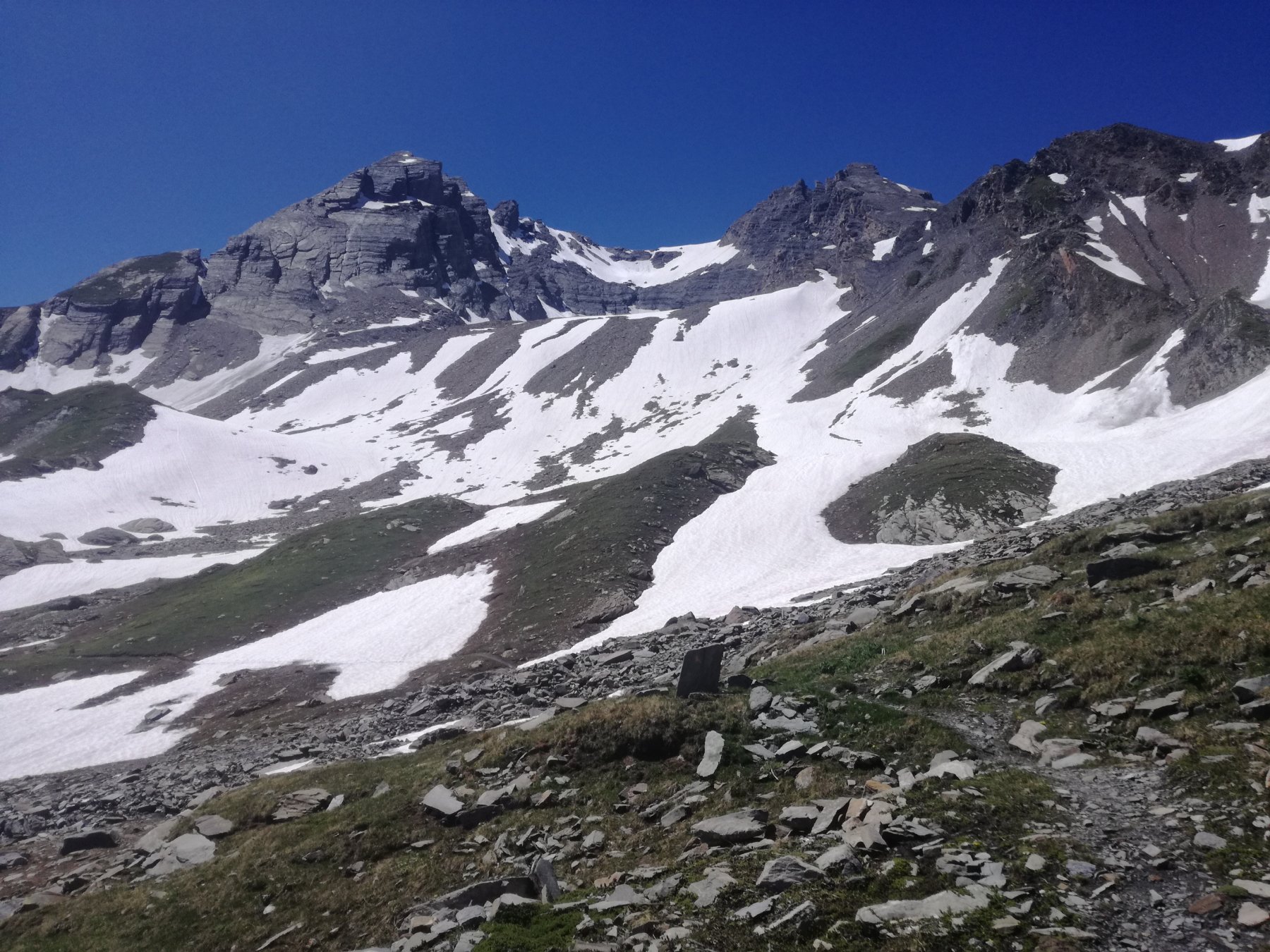 Gita lunghina in contesto solitario. Il vallone è stupendo. Al di là del caldo torrido, dopo il bivacco clima gradevole. La traccia per arrivare al colle…