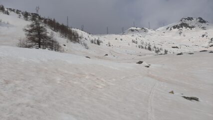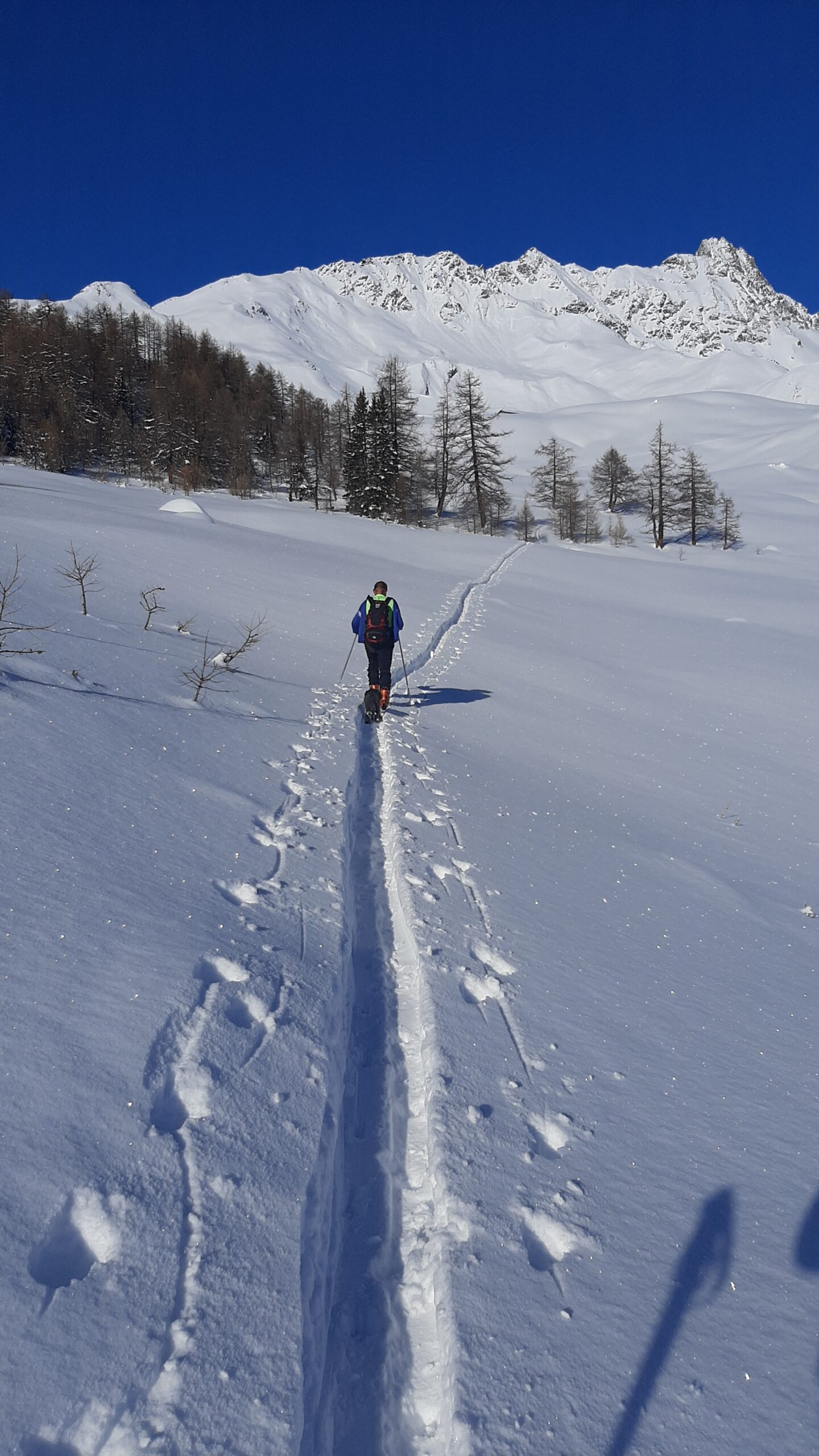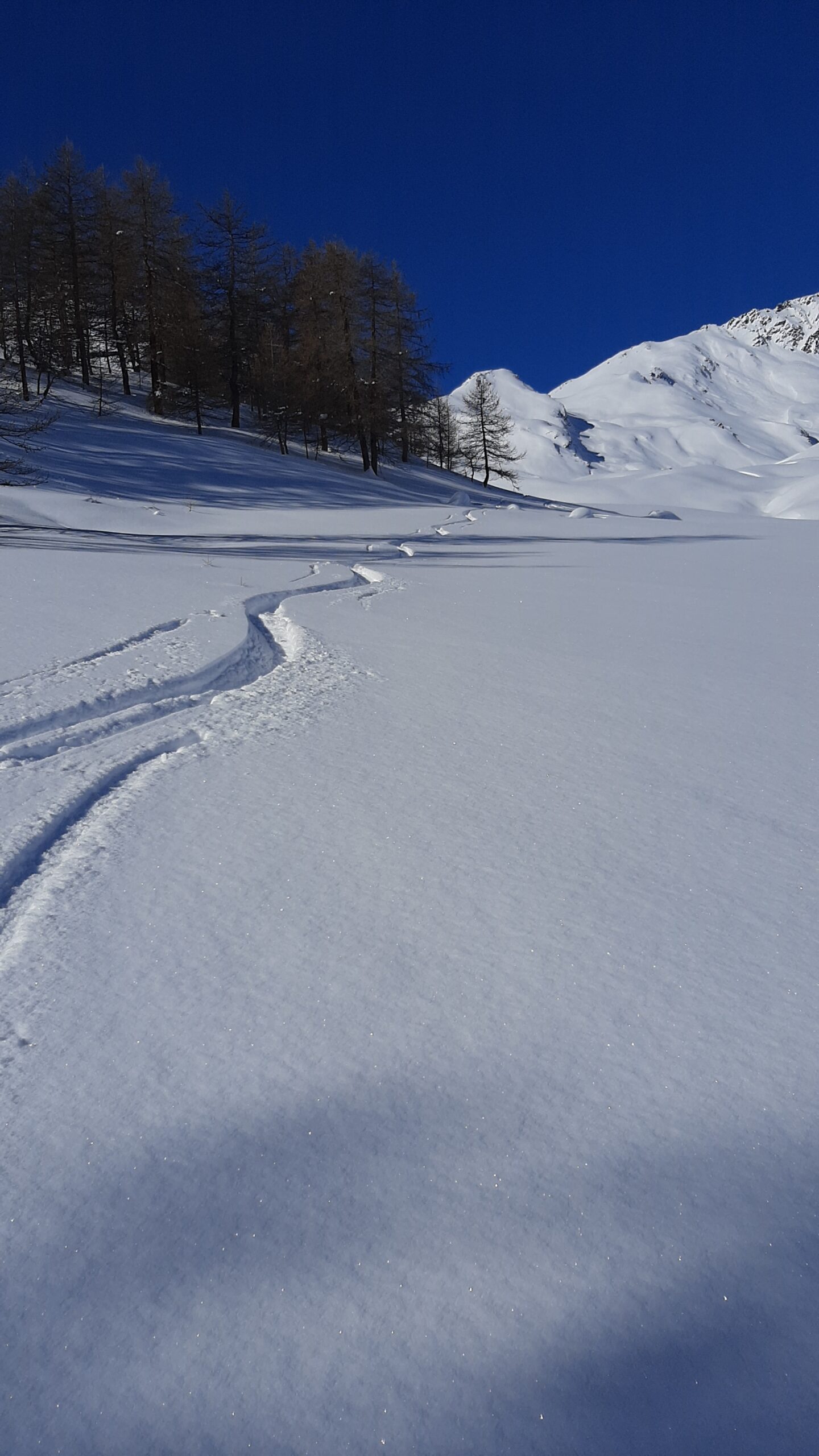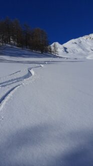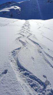 Oggi brezza fresca, in salita abbiamo utilizzato le piste, fuori 2 dita di polvere scivolosa su fondo duro irregolare oppure neve a tratti inconsistente, sfondosa,…
