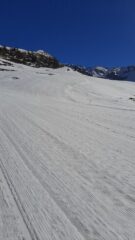 Saliti su neve lavorata dal caldo ma ottimamente portante, anche se irregolare nella parte iniziale. Discesa prima su bella neve trasformata al punto giusto (appena…