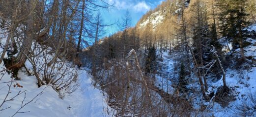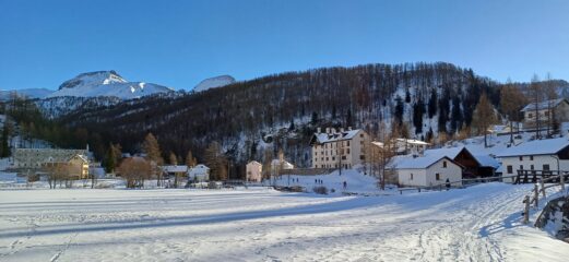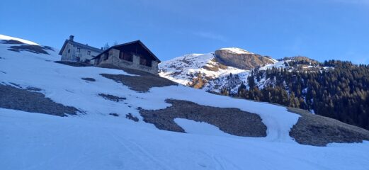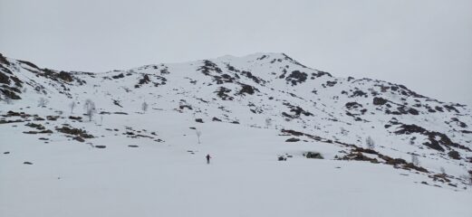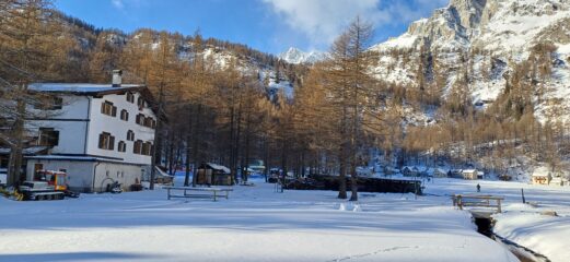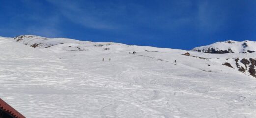 Neve al limite per salire per i primi 200 metri di dislivello, poi nessun problema. Neve con buon rigelo e si sale bene senza rampanti…