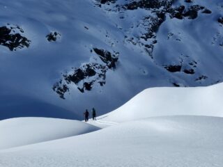 Ambiente fantastico, neve anche. Dal bivacco in su non era ancora salito nessuno, ma anche sotto non è molto battuto. Si trovano facilmente pendii vergini,…