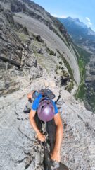Tutto come da relazioni precedenti. Bella via in ambiente stupendo e roccia complessivamente buona (un po’ unta su qualche passaggio) Scalata mai impegnativa, solo qualche passaggio delicato…