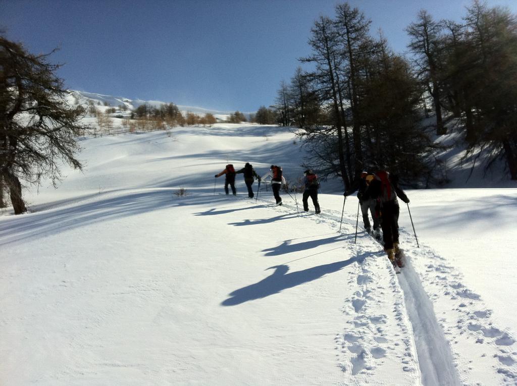 Circa 15 cm. di fresca alla partenza, in alto una trentina. La cresta finale è stata spazzata dal vento. In discesa (in alto) occorre fare attenzione…