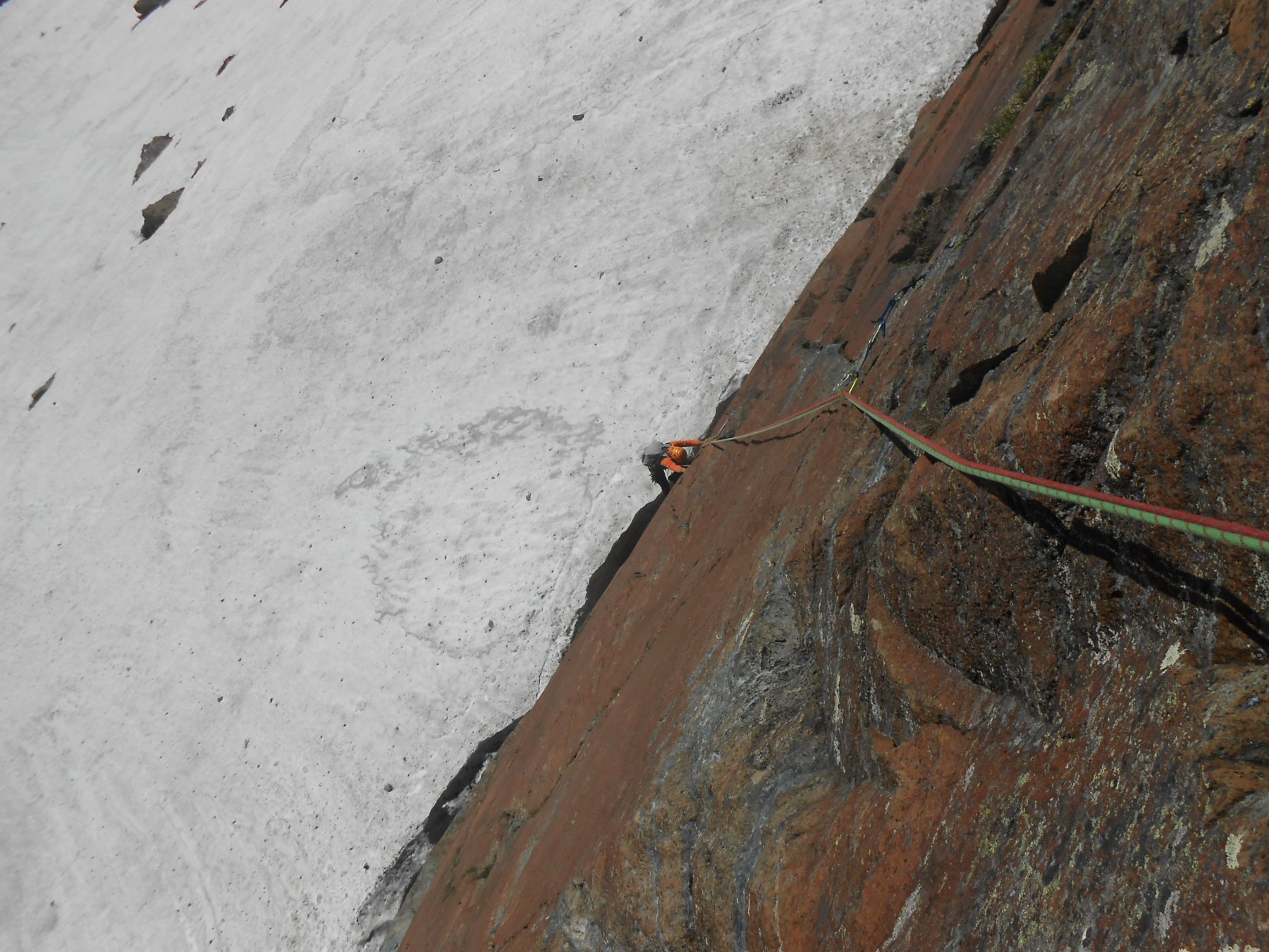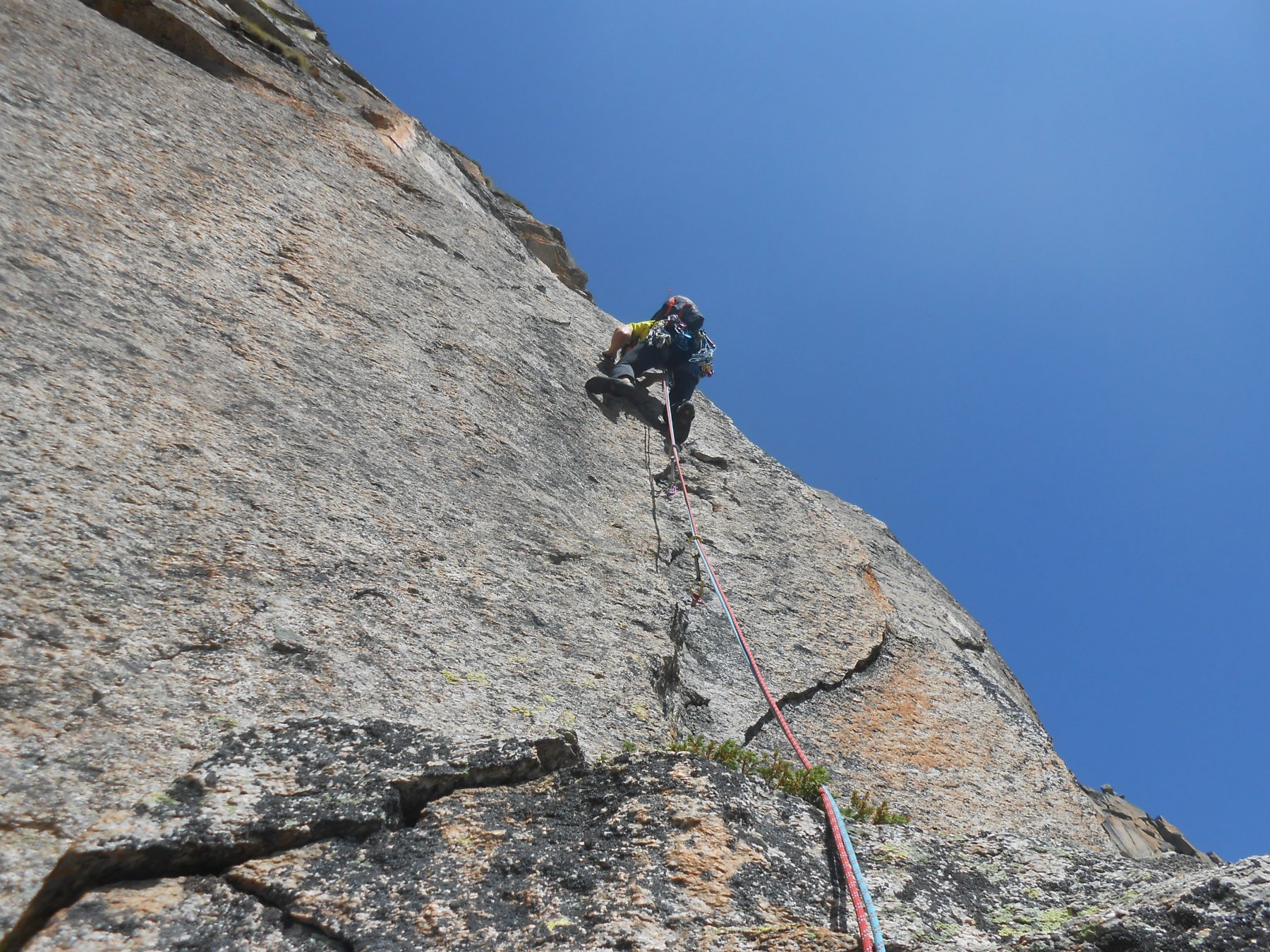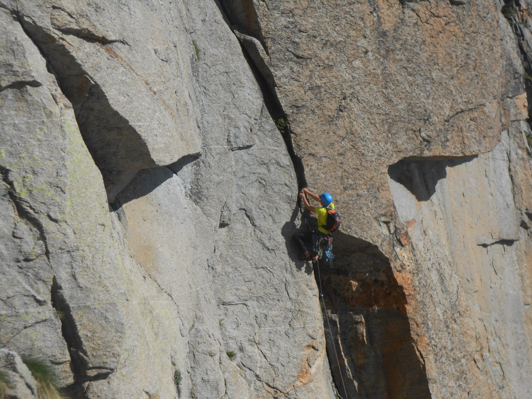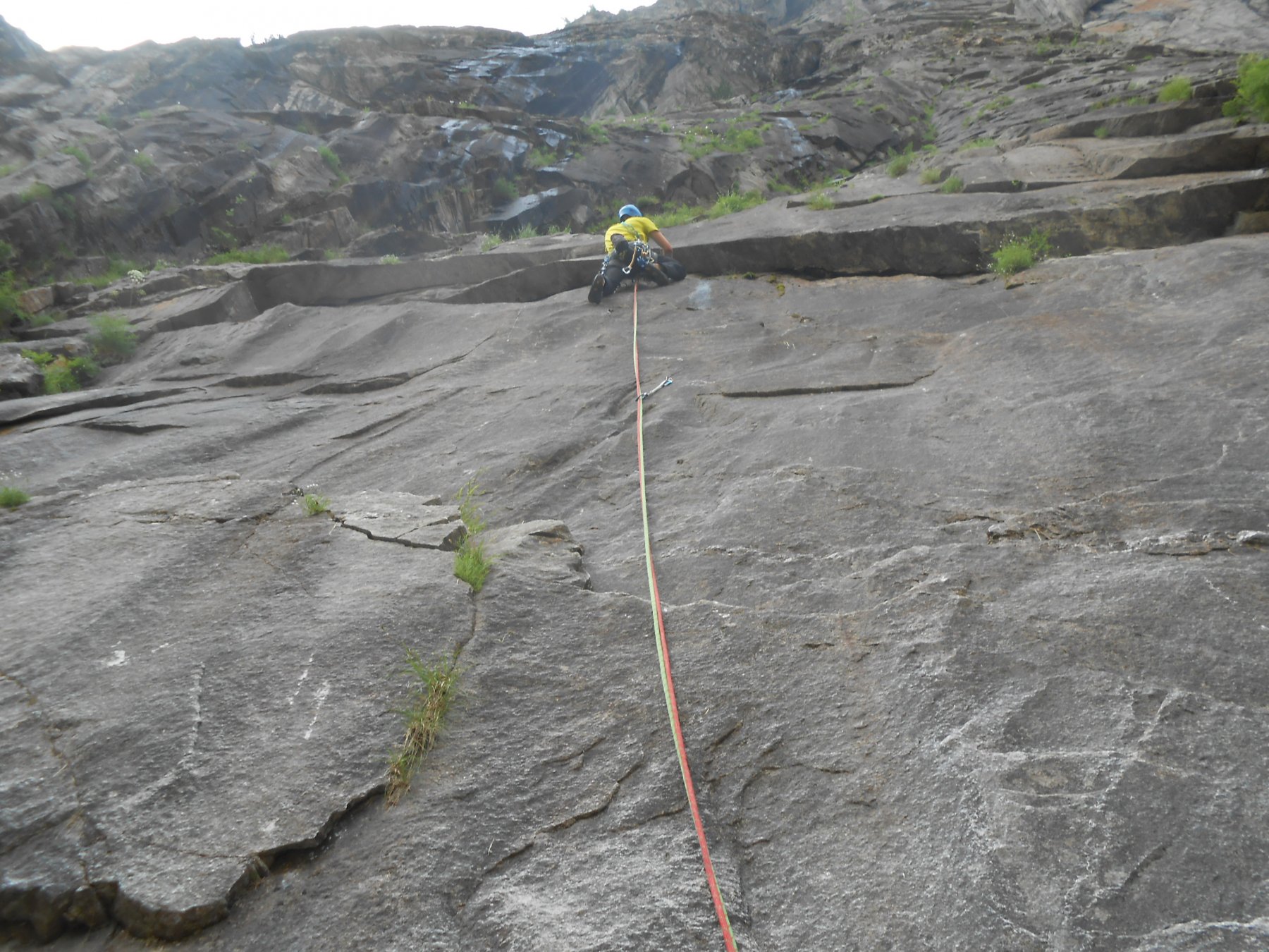 Via atletica con chiodatura distanziata utili friends dai micro fino al 2 BD, le prime due lunghezze di 6b in placca fessurata sono molto belle…