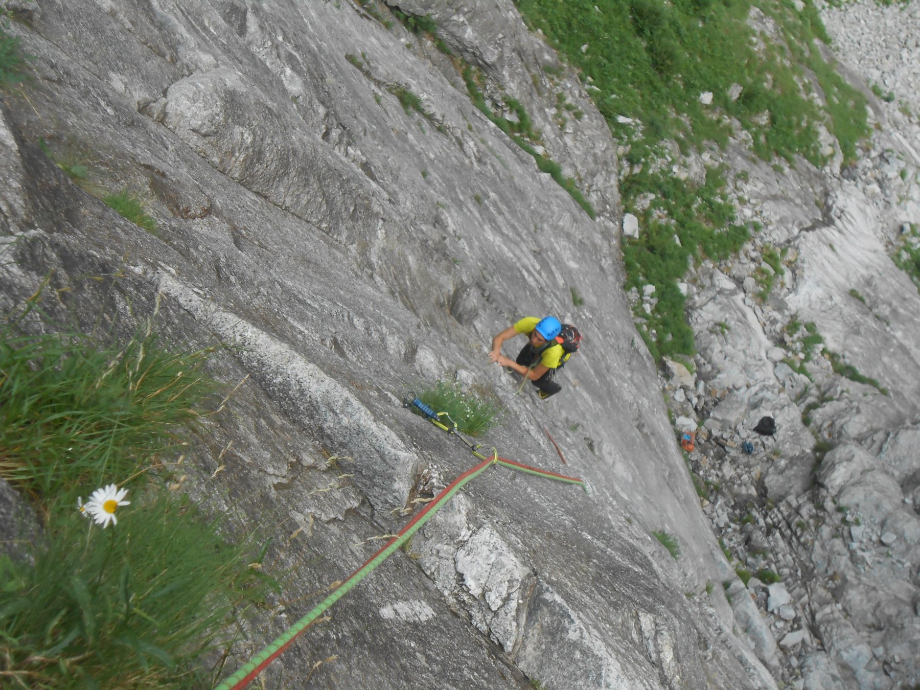 Via bella ed impegnativa da tutti i punti di vista data la quasi totale mancanza di chiodi (lasciato un chiodo con cordino alla S1 comunque…