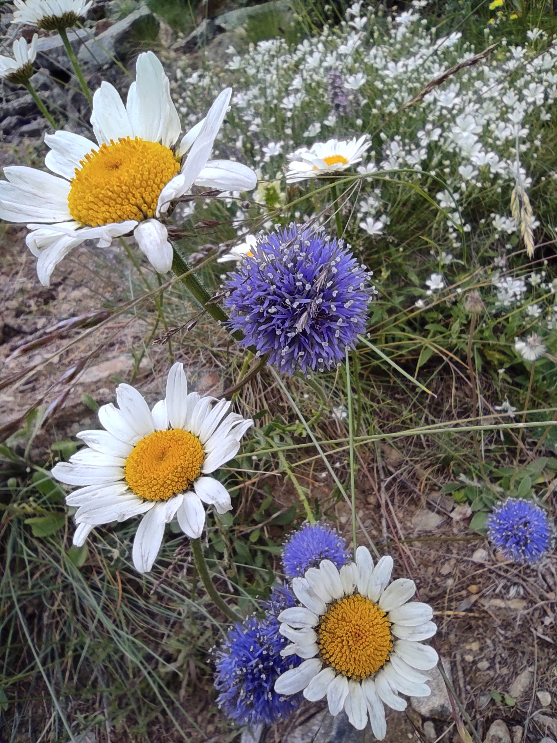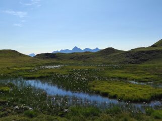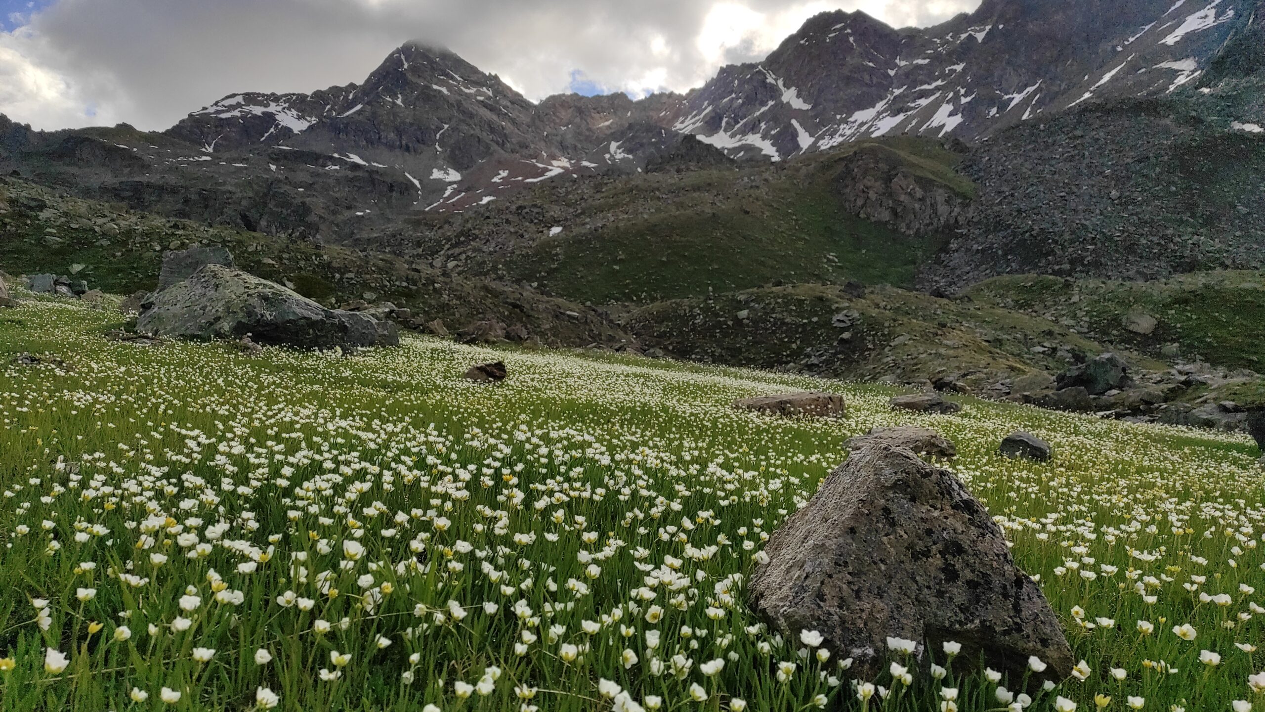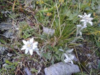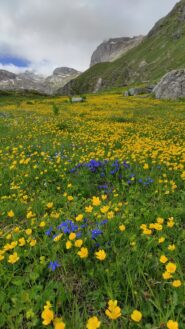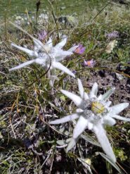 Alcuni nevai nelle vicinanze del bivacco e per raggiungere il lago......ma che non danno alcun problema......bella fioritura dopo l'alpeggio Arpisson......