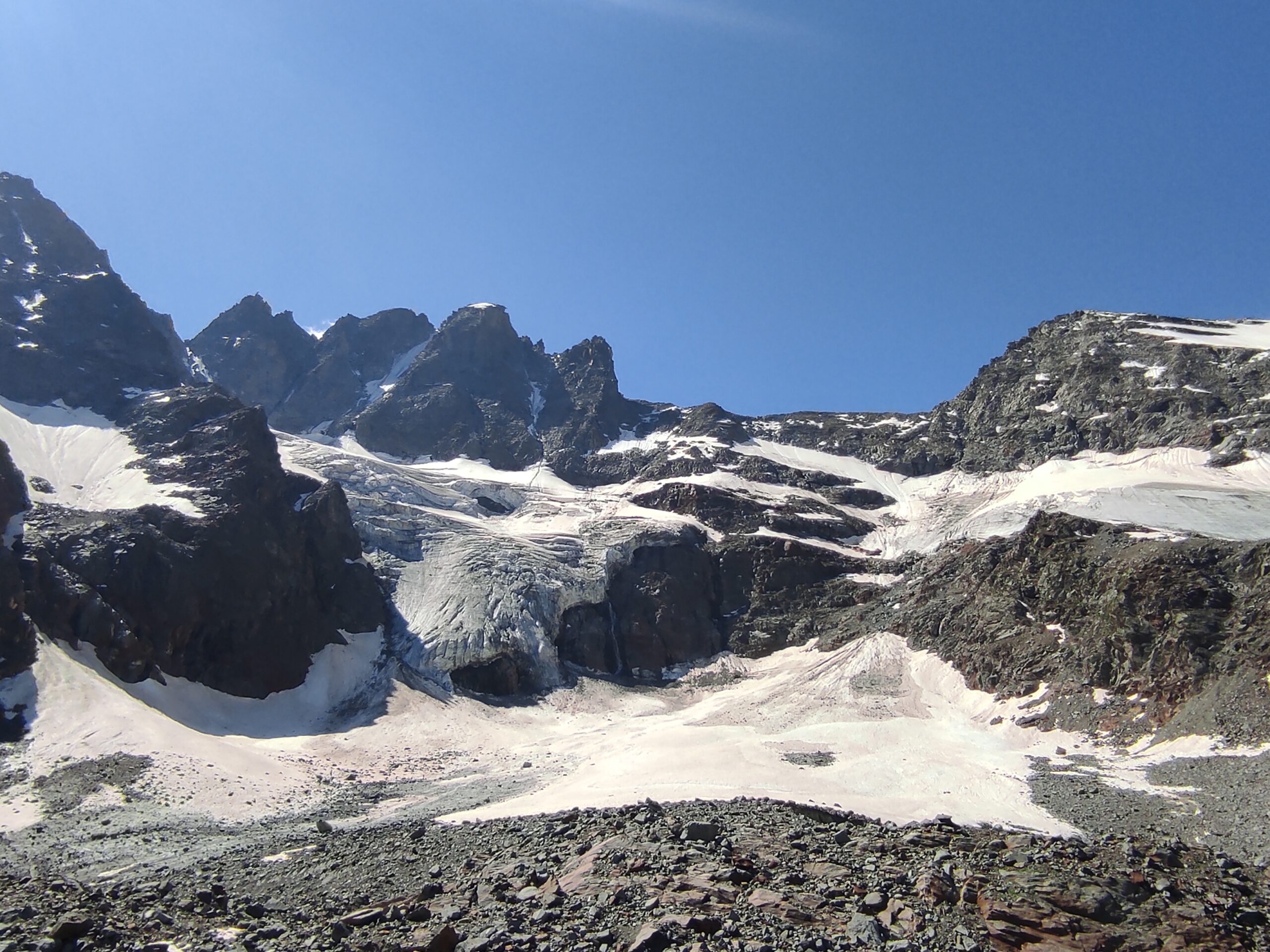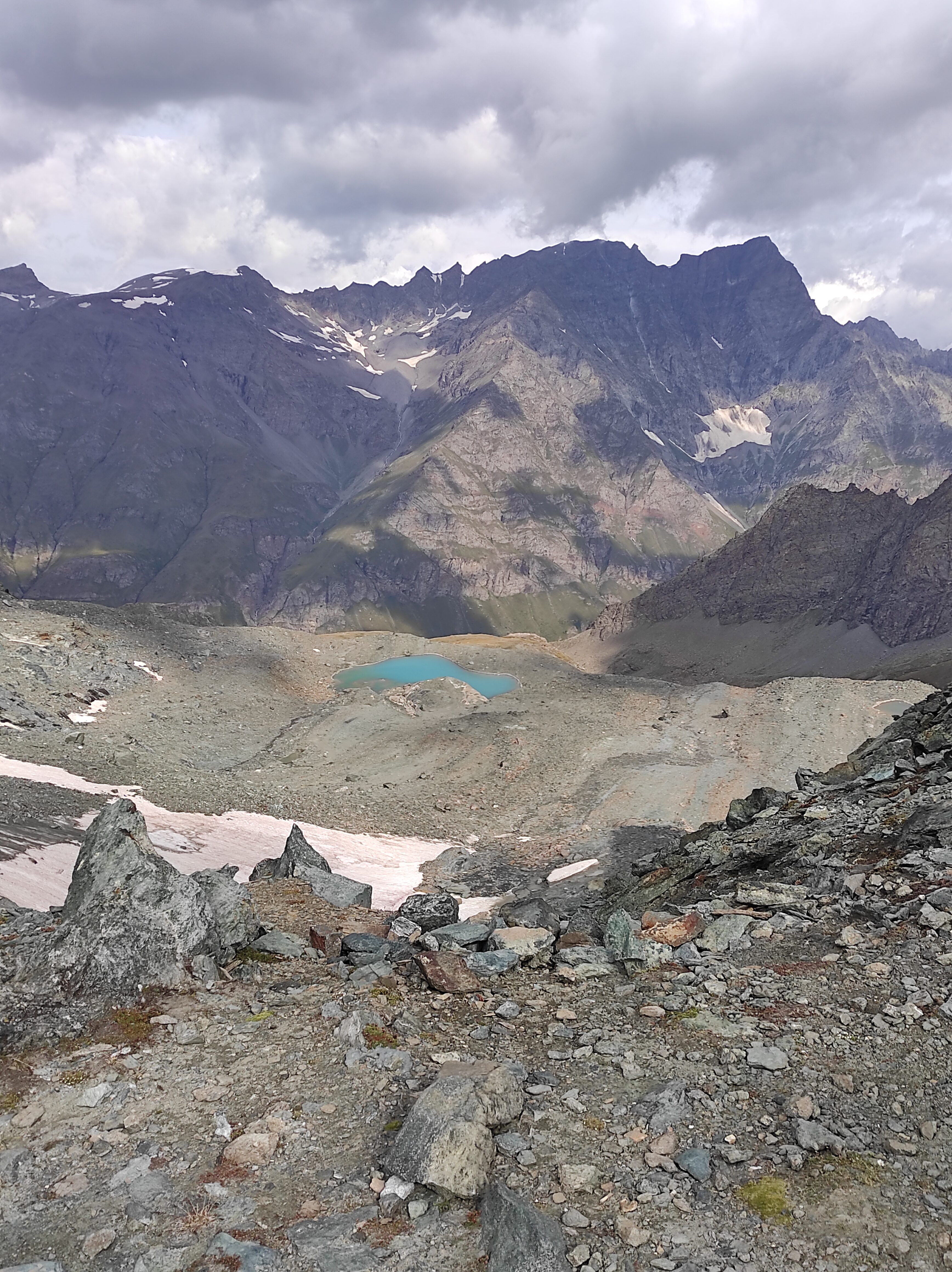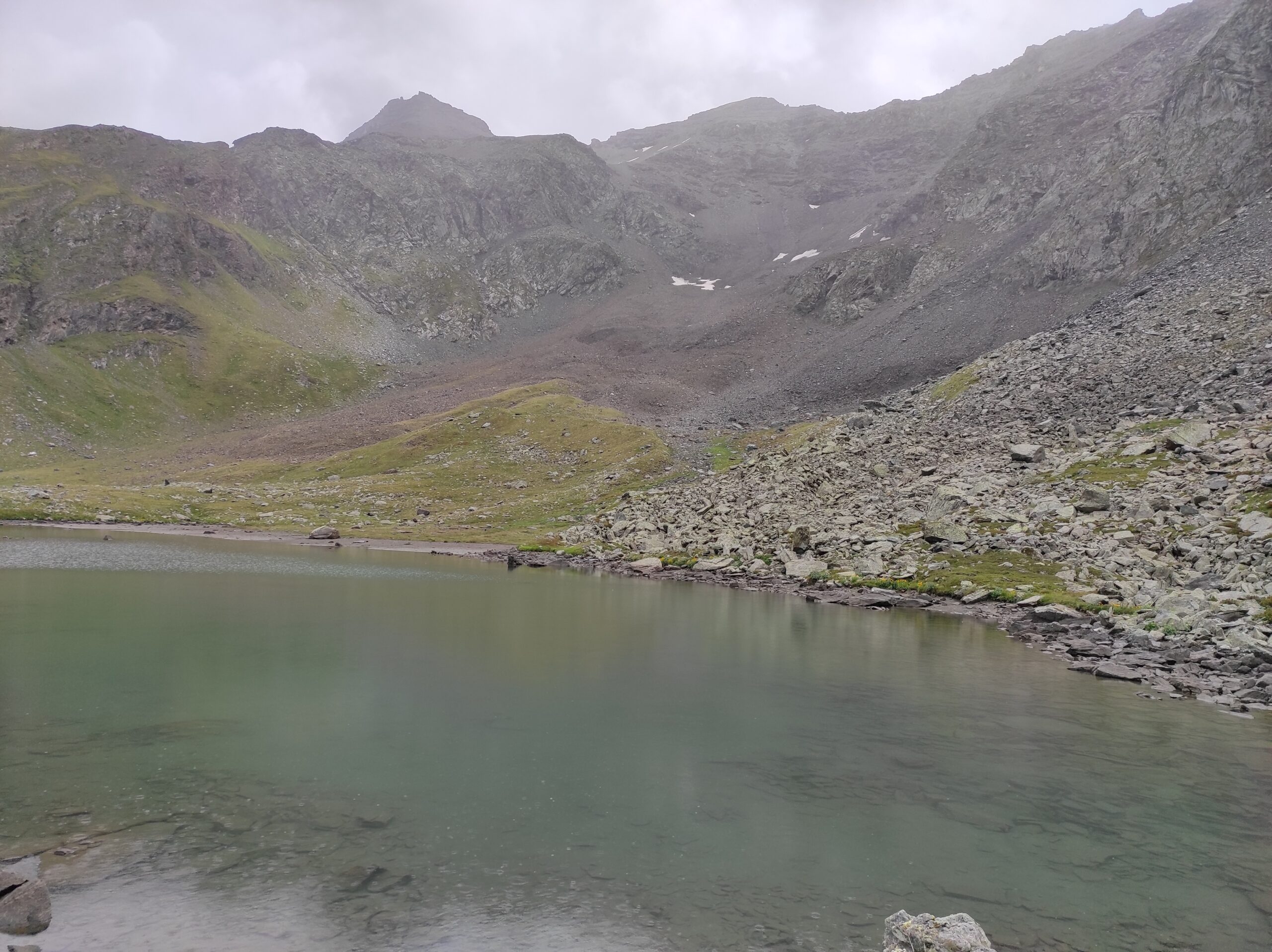 Fatto il giro inverso rispetto alla descrizione......trovato un nevaio prima del colletto.....e nella prima parte di discesa.......salito sulla morena fino al Lago.......