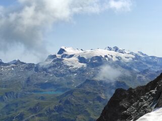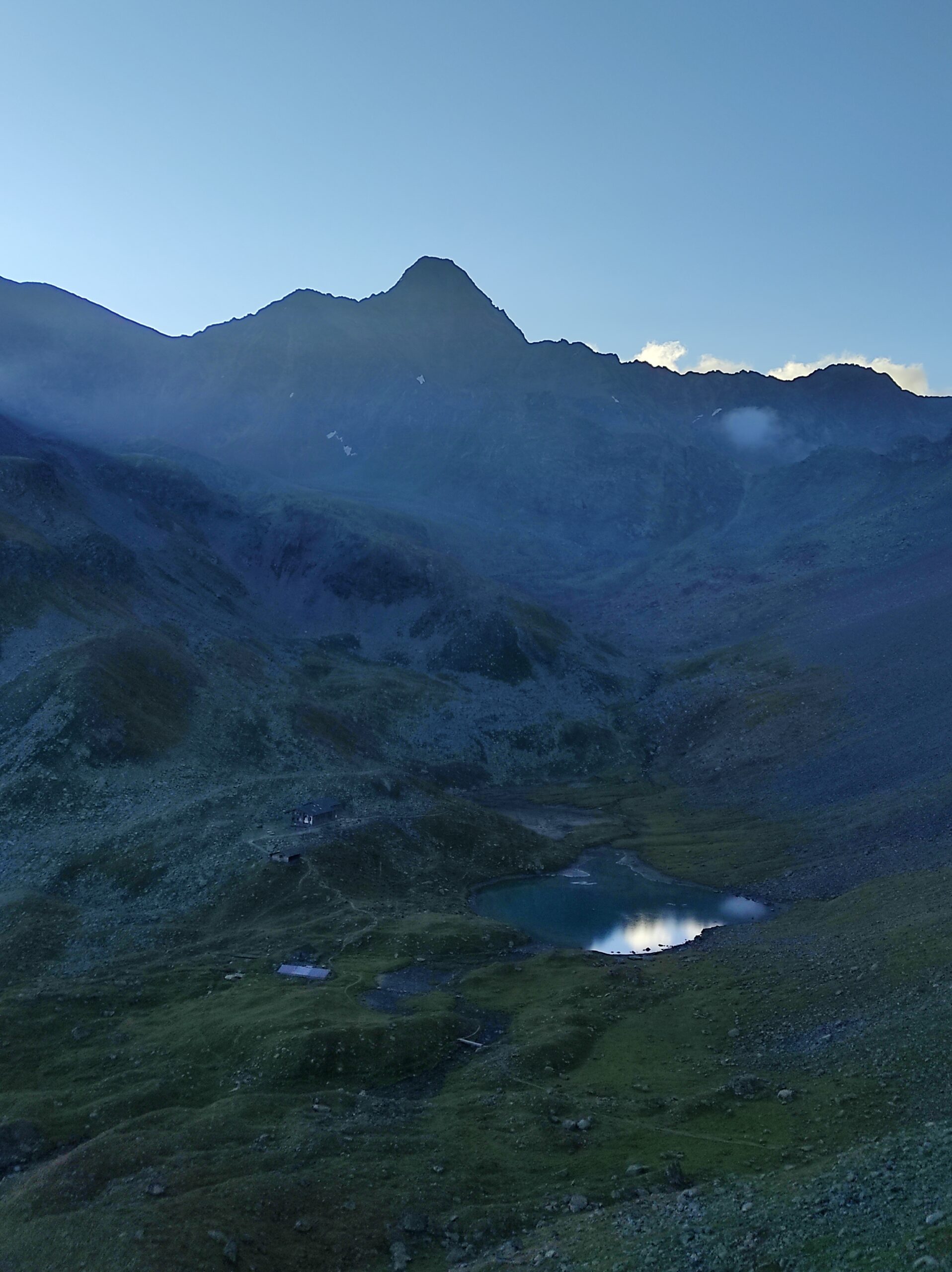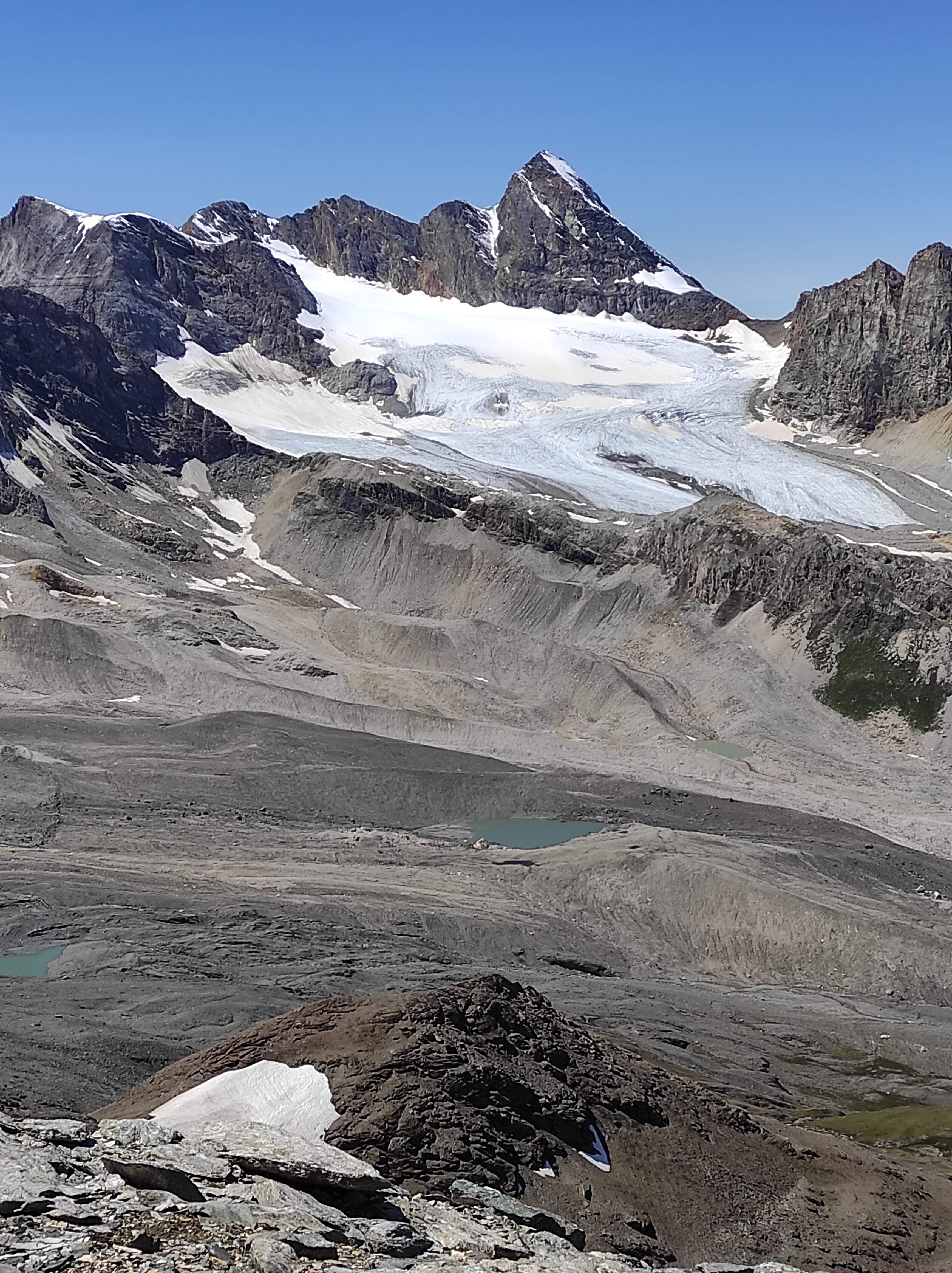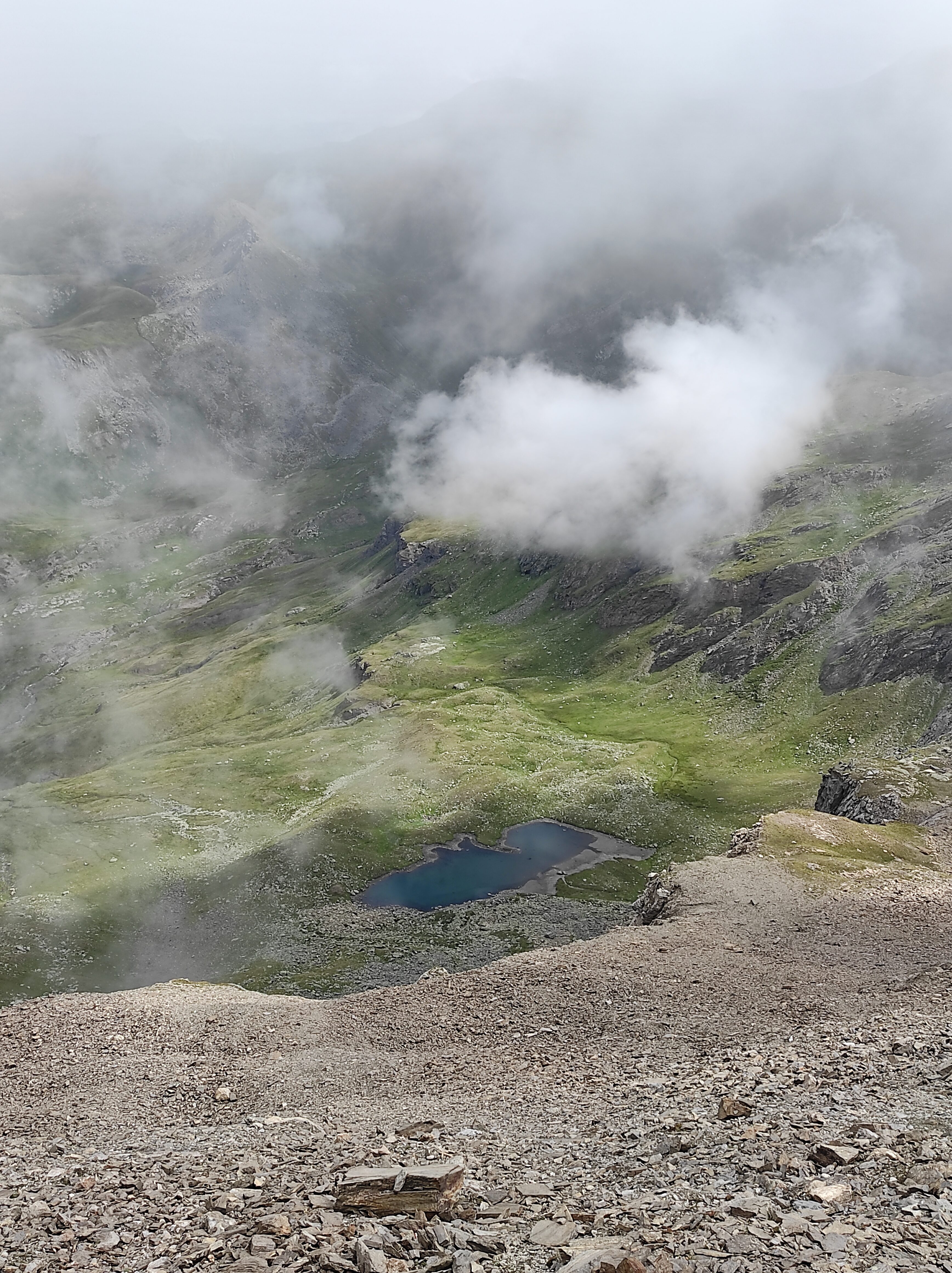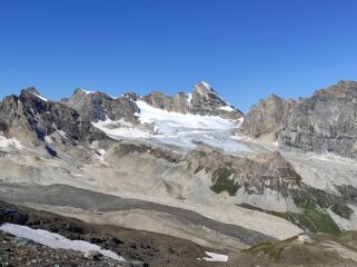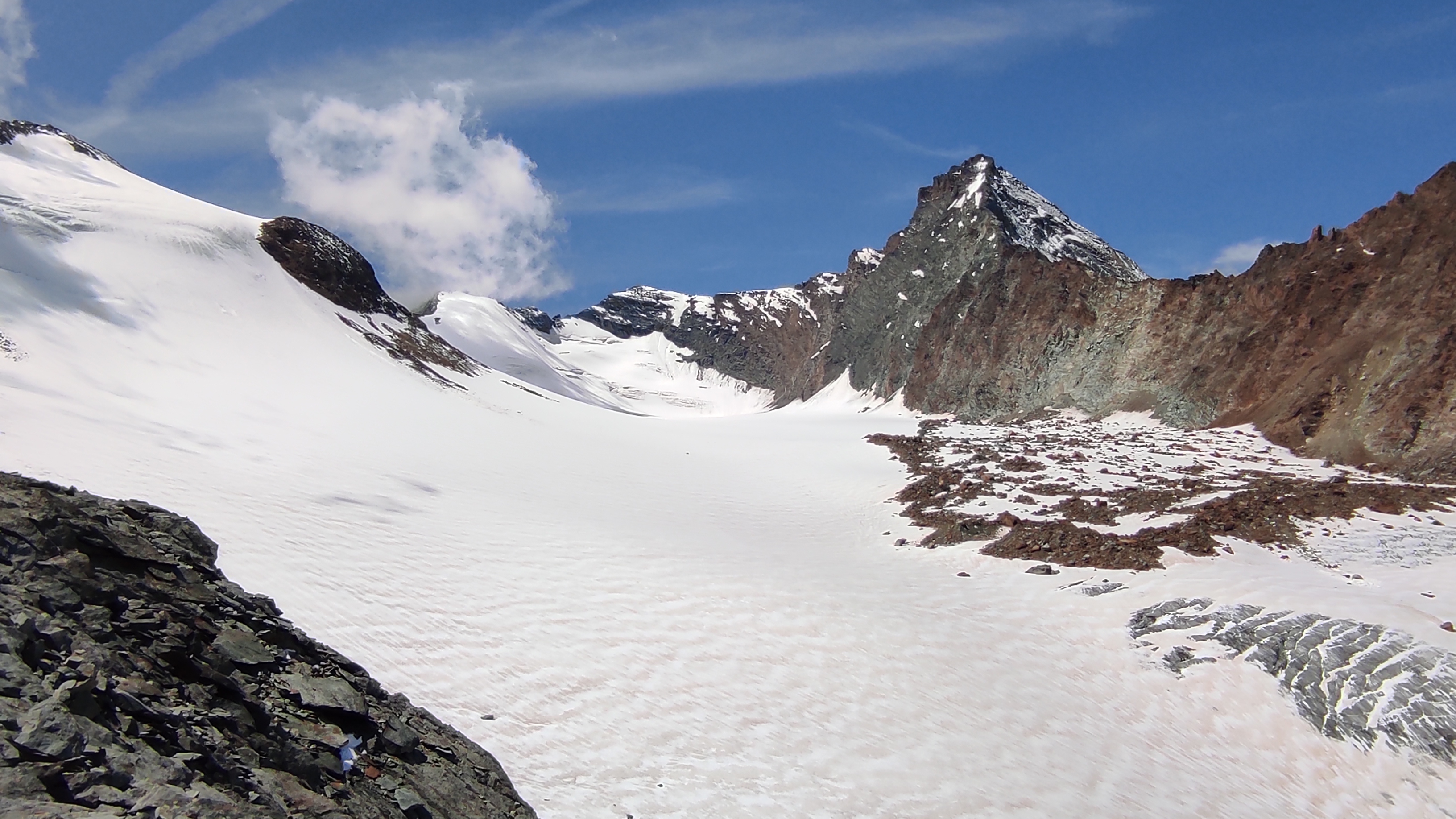 Fatto il giro inverso rispetto alla descrizione......trovato un nevaio prima del colletto.....e nella prima parte di discesa.......salito sulla morena fino al Lago.......