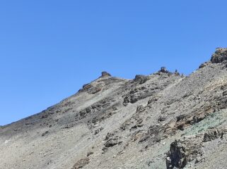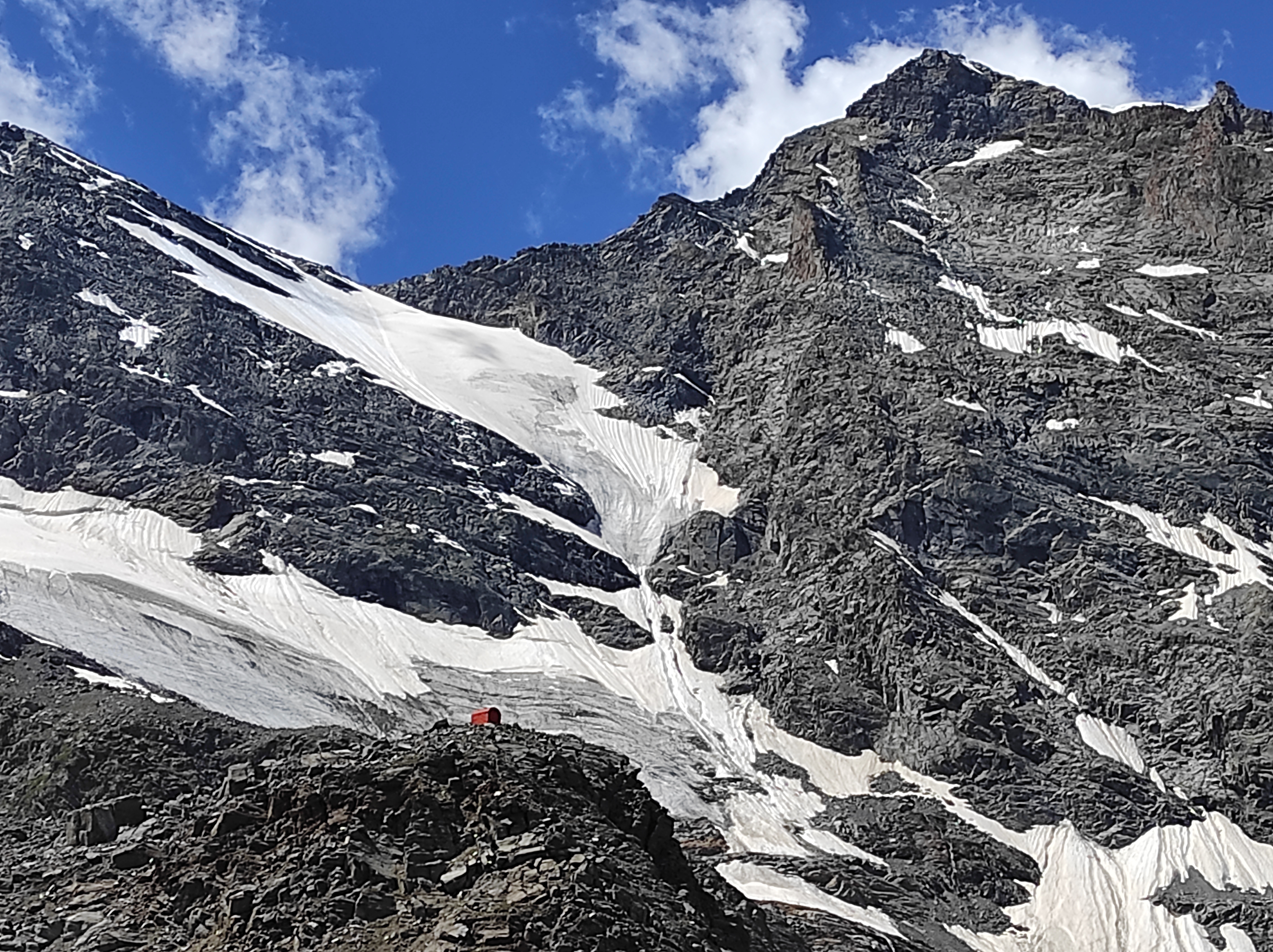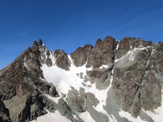 Partiti da Etirol.......piccolo nevaio sotto al bivacco....saliti a dx al primo gendarme della Becca Sale'.......