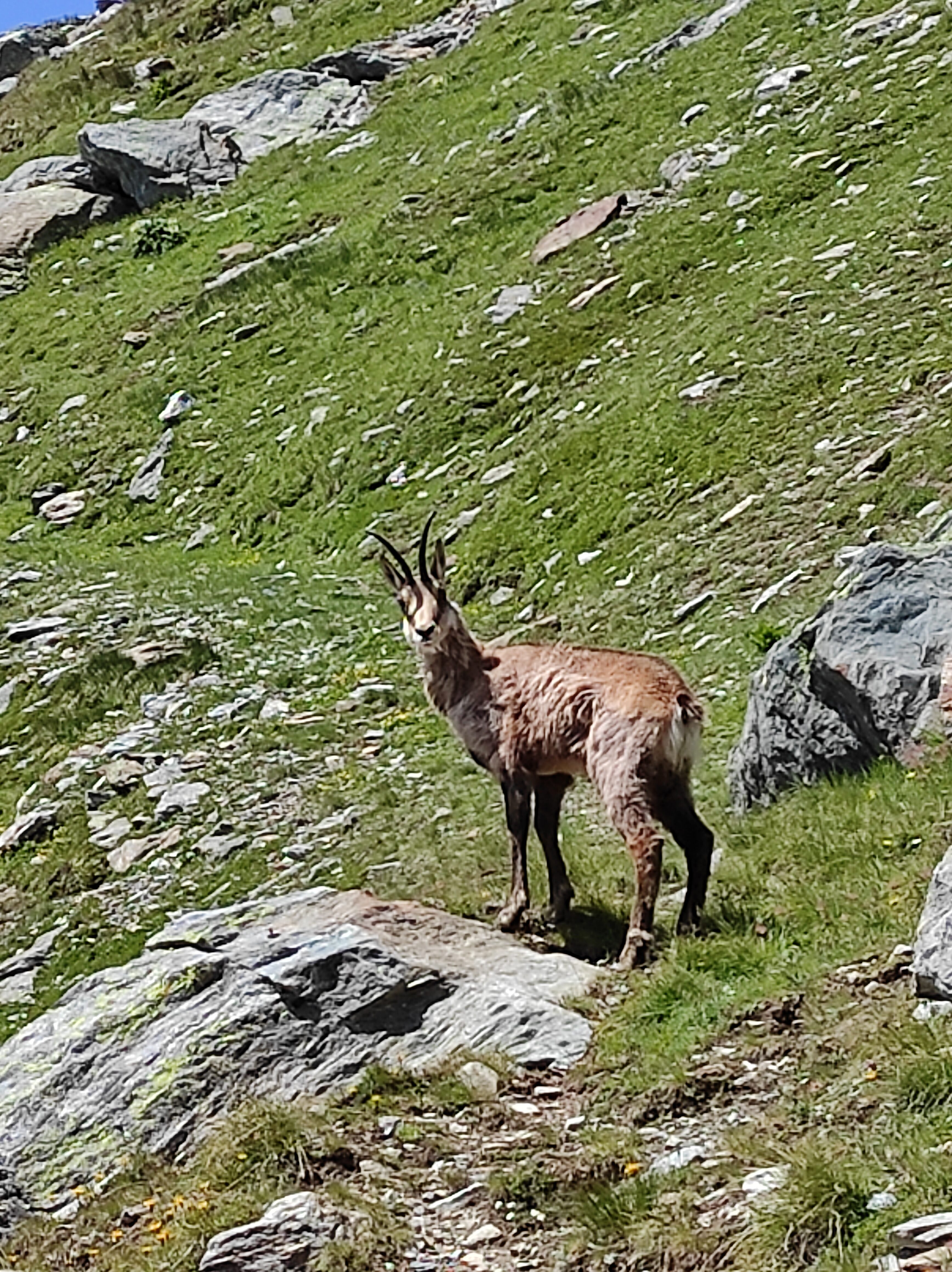 Percorso la lunga poderale ...... sempre bello il lago Layet...... prima di raggiungere il colle visto un branco di stambecchi ..... a/r