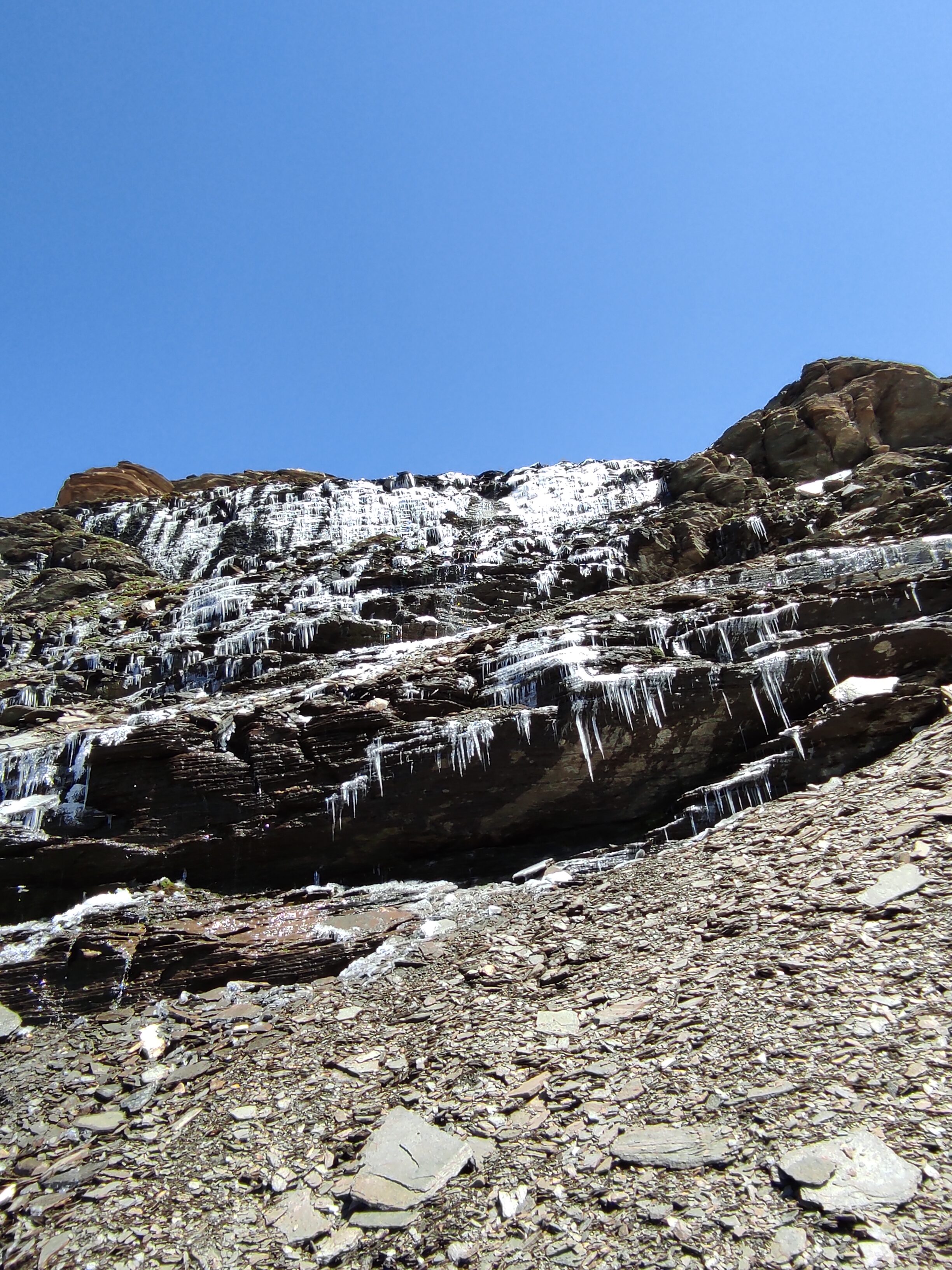 Bella gita ......breve tratto con ghiaccio prima di affrontare le corde fisse ...... Molte persone sul percorso......